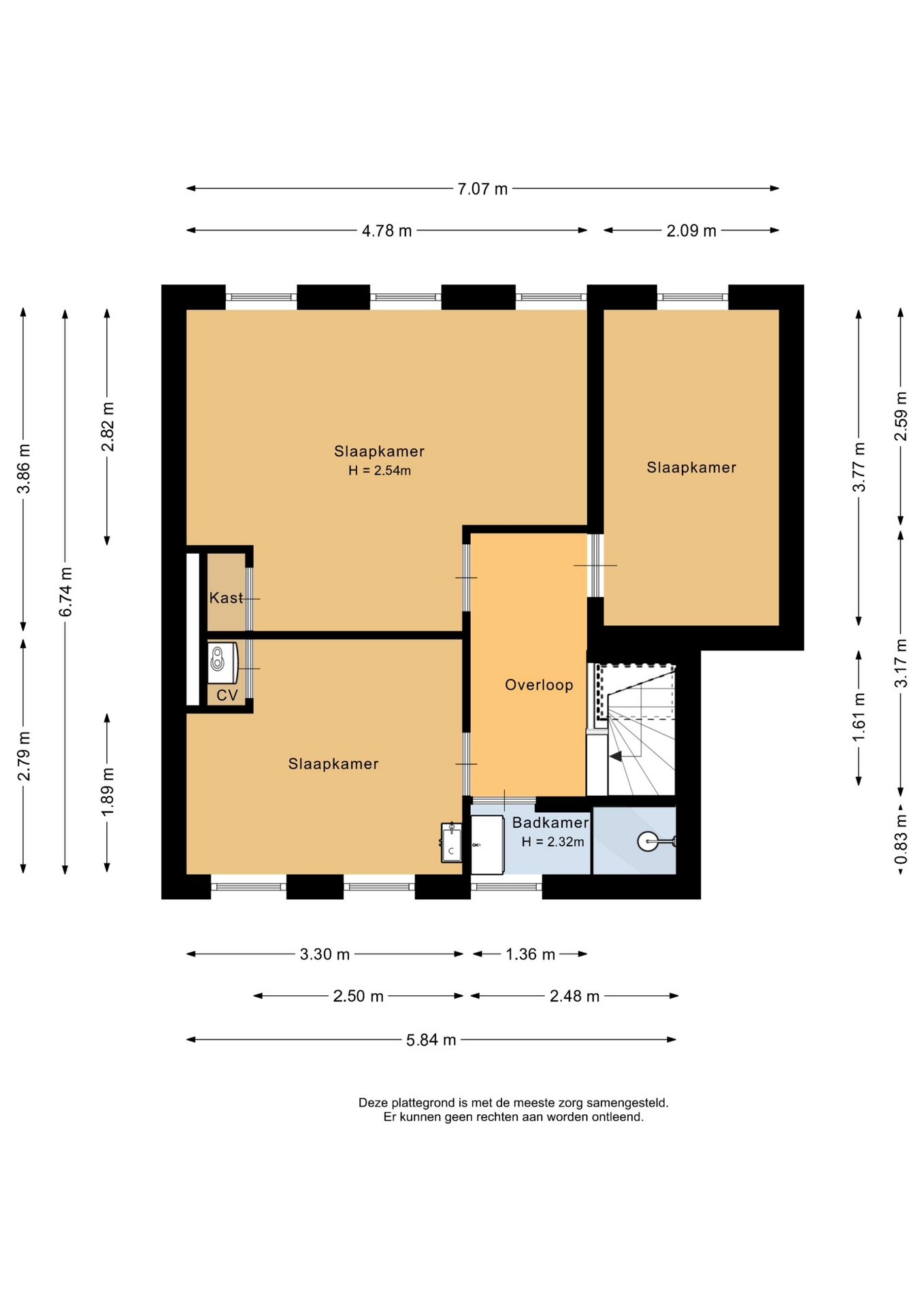 “Deze informatie is door ons met de nodige zorgvuldigheid samengesteld. Onzerzijds wordt echter geen enkele aansprakelijkheid aanvaard voor enige onvolledigheid, onjuistheid of anderszins, dan wel de gevolgen daarvan. Alle opgegeven maten en oppervlakten zijn indicatief.”