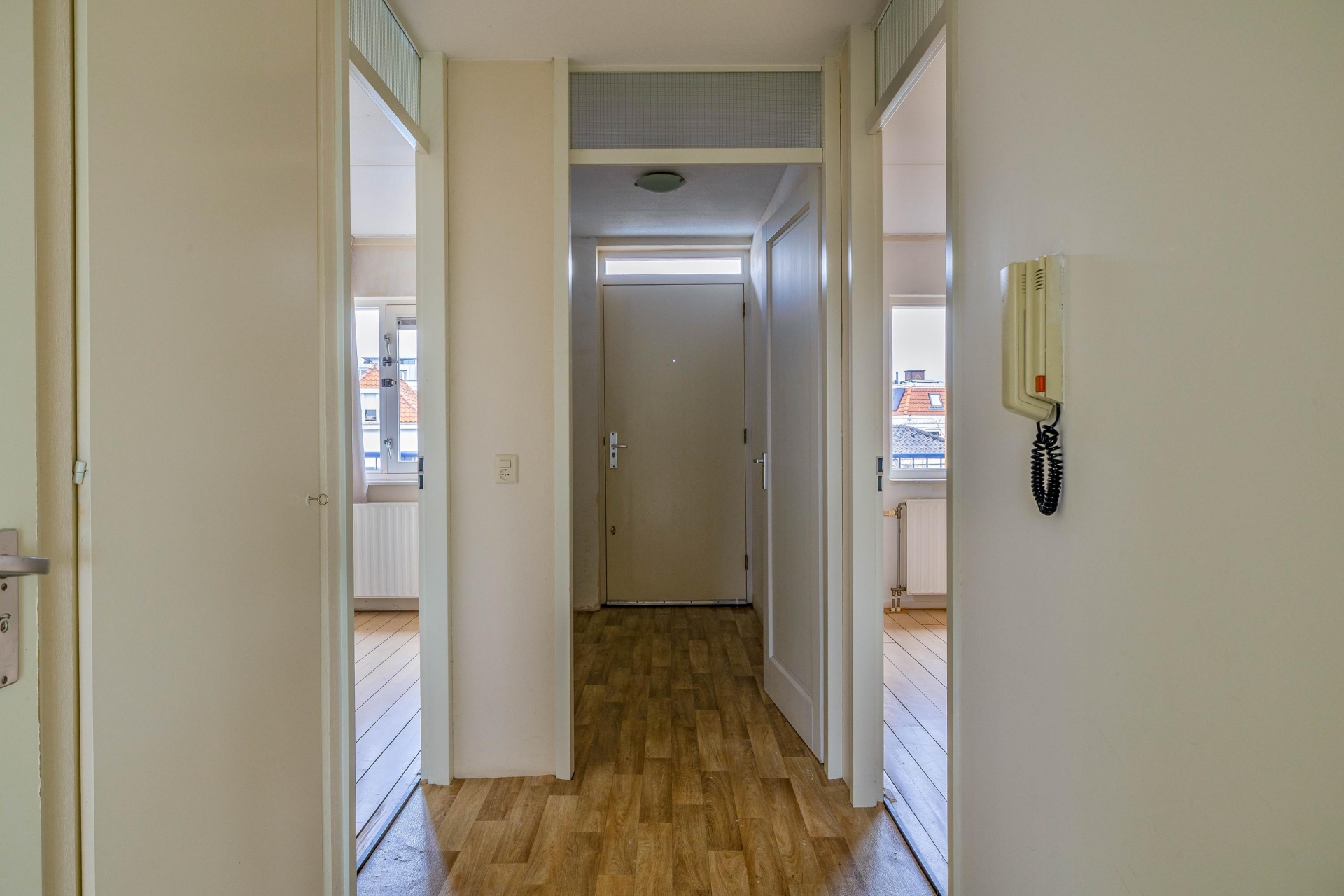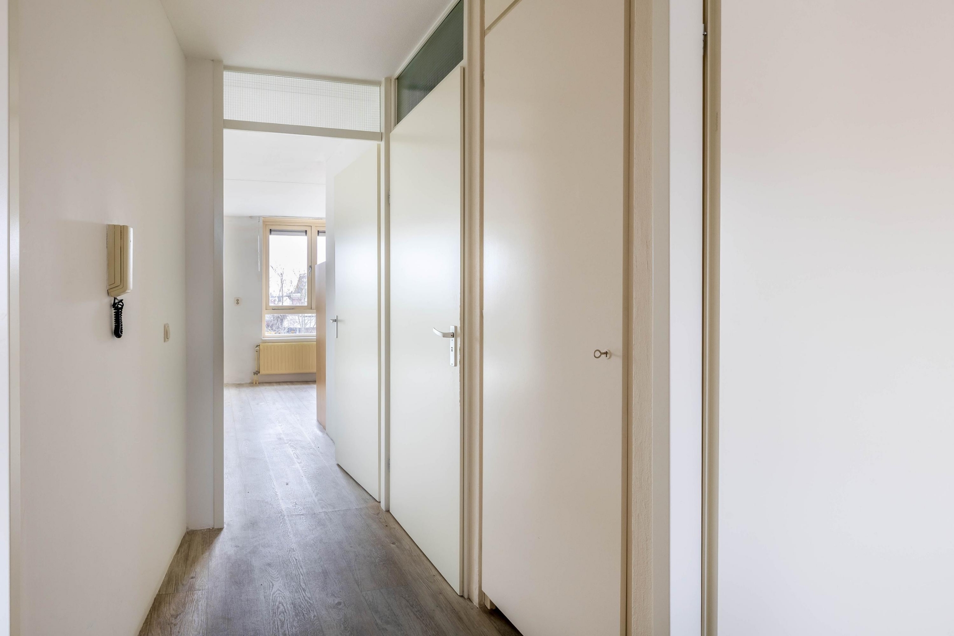 Via de afgesloten centrale hal bereik je de derde verdieping per trap of lift. Achter je eigen voordeur kom je binnen in een lichte hal die toegang biedt tot alle vertrekken. De royale woonkamer met open keuken voorzien van apparatuur vormt het hart van de woning. Vanuit hier stap je zo in de zonnige loggia. Ramen open en je kunt beschut genieten van de zon en de rust midden in de stad.