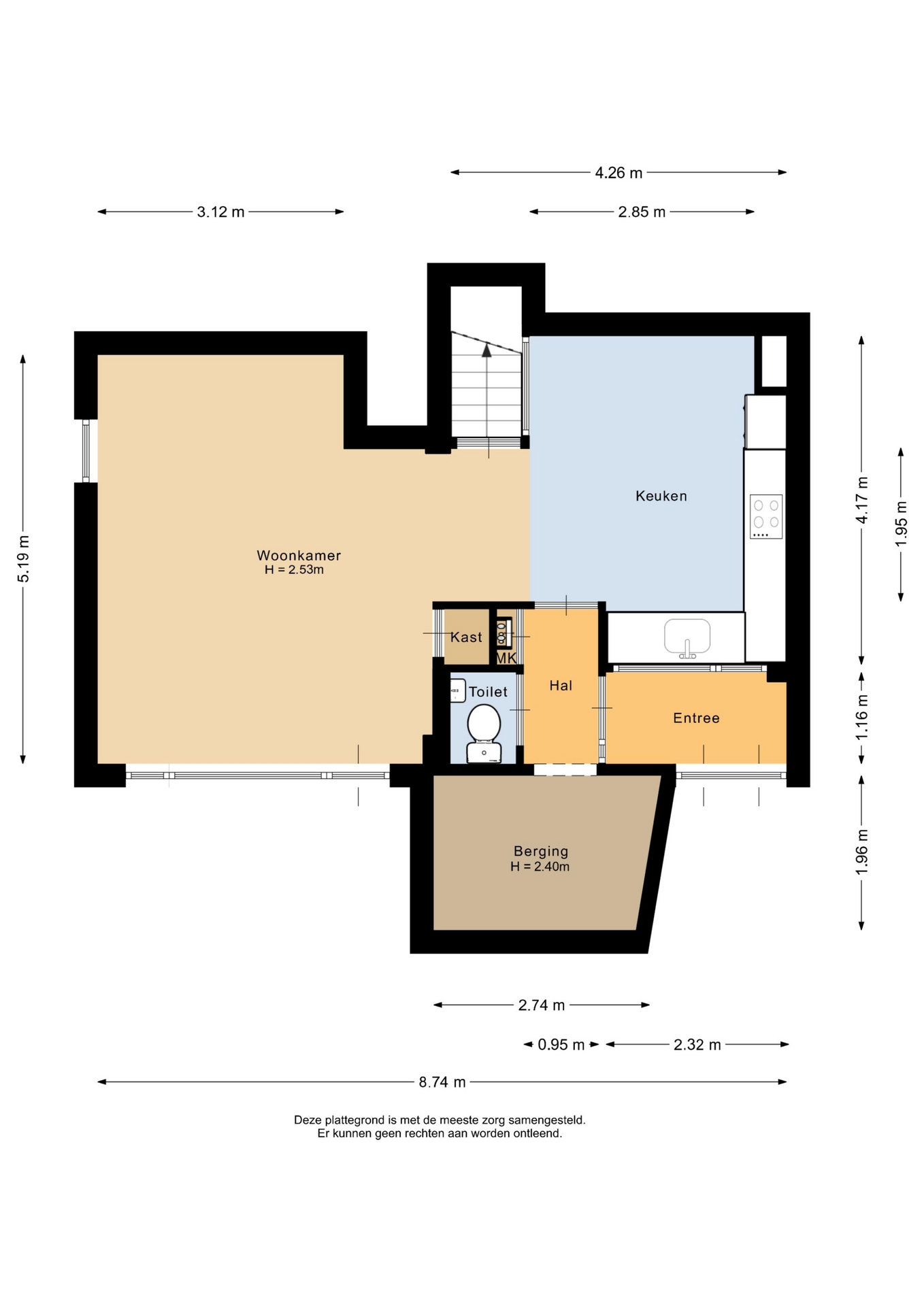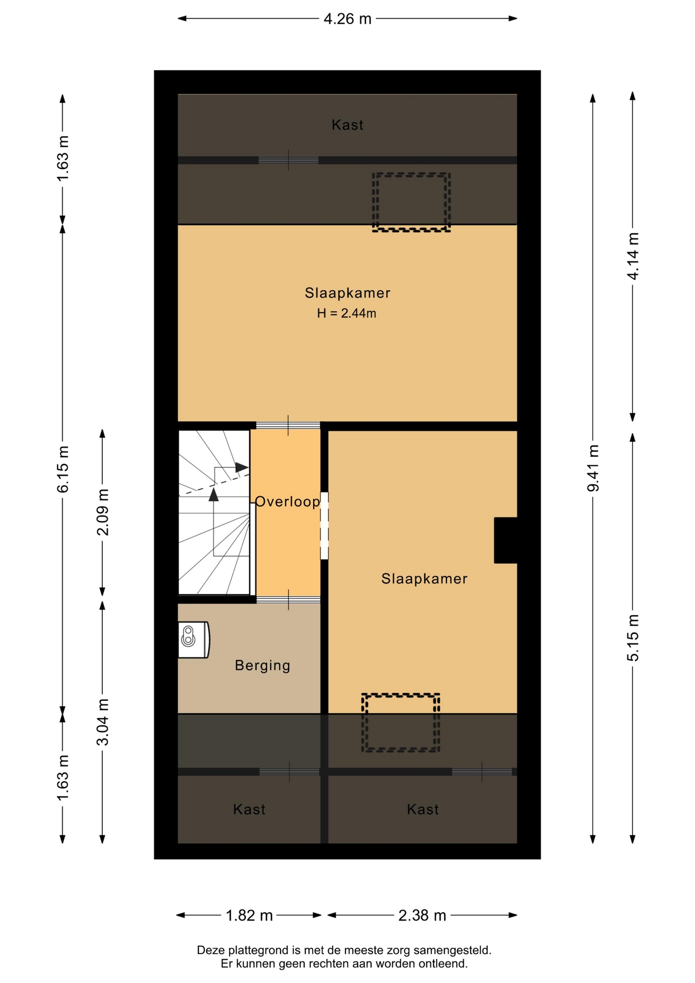 “Deze informatie is door ons met de nodige zorgvuldigheid samengesteld. Onzerzijds wordt echter geen enkele aansprakelijkheid aanvaard voor enige onvolledigheid, onjuistheid of anderszins, dan wel de gevolgen daarvan. Alle opgegeven maten en oppervlakten zijn indicatief.”