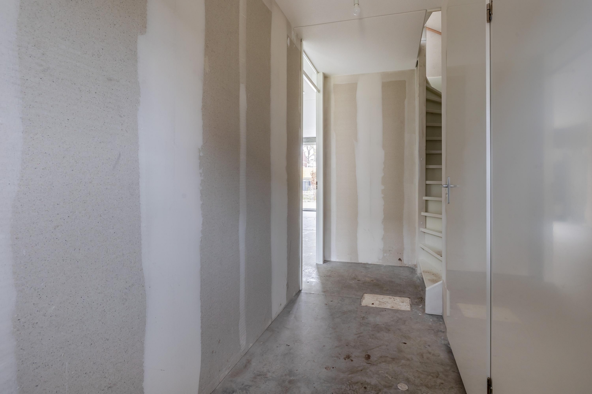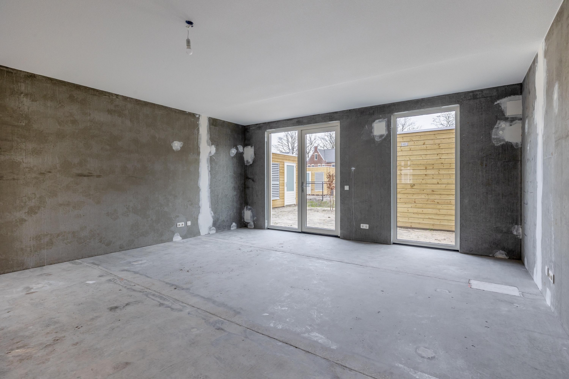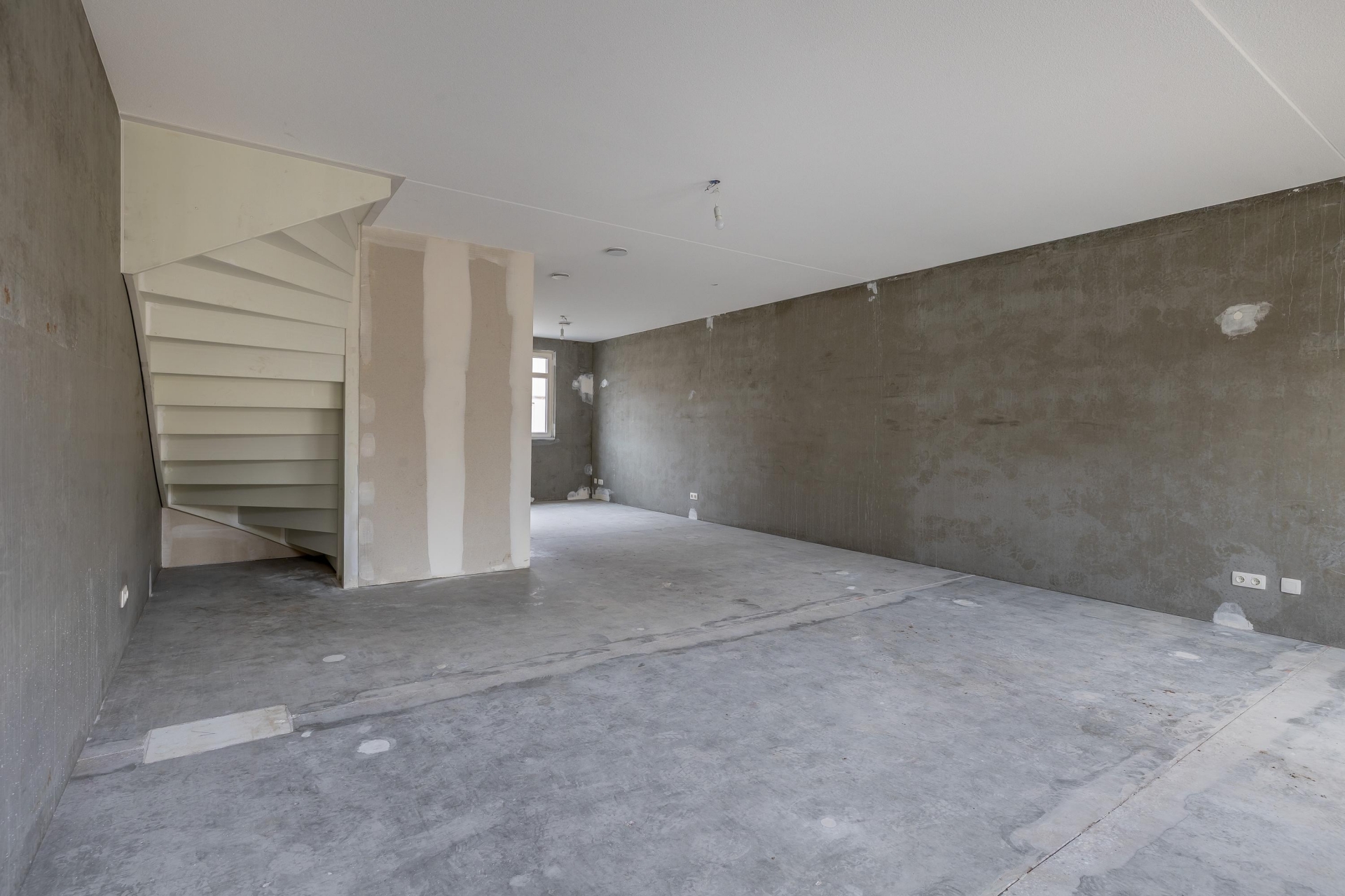 Bij binnenkomst valt direct de diepte van het huis op. De woonkamer is royaal opgezet en dankzij de grote raampartijen aan de achterzijde komt er veel natuurlijk licht naar binnen. De openslaande deuren verbinden binnen moeiteloos met de tuin. Omdat de woning casco wordt opgeleverd, heb je alle vrijheid om de indeling en afwerking volledig naar jouw wensen te realiseren. Denk aan een luxe leefkeuken, een kookeiland of juist een speelse indeling met verschillende zithoeken – hier kan het allemaal.