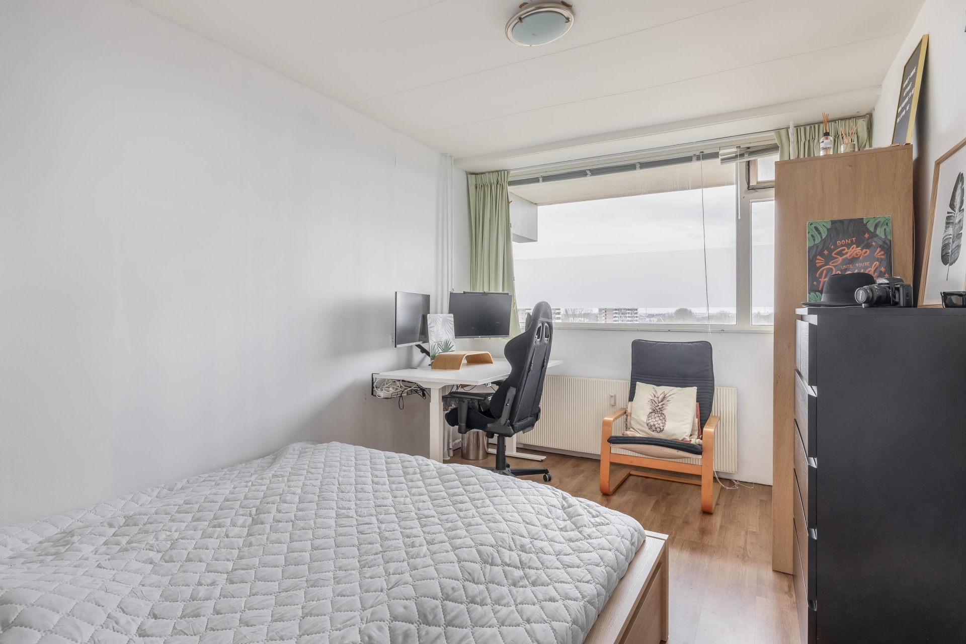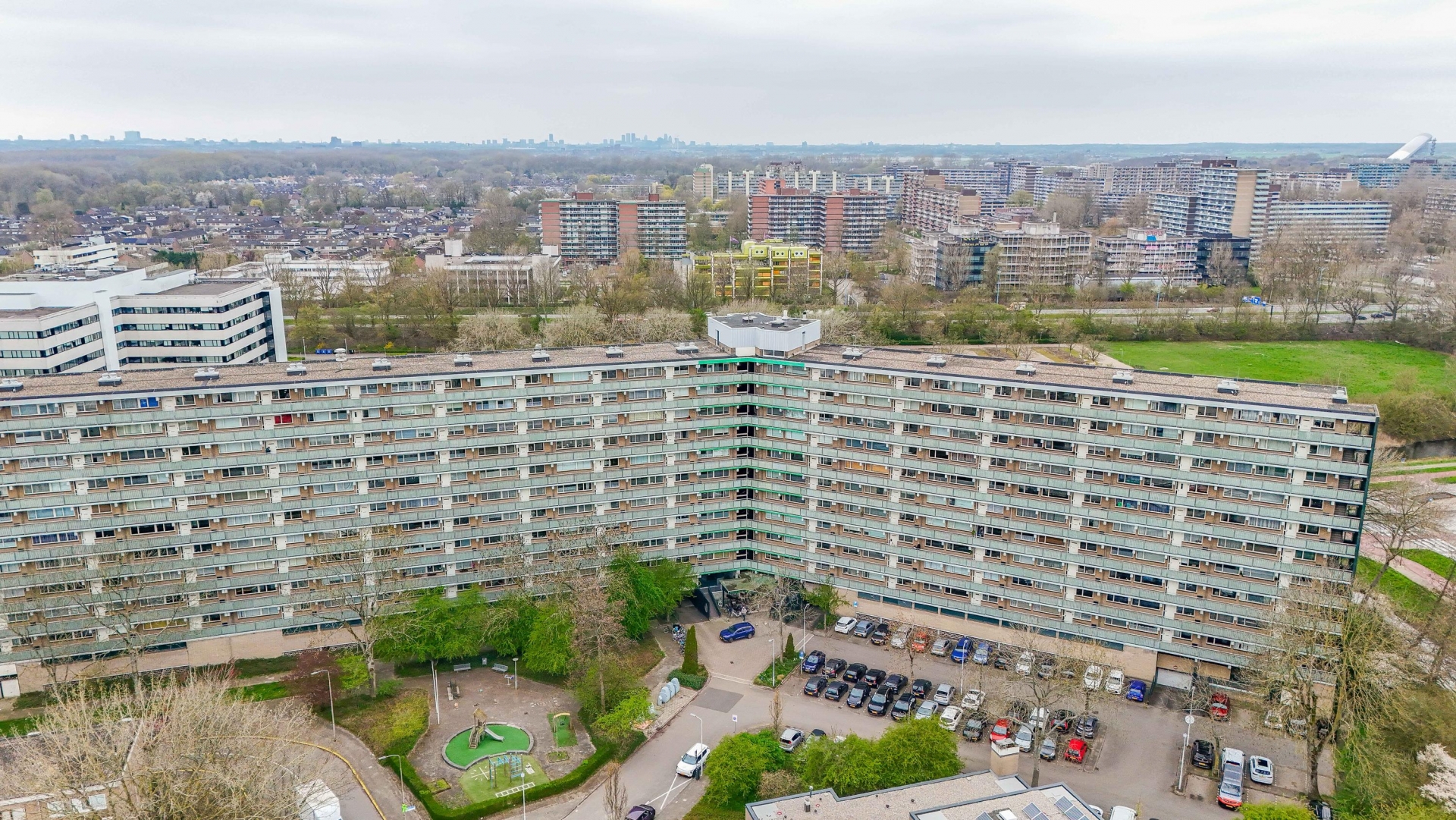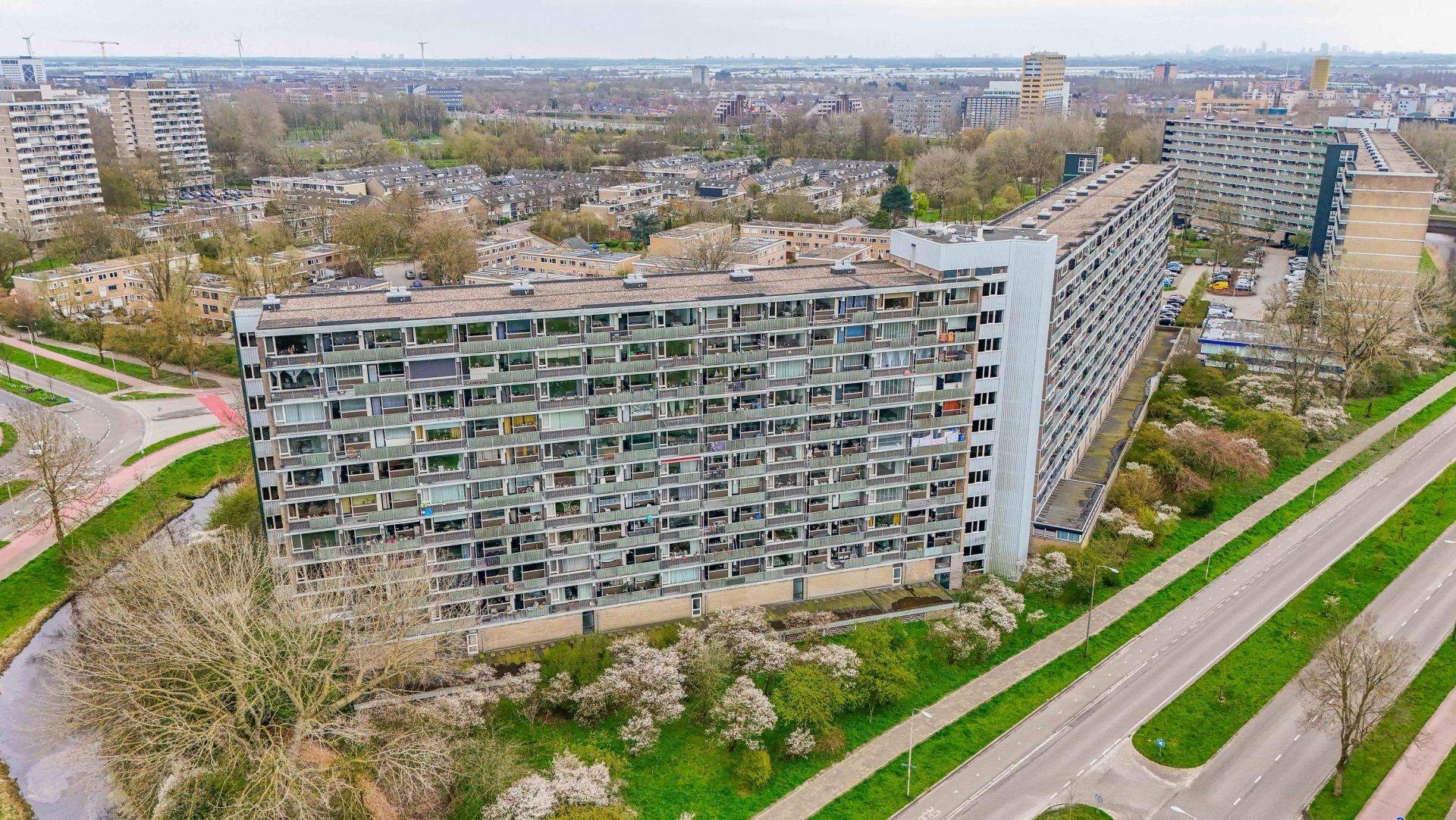 Op de negende verdieping van dit appartementencomplex vind je dit verrassend ruime 5-kamerappartement van maar liefst 108 m². Een huis dat zich onderscheidt door zijn royale indeling, vier volwaardige slaapkamers en het vrije uitzicht over de omgeving. Hier woon je comfortabel, met alle voorzieningen binnen handbereik én met het gemak van een eigen parkeerplaats in de ondergelegen garage, plus een afgesloten fietsstalling voor de bewoners.