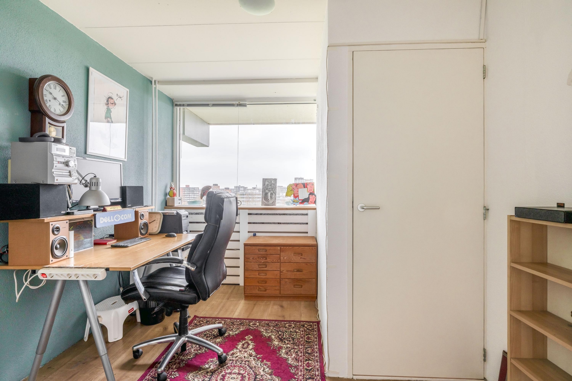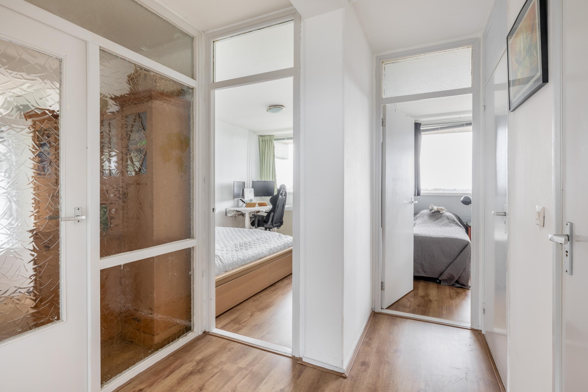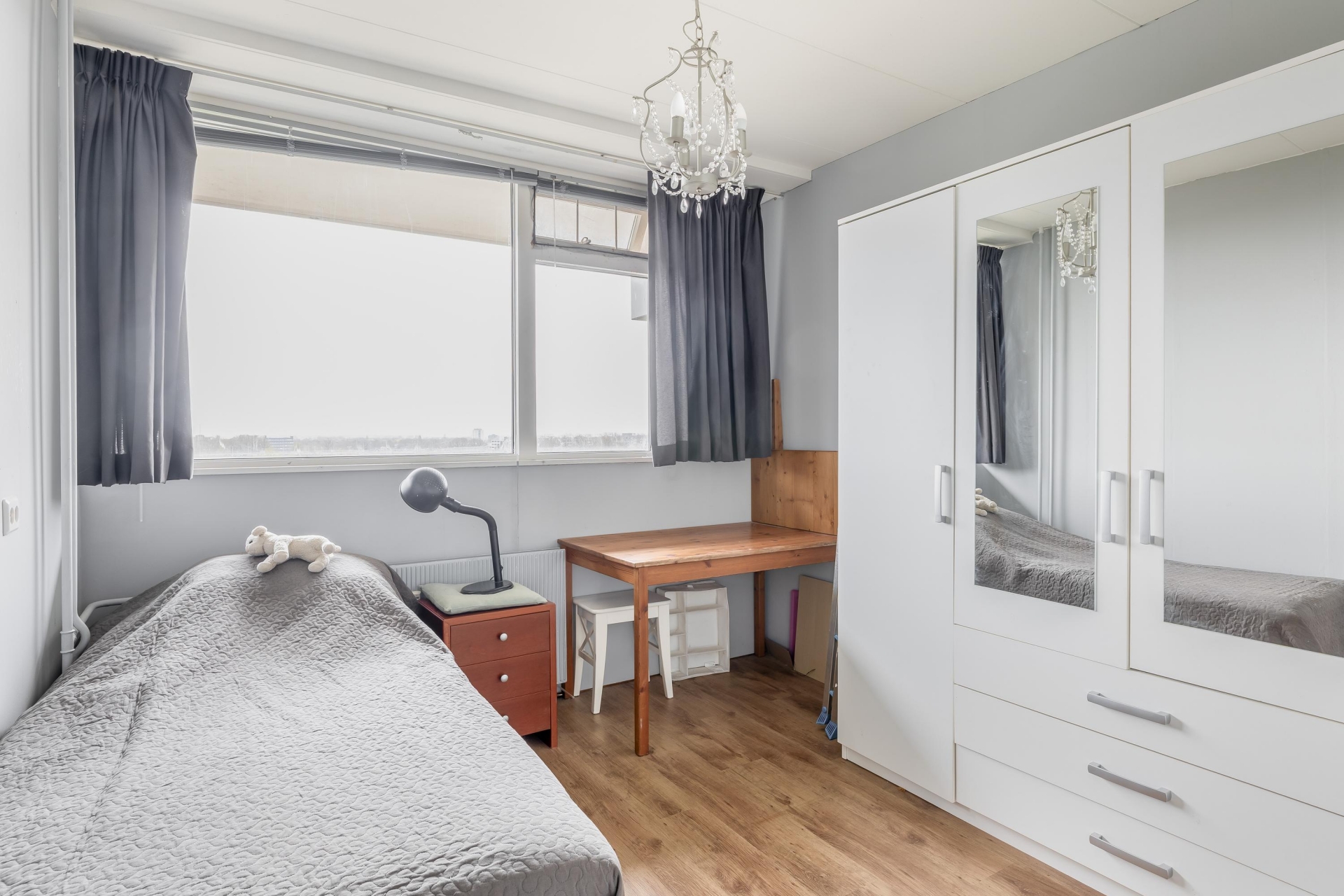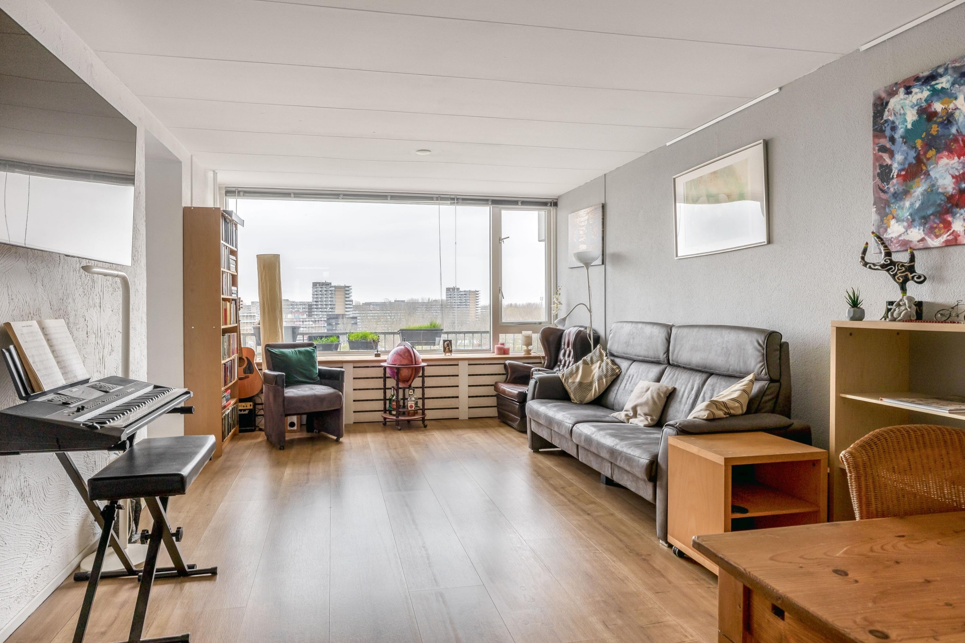 Op de negende verdieping van dit appartementencomplex vind je dit verrassend ruime 5-kamerappartement van maar liefst 108 m². Een huis dat zich onderscheidt door zijn royale indeling, vier volwaardige slaapkamers en het vrije uitzicht over de omgeving. Hier woon je comfortabel, met alle voorzieningen binnen handbereik én met het gemak van een eigen parkeerplaats in de ondergelegen garage, plus een afgesloten fietsstalling voor de bewoners.