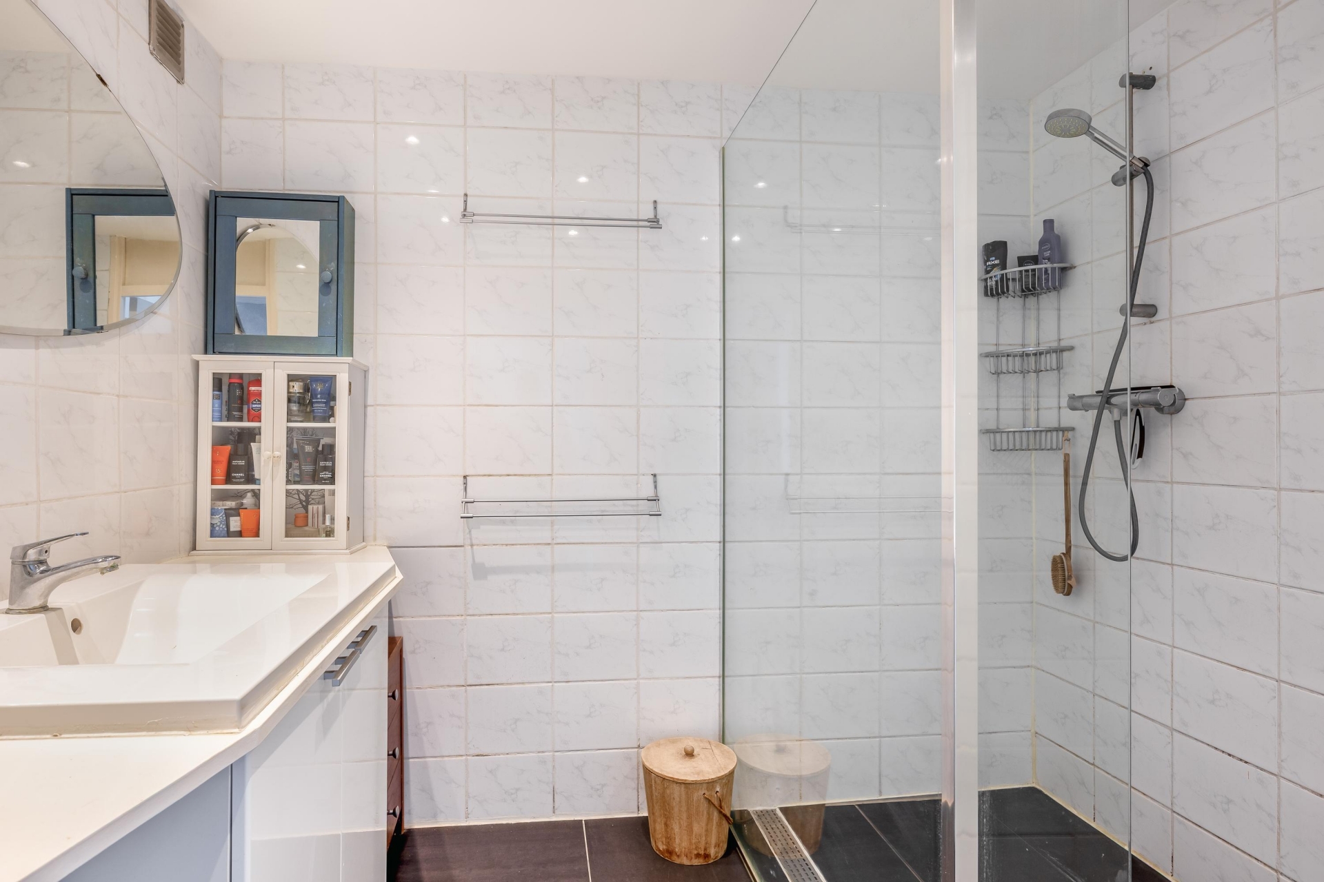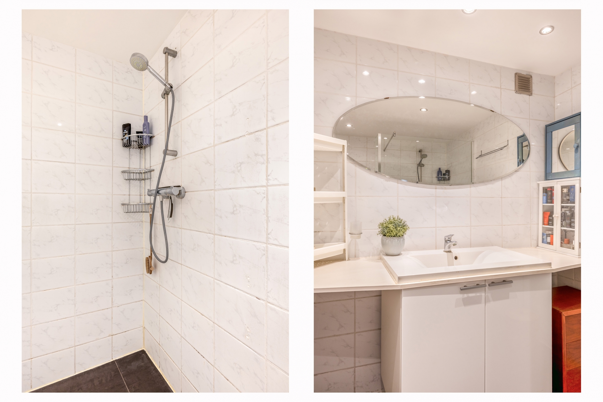 De badkamer is netjes afgewerkt en voorzien van een ruime inloopdouche en een wastafelmeubel. De lichte kleurstelling zorgt voor een frisse uitstraling en maakt het geheel tijdloos. Het sanitair is functioneel en biedt alles wat je nodig hebt voor dagelijks comfort.
