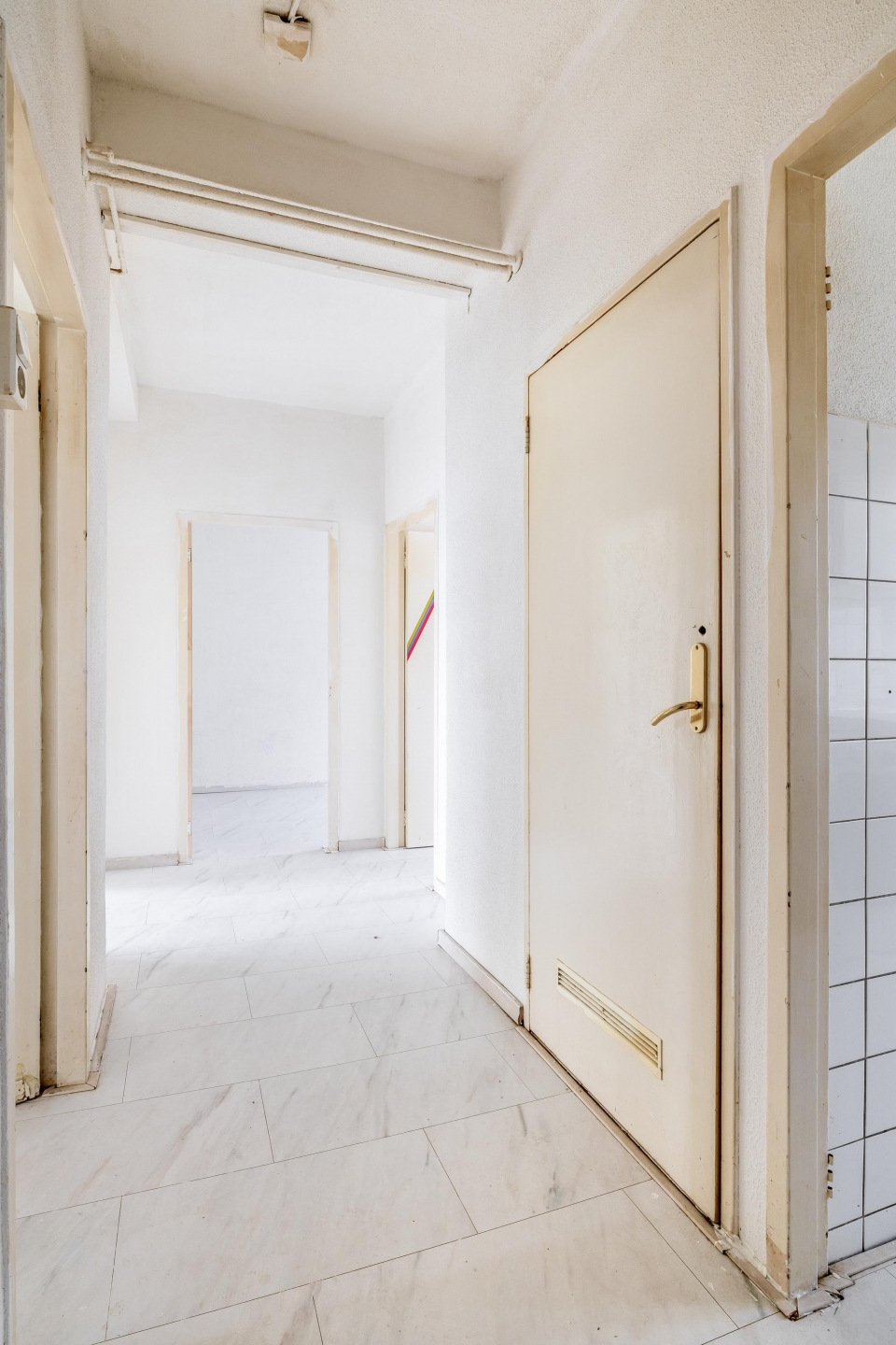 De indeling is praktisch: een centrale hal met toegang tot alle vertrekken, een separaat toilet en vaste kastruimte. Met de juiste aanpak maak je hier een comfortabel en eigentijds startersappartement van.