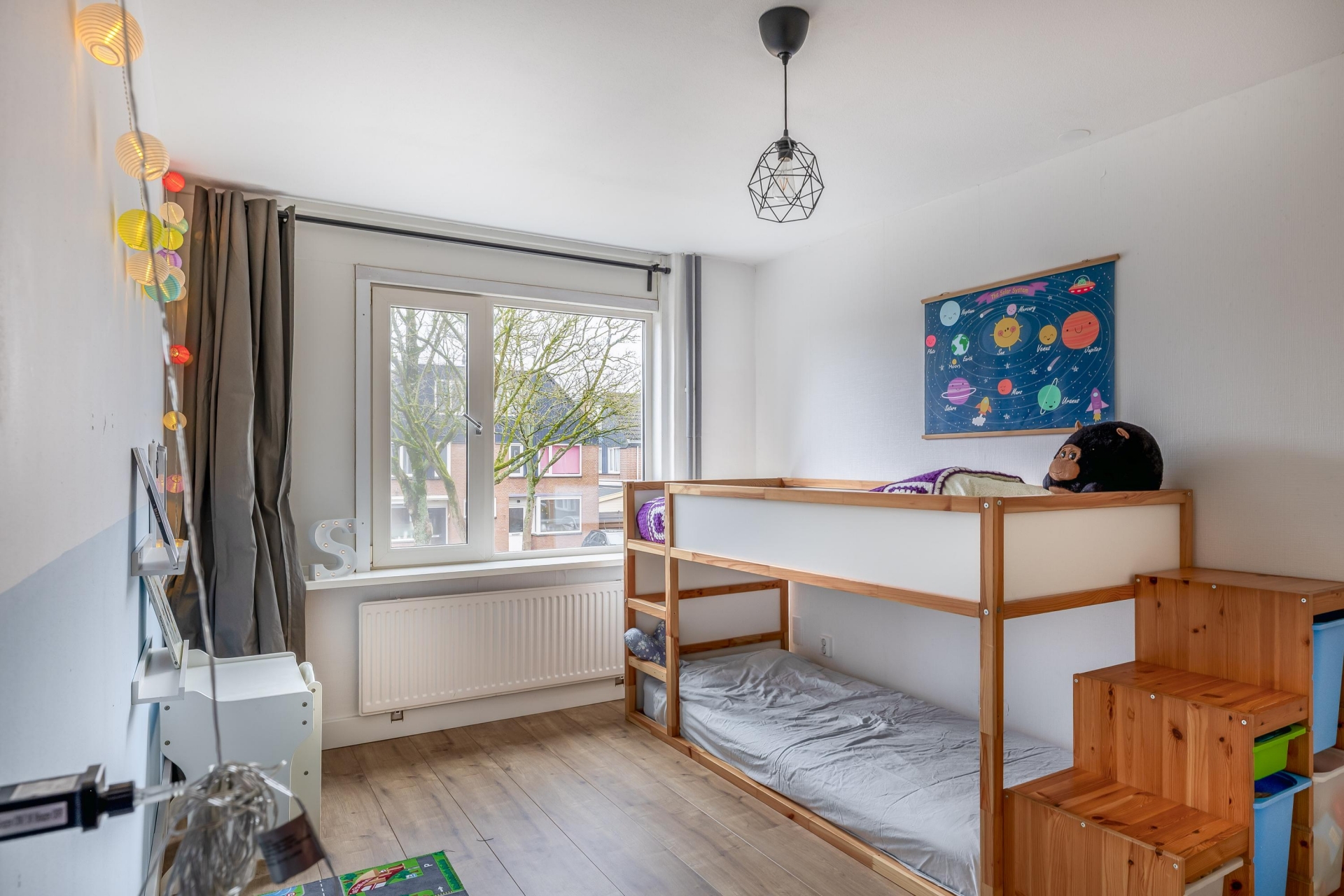 De tweede verdieping biedt nog twee slaapkamers. Dankzij de rechte gevels zijn deze ruimtes goed in te delen. Met vijf slaapkamers is dit huis uitermate geschikt voor grotere gezinnen of voor wie thuiswerkt.