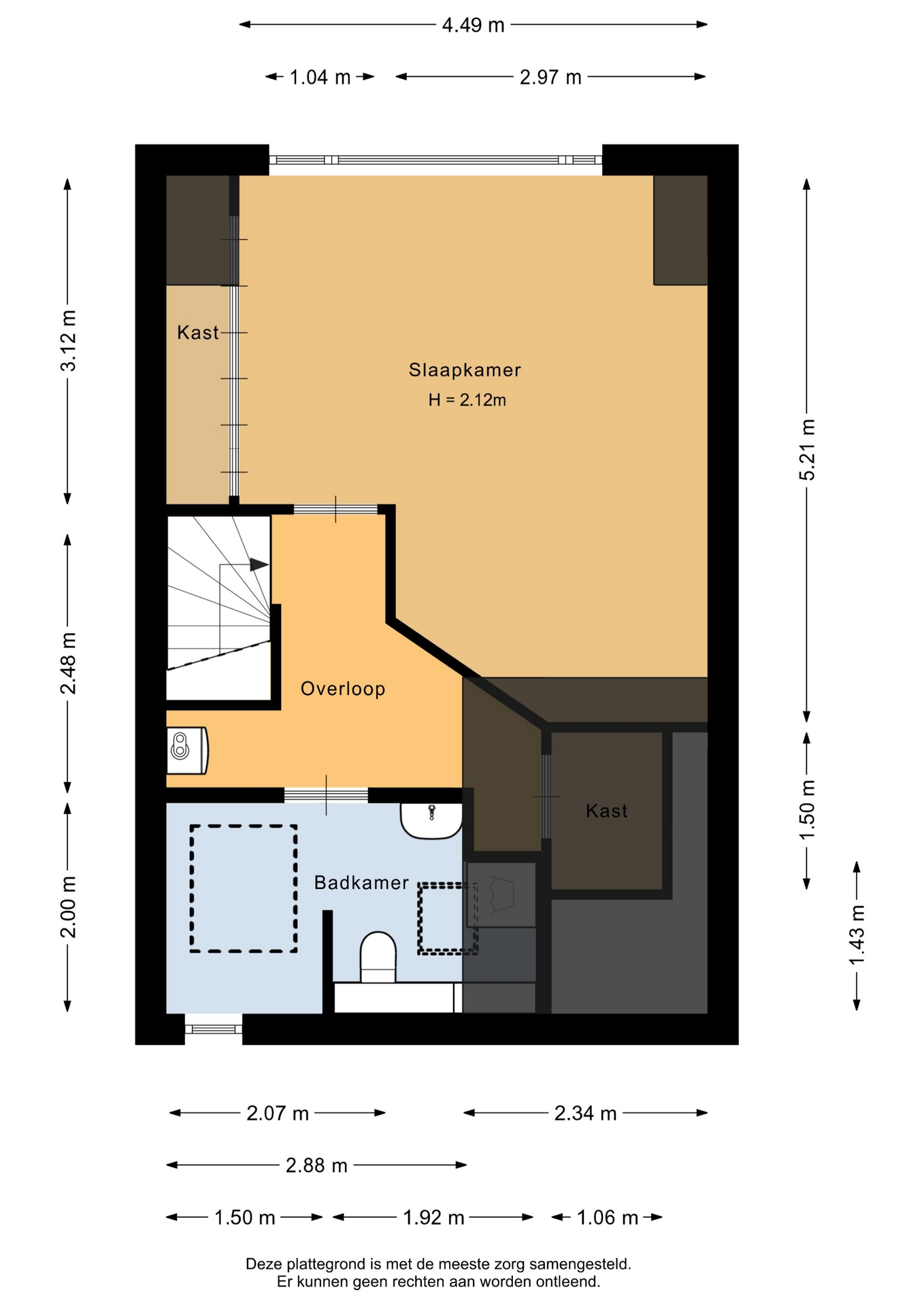 “Deze informatie is door ons met de nodige zorgvuldigheid samengesteld. Onzerzijds wordt echter geen enkele aansprakelijkheid aanvaard voor enige onvolledigheid, onjuistheid of anderszins, dan wel de gevolgen daarvan. Alle opgegeven maten en oppervlakten zijn indicatief.”