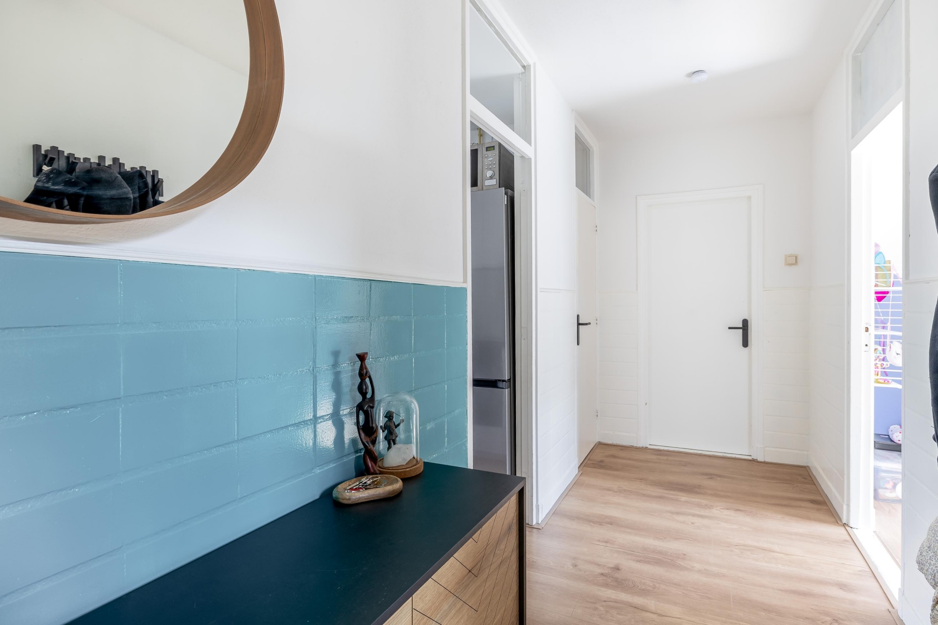 Vanuit de keuken loop je zo de ruime tuin (34m²) in, die is gelegen op het noordwesten. Een fijne plek om te ontspannen en te genieten van de middag- en avondzon. Extra leuk: direct achter de tuin is een speeltuin, ideaal voor (klein)kinderen! Wil je in de ochtend al genieten van de zon met een kop koffie? Aan de voorzijde is een zonnig balkon.