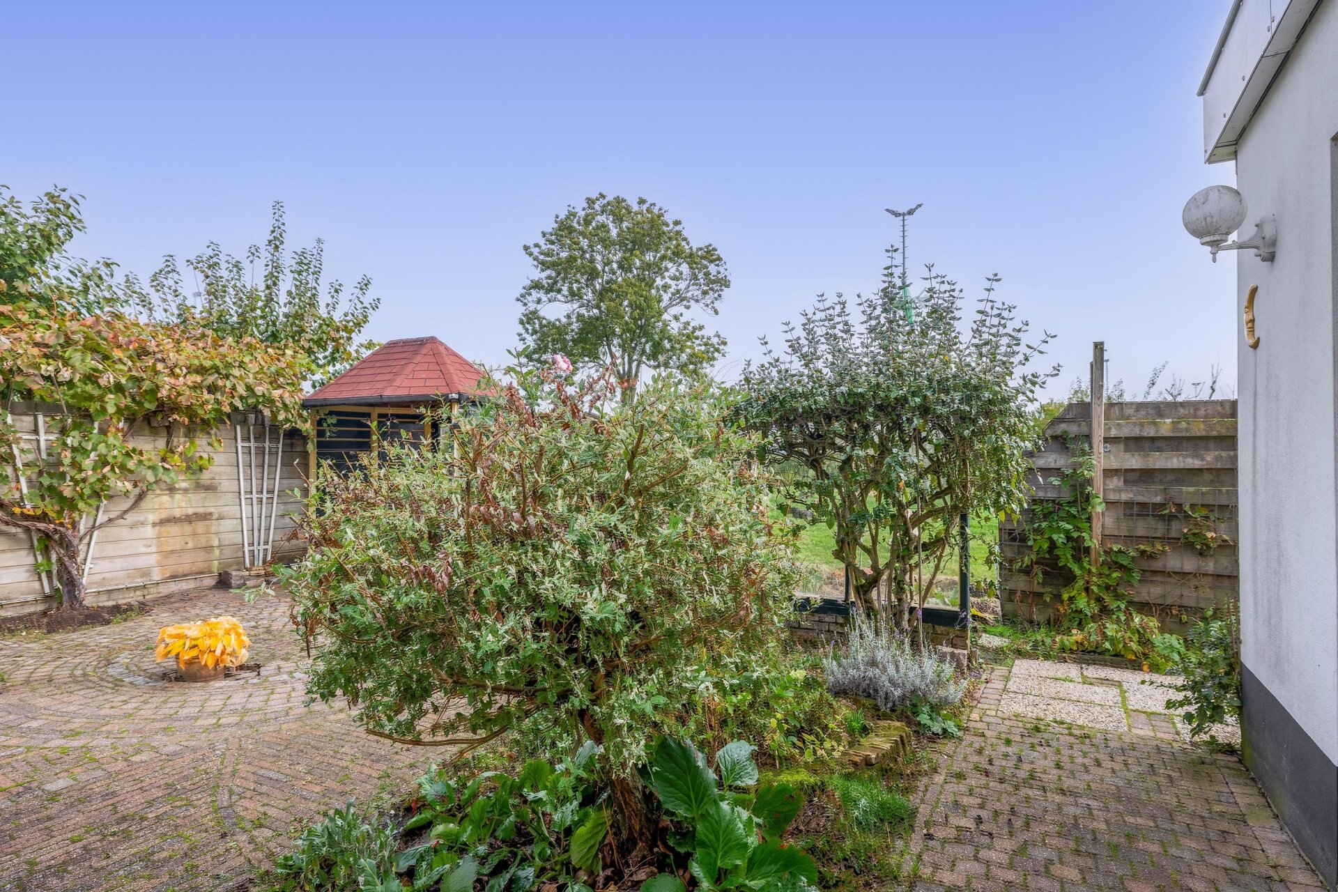 Zowel voor- als achtertuin hebben mogelijkheden. De voortuin ligt op het westen – hier geniet je in de namiddag nog van de zon. De achtertuin ligt op het oosten en kijkt uit over een stukje grasweide. Hier begint de dag met zonlicht en eindigt hij met rust: ideaal voor een ontbijt buiten of een kop koffie met uitzicht over het groen.