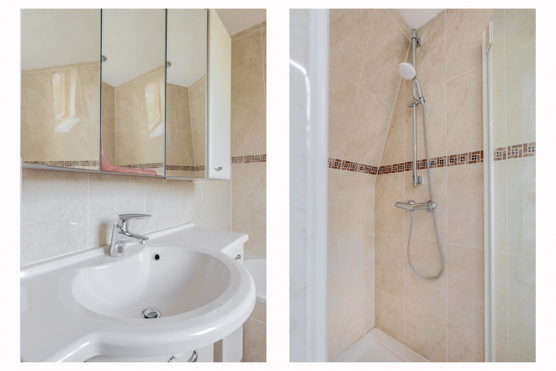 De keuken grenst direct aan de woonkamer en kijkt uit over de achtertuin. Hier heb je alle mogelijkheden om de ruimte in te richten zoals jij wilt – ideaal voor wie graag kookt of droomt van een landelijke woonkeuken. Via de hal kom je bij het toilet en de trap naar boven, waar drie goed bemeten slaapkamers te vinden zijn. Dankzij de dakkapel en de rechte wanden is er veel licht en bruikbare ruimte. De betegelde badkamer is praktisch ingedeeld en voorzien een toilet, bad, douche en wastafel en is voorzien van elektrische verwarming, wat vooral in de winter prettig is.