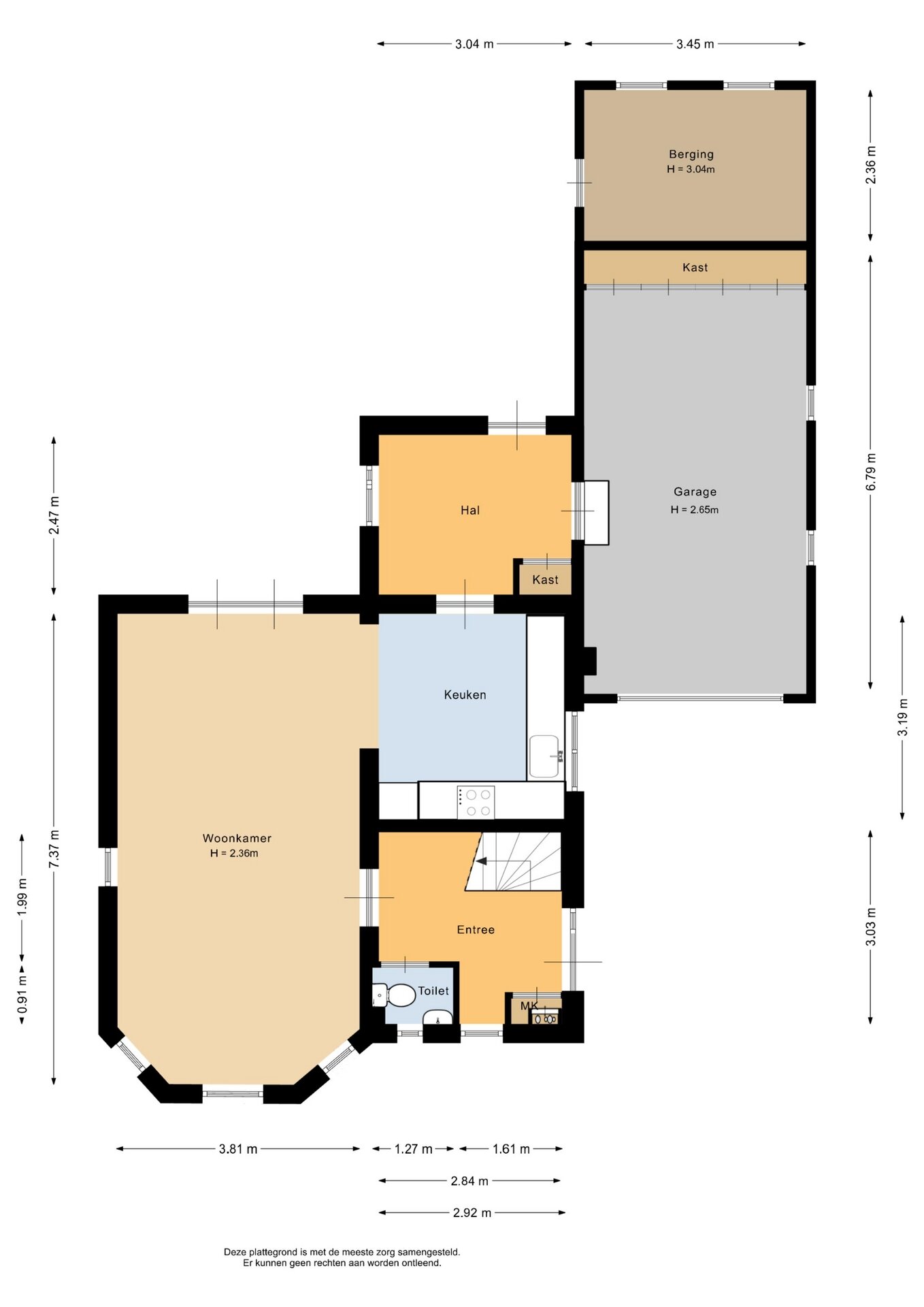 “Deze informatie is door ons met de nodige zorgvuldigheid samengesteld. Onzerzijds wordt echter geen enkele aansprakelijkheid aanvaard voor enige onvolledigheid, onjuistheid of anderszins, dan wel de gevolgen daarvan. Alle opgegeven maten en oppervlakten zijn indicatief.”