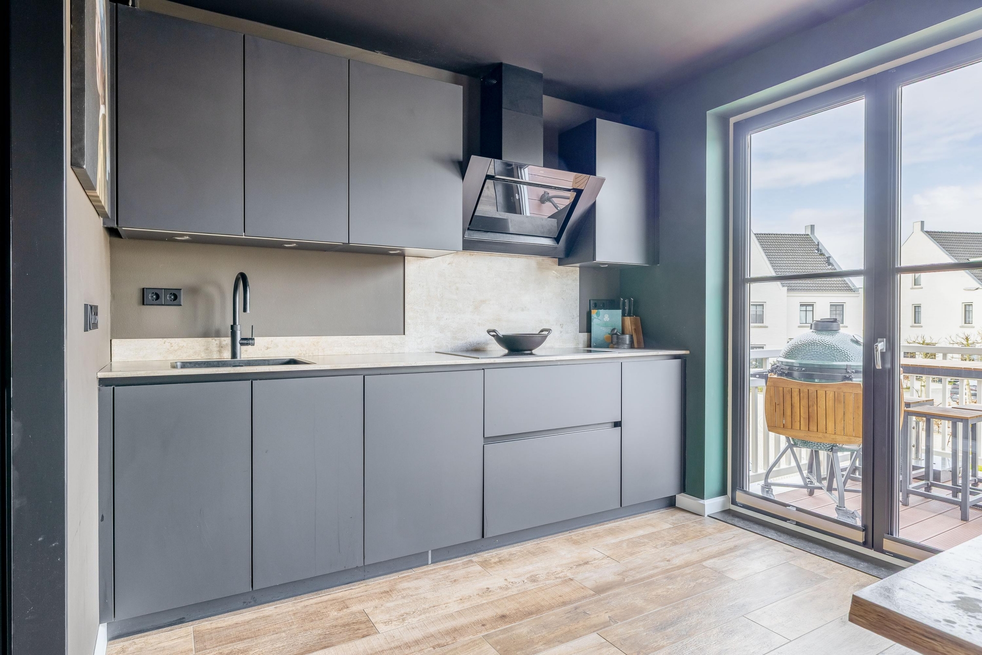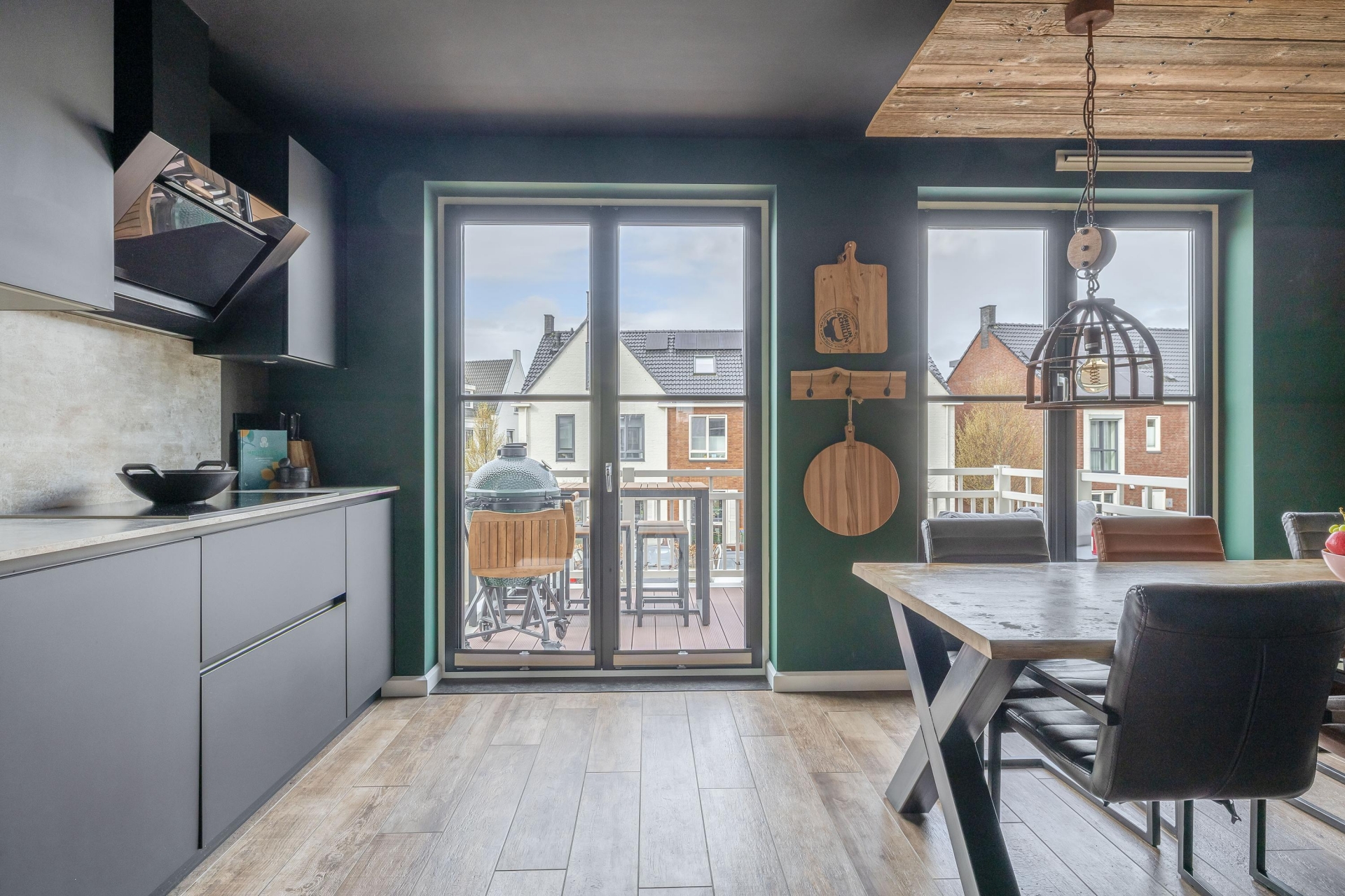 Bij binnenkomst valt direct de strakke afwerking en de fijne indeling op. De woonkamer is gelegen aan de achterzijde, met een sfeervolle erker en vrij uitzicht over het water. Dit is echt een prettige ruimte waar je gemakkelijk een royale zithoek kwijt kunt. Grote raampartijen zorgen voor veel lichtinval en een fijne verbinding met buiten. Aan de voorzijde bevindt zich de moderne halfopen keuken en toegang tot het ruime balkon. Deze is uitgevoerd in een stijlvolle kleurstelling en voorzien van diverse inbouwapparatuur. Een plek waar je met plezier kookt, maar ook waar je gezellig aan kunt schuiven met vrienden of familie.