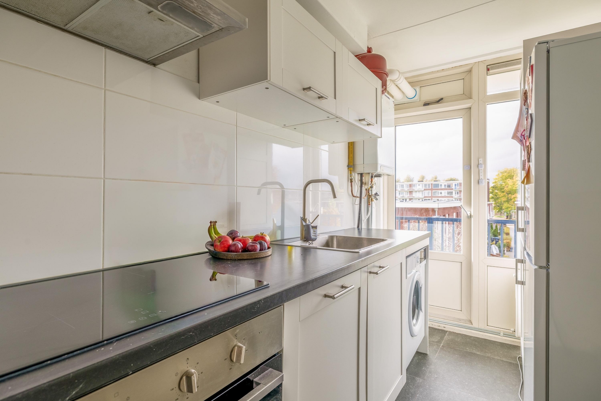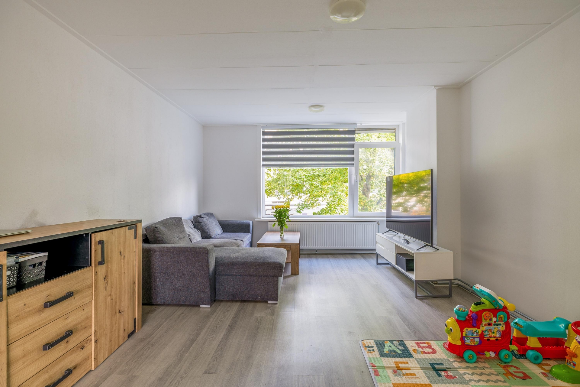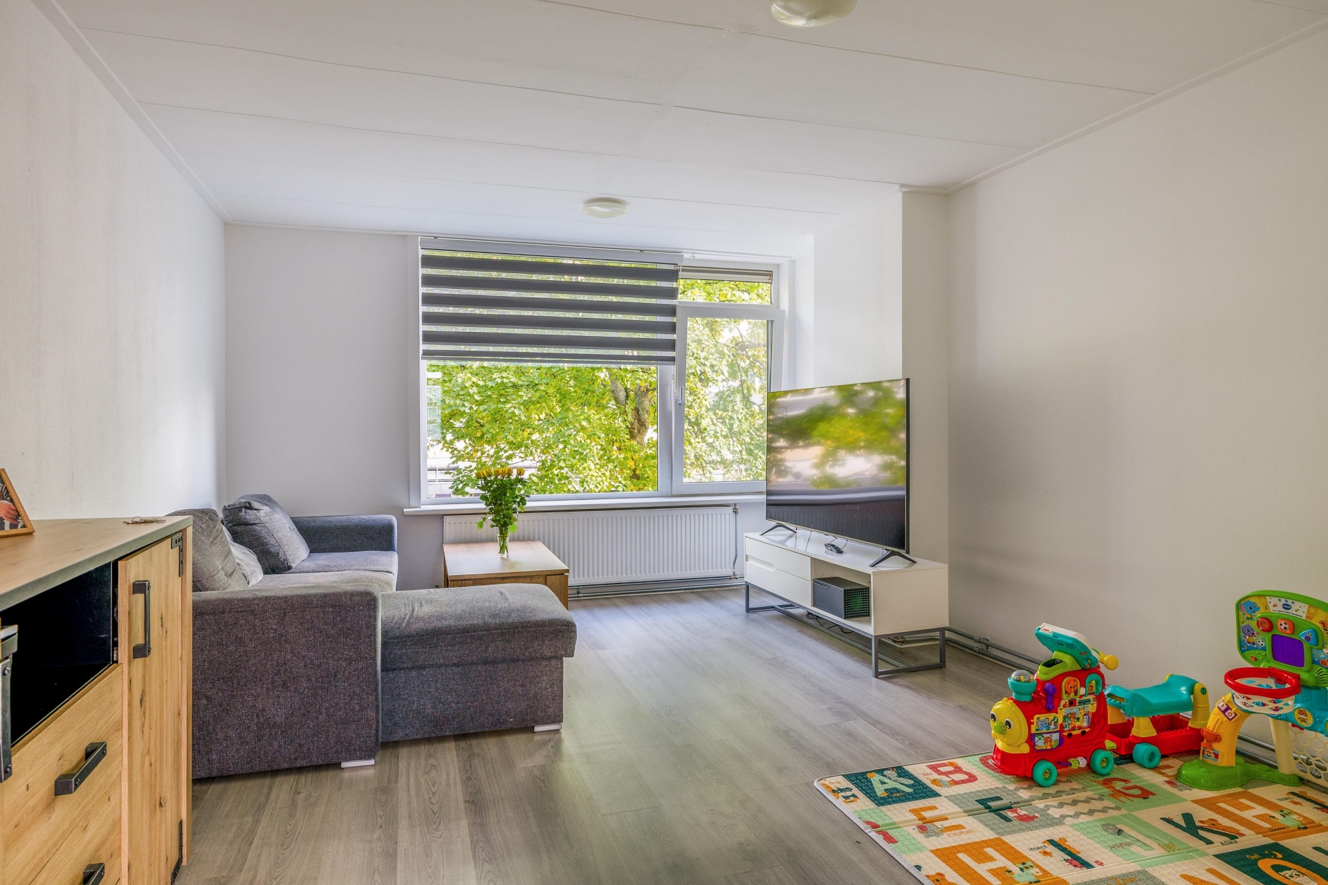 In 2022 is dit appartement van top tot teen gerenoveerd. Denk aan een vernieuwde keuken, frisse badkamer, glad gestuukte wanden en een moderne vloer die in het hele huis is doorgelegd. De indeling is praktisch en overzichtelijk: via de ruime hal kom je uit in de lichte woonkamer, waar je dankzij de grote raampartijen uitkijkt over een groene omgeving. De keuken is strak en modern uitgevoerd en biedt direct toegang tot het balkon aan de westzijde, ideaal voor een koffiemoment in de namiddagzon. Aan de andere kant van het appartement vind je nog een tweede balkon, gelegen op het oosten, waar je juist 's ochtends lekker kunt zitten.