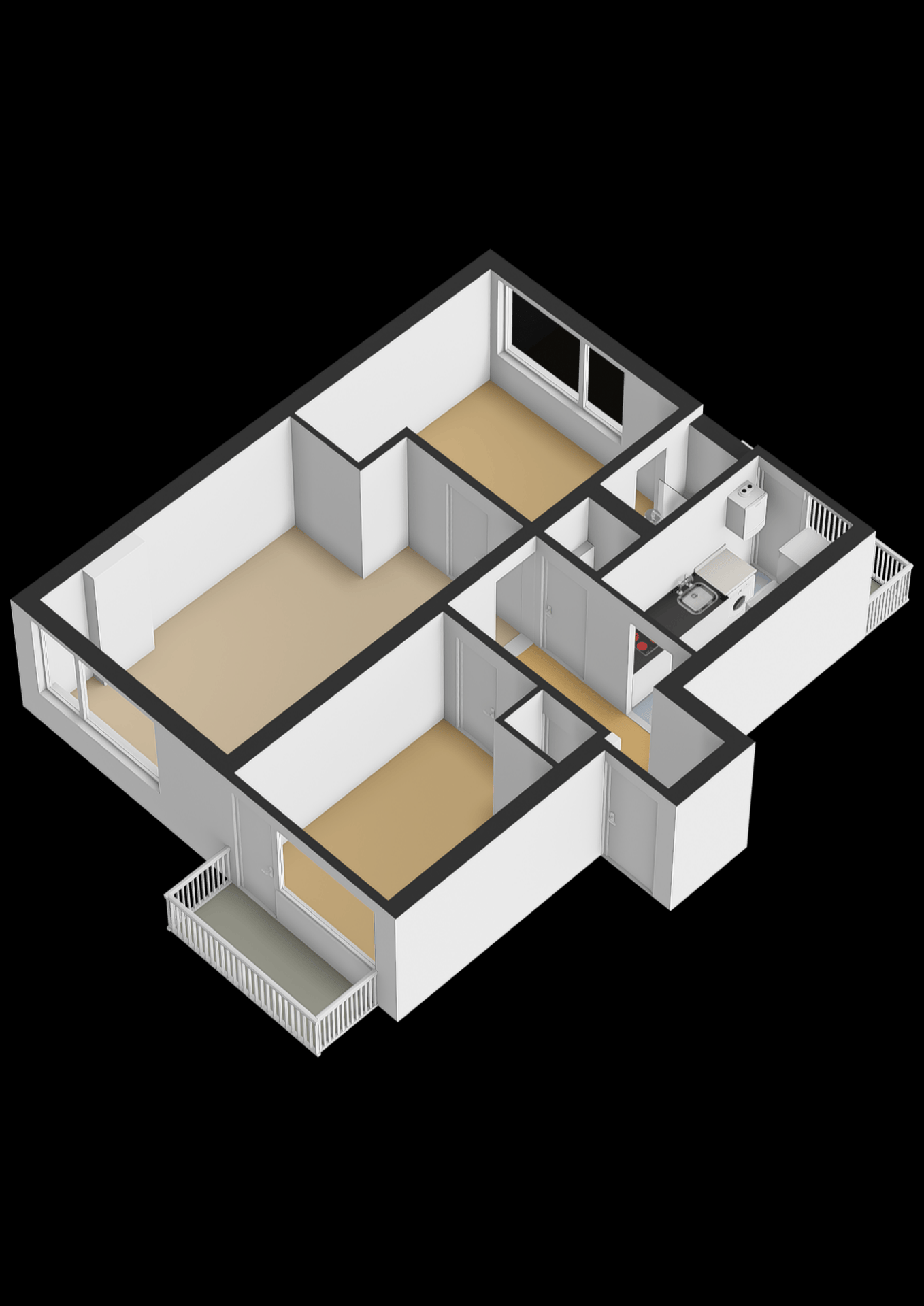 De twee slaapkamers zijn goed bemeten en functioneel in te richten. De grootste slaapkamer ligt aan de rustige achterzijde. De tweede slaapkamer ligt aan de voorzijde, grenzend aan de woonkamer en biedt direct toegang tot het balkon op het oosten. De badkamer is compact maar efficiënt ingericht met een douchecabine en wastafelmeubel. Het toilet is apart en bevindt zich in de hal.