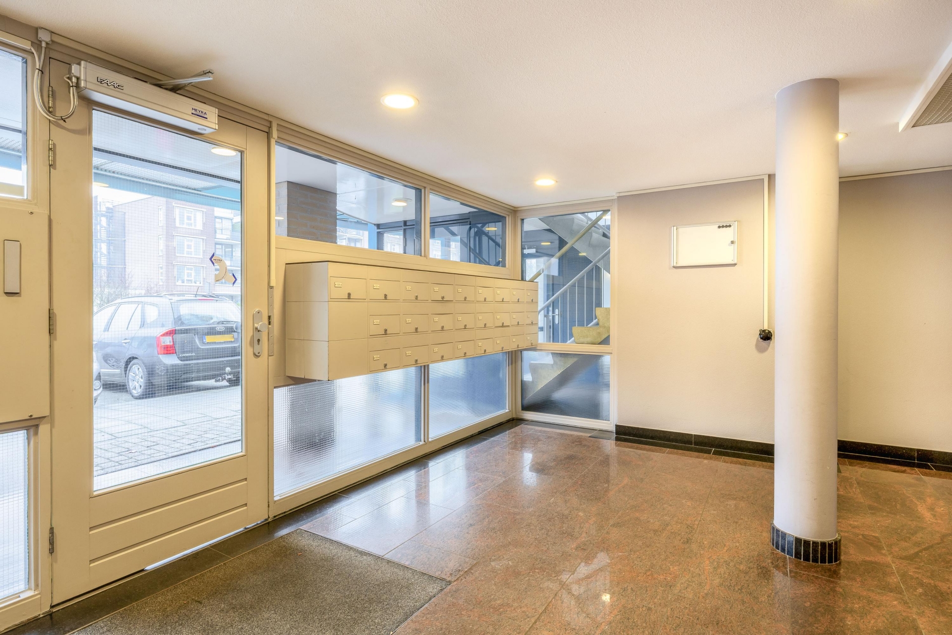 Het complex beschikt over een afgesloten entree met videofooninstallatie en brievenbussen. Via de automatische deuren is er toegang tot de ruime hal met lift, het trappenhuis en de bergingen.