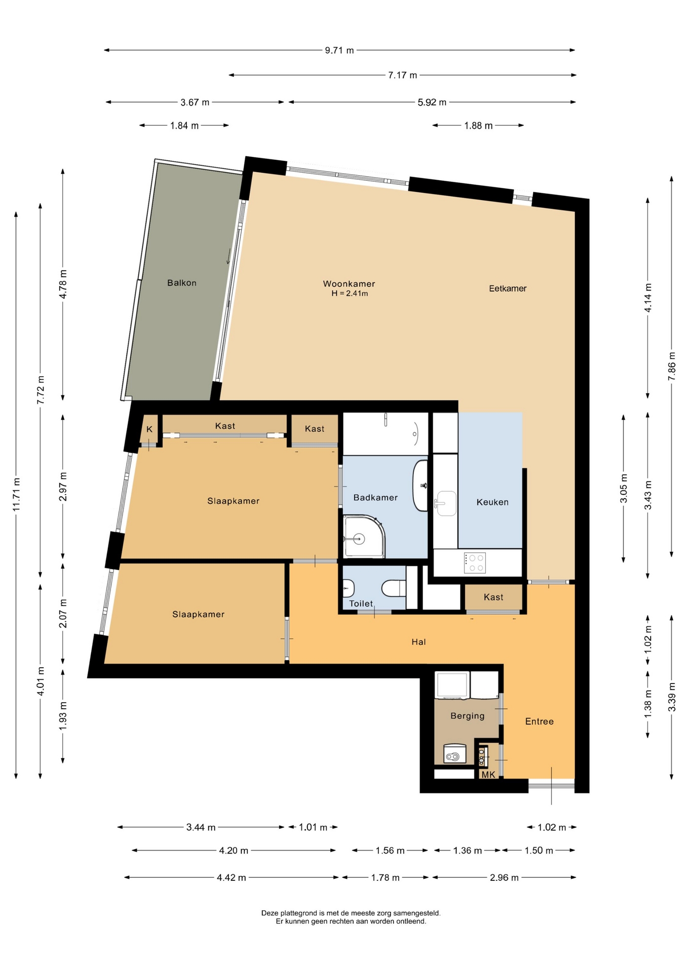 “Deze informatie is door ons met de nodige zorgvuldigheid samengesteld. Onzerzijds wordt echter geen enkele aansprakelijkheid aanvaard voor enige onvolledigheid, onjuistheid of anderszins, dan wel de gevolgen daarvan. Alle opgegeven maten en oppervlakten zijn indicatief.”