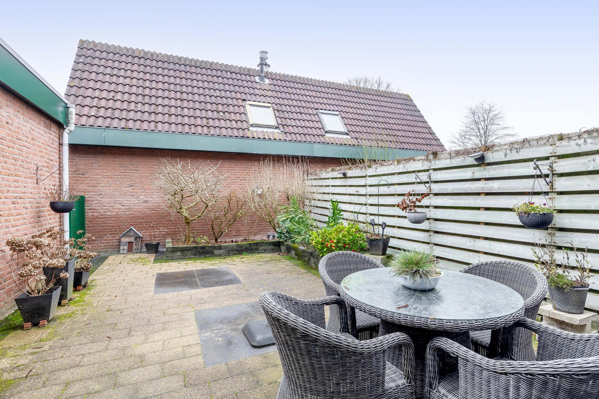 De halfopen keuken sluit aan op de leefruimte en is praktisch ingericht met voldoende werk- en bergruimte. Vanuit de keuken heb je zicht op de tuin en stap je zo naar buiten. Aangrenzend vind je de aangebouwde stenen berging met elektra, ideaal voor fietsen, gereedschap of extra opslag.