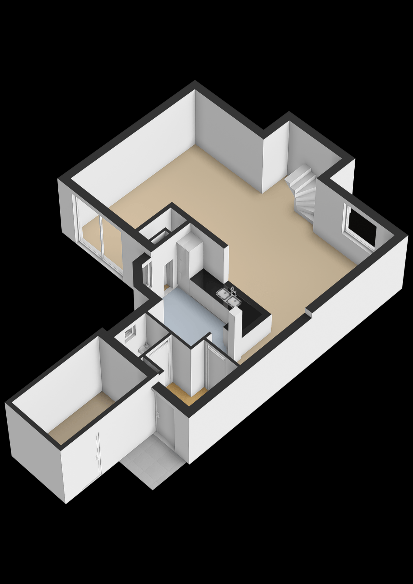 Aan de voorzijde parkeer je eenvoudig meerdere auto’s op eigen erf. De carport zorgt ervoor dat je altijd droog uitstapt. De entree ligt beschut en geeft toegang tot de hal met toilet en meterkast. Vanuit hier loop je direct de leefruimte in.