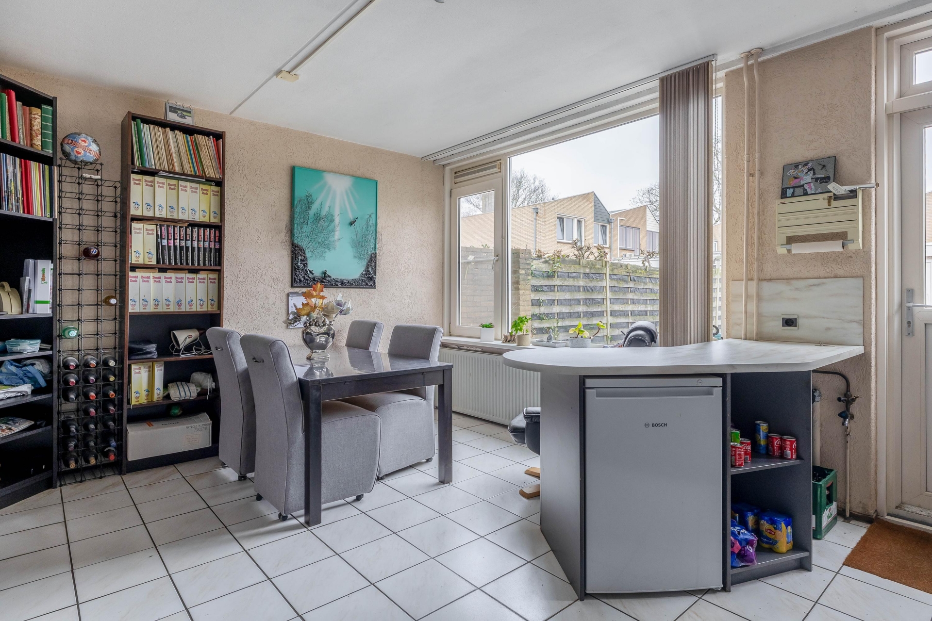 De keuken is functioneel en strak ingericht met veel kastruimte en een rechte opstelling langs de wand. Hier heb je alles wat je nodig hebt om doordeweeks snel te koken of juist uitgebreid aan de slag te gaan in het weekend. Mooie bijkomstigheid is de praktische bergkast onder de trap, ideaal voor opslag en voorraad. Vanuit de keuken stap je via de achterdeur zo de tuin in. Handig als je buiten eet, of als de kinderen lekker in de tuin spelen terwijl je binnen nog bezig bent.