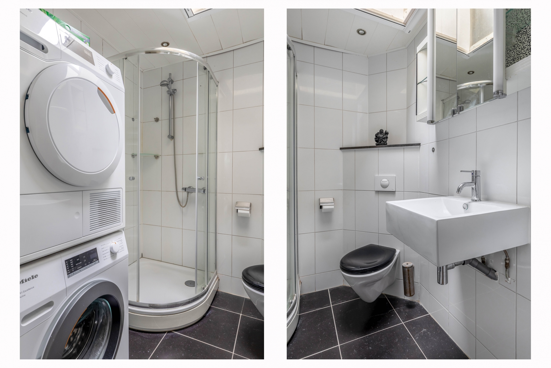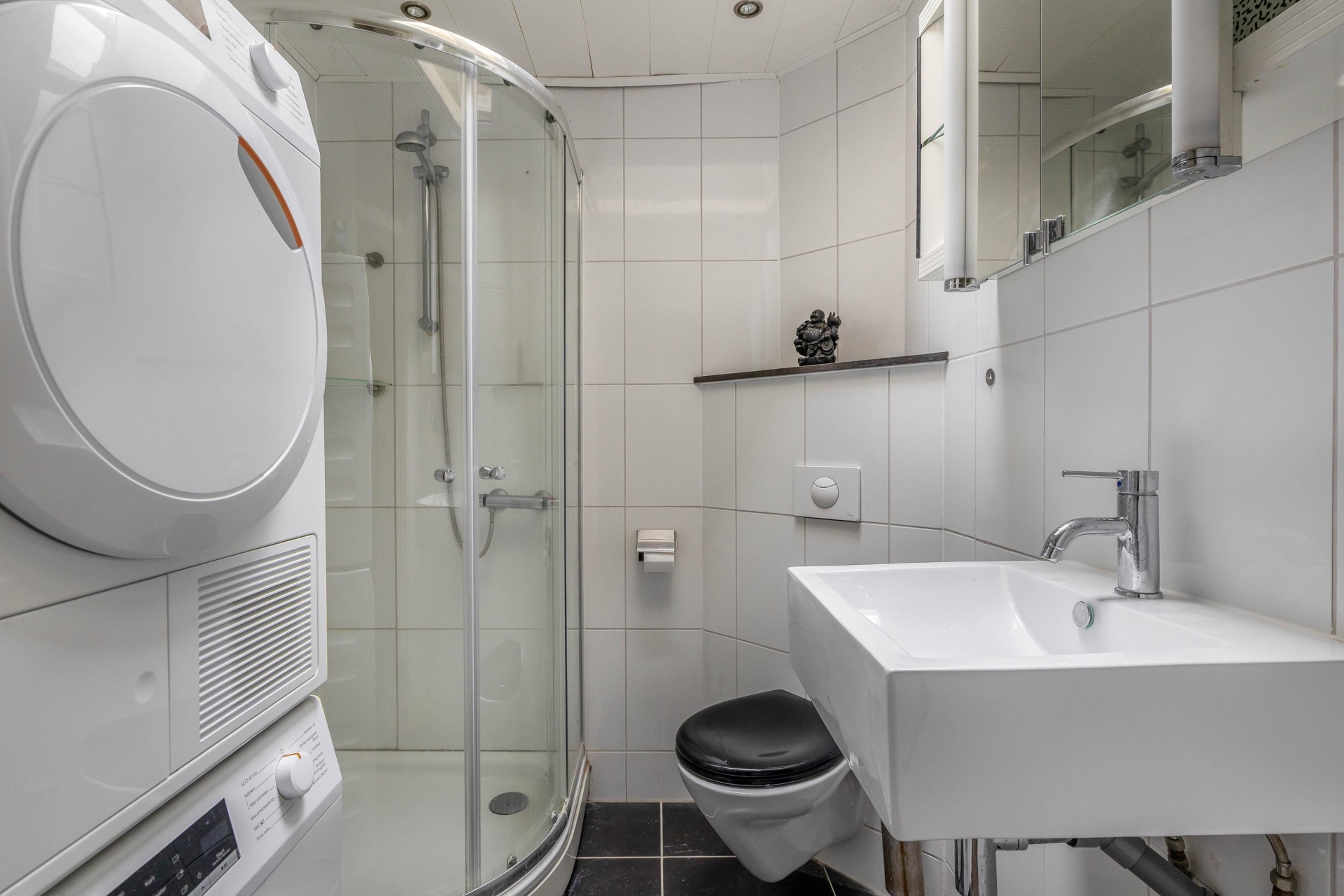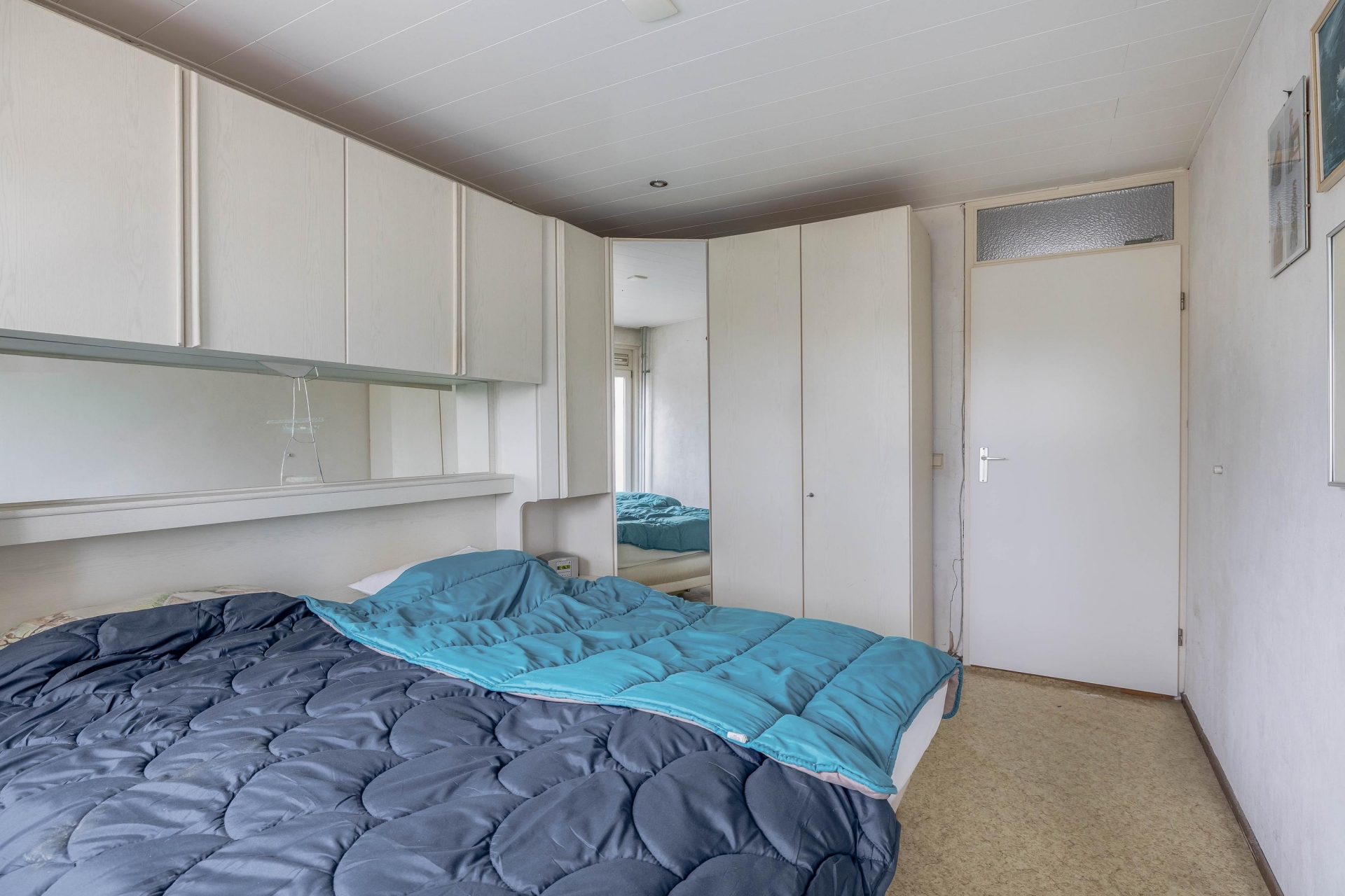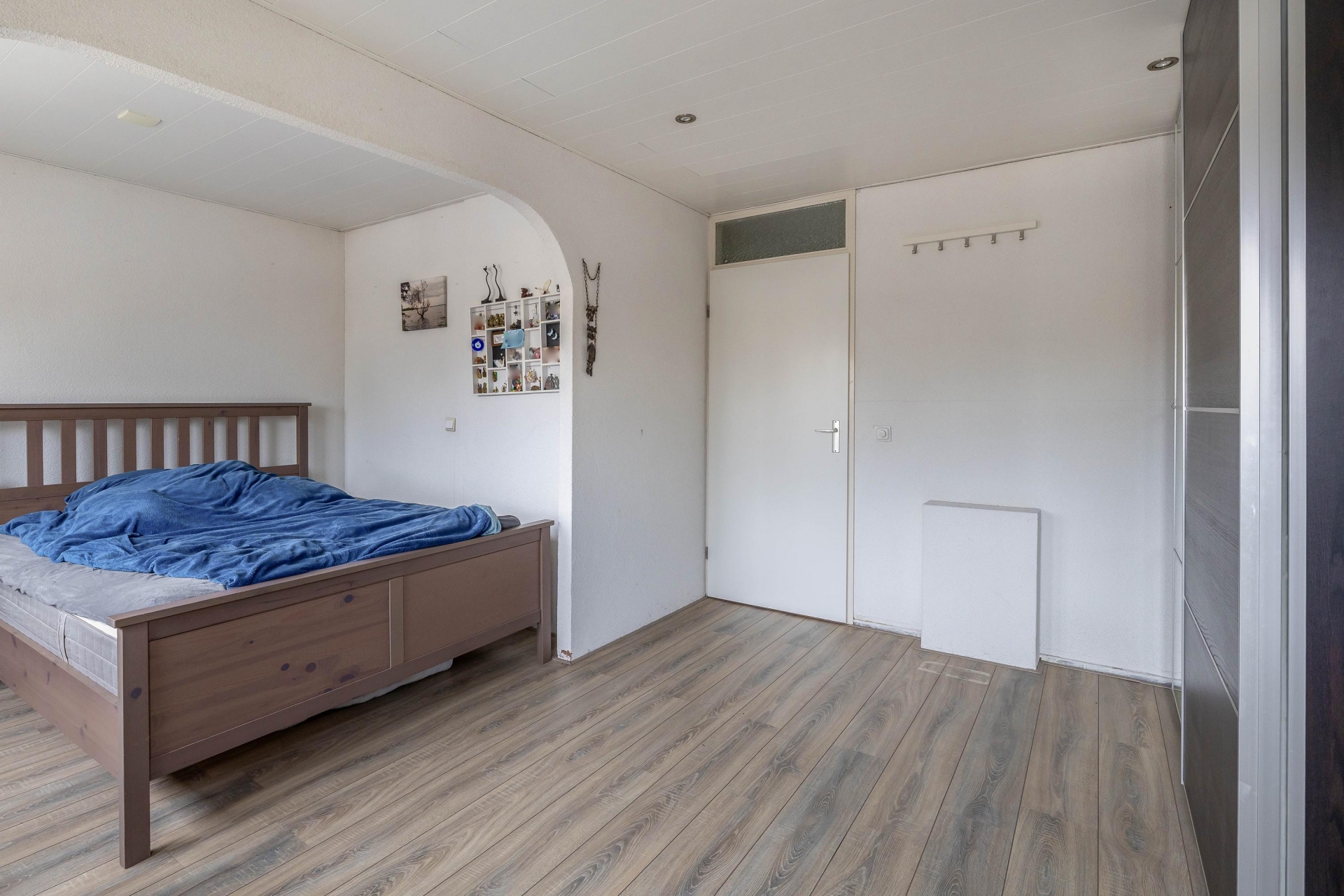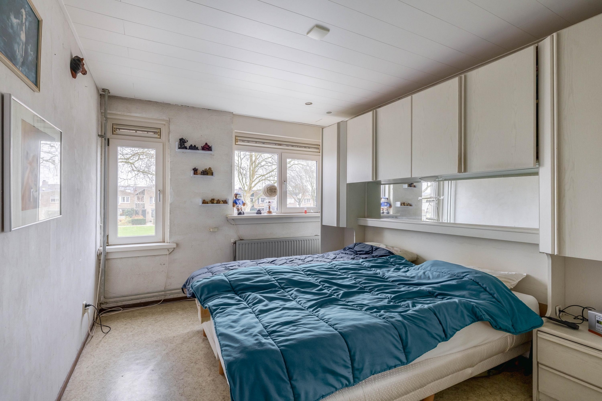 Op de eerste verdieping zijn drie slaapkamers aanwezig, verdeeld over de voor- en achterzijde van het huis. De grootste kamer ligt aan de achterzijde en biedt volop ruimte voor een tweepersoonsbed en een grote kledingkast. Oorspronkelijk waren dit twee aparte kamers; deze zijn samengevoegd tot één royale hoofdslaapkamer, maar kunnen indien gewenst eenvoudig weer worden gesplitst om een extra slaapkamer te creëren. De overige twee kamers zijn ideaal als kinderkamer, werkkamer of logeerkamer. De badkamer is slim ingericht met een douchecabine, wastafelmeubel, toilet én de opstelling voor wasmachine en droger. Alles praktisch bij elkaar.