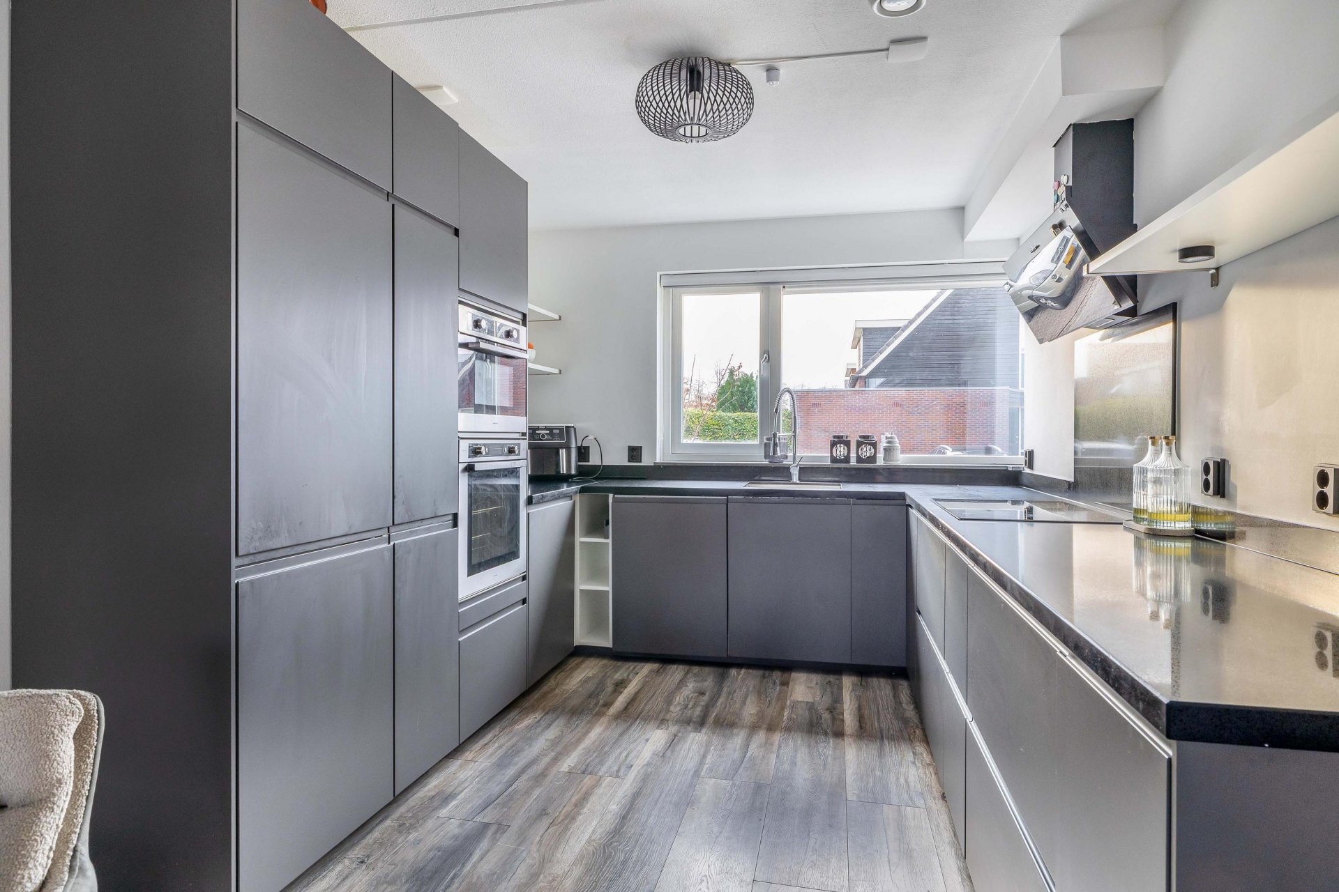 De keuken is recent vernieuwd en heeft een strakke, eigentijdse uitstraling met donkere fronten en een praktisch werkblad. Er is voldoende kastruimte en de indeling is overzichtelijk, ideaal voor wie graag kookt maar ook houdt van gemak. Alles is netjes afgewerkt en sluit perfect aan bij de rest van het huis.