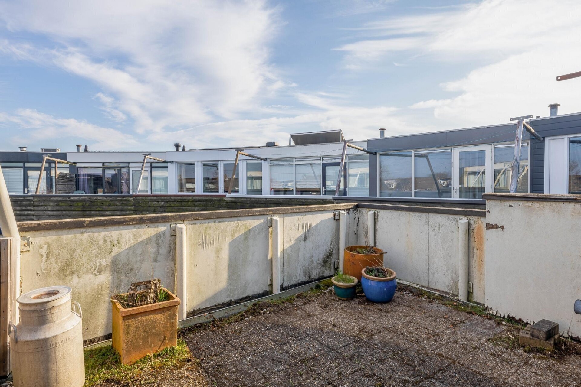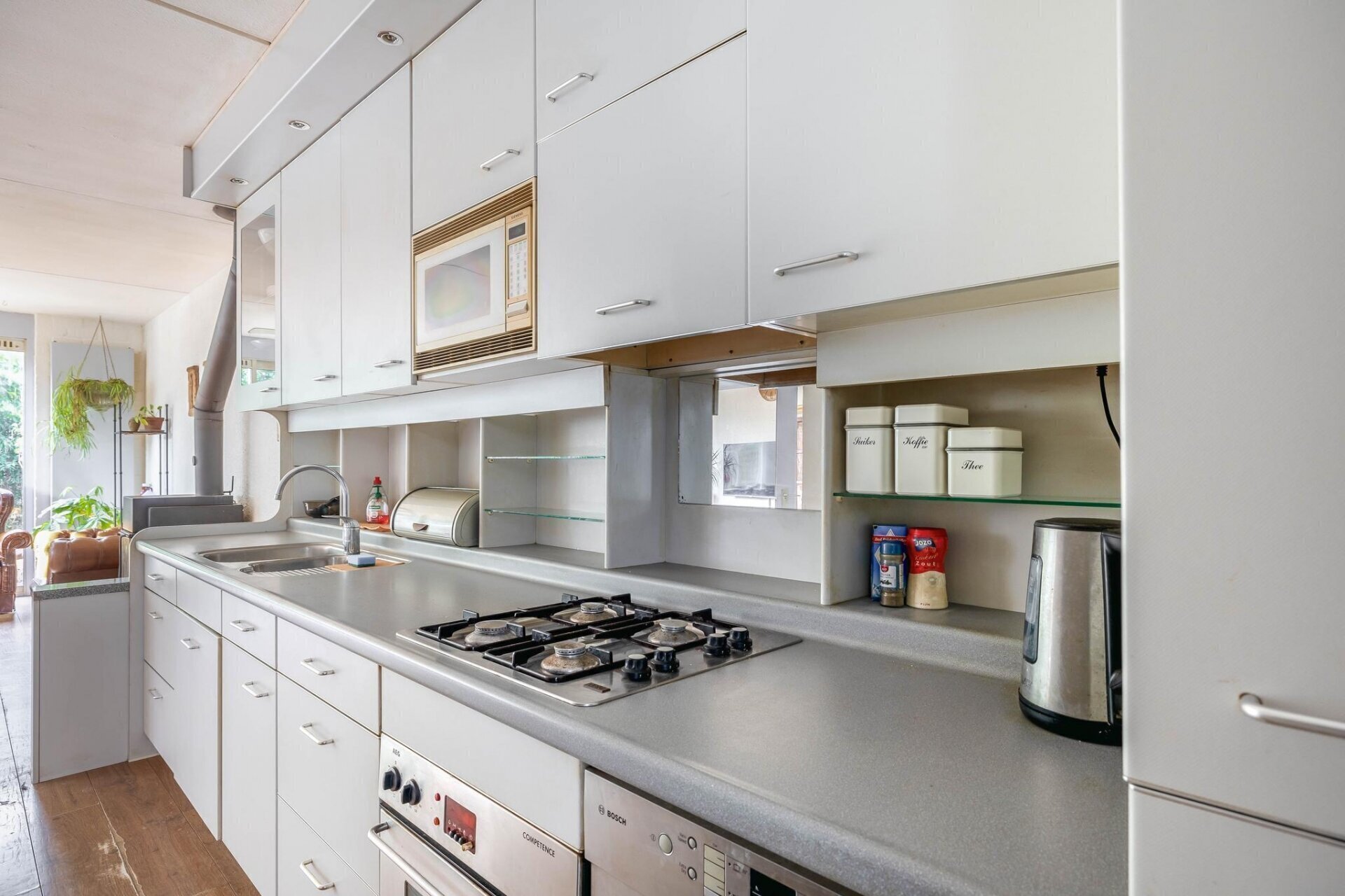 Deze ruime hoekwoning biedt veel mogelijkheden! Achter de gevel van deze 'waaierwoning' wordt je verrast door de ruimte, licht en fijne indeling. Stap binnen in de woonkamer met sfeervolle open haard en zicht op de groene achtertuin. De open keuken is voorzien van alle benodigde apparatuur. Op de eerste verdieping zijn er 3 ruime slaapkamers en een badkamer met ligbad, toilet en wastafel. De tweede verdieping is helemaal naar eigen wens in te delen. Je kunt hier eenvoudig twee slaapkamers creëren en ontspannen op het dakterras. Buiten vind je een heerlijke, ruime tuin waar je kunt genieten van privacy en rust. Genoeg mogelijkheden voor het aanleggen van een eigen tuinparadijs, perfect voor gezellige avonden. Door de ligging op het Westen heb je tot in de late uurtjes zon. Kortom; een ideale woning voor gezinnen!