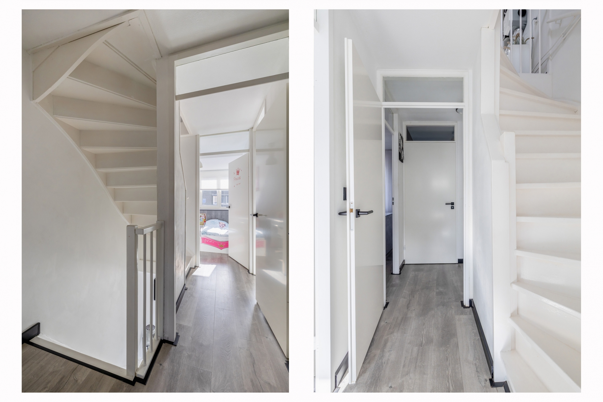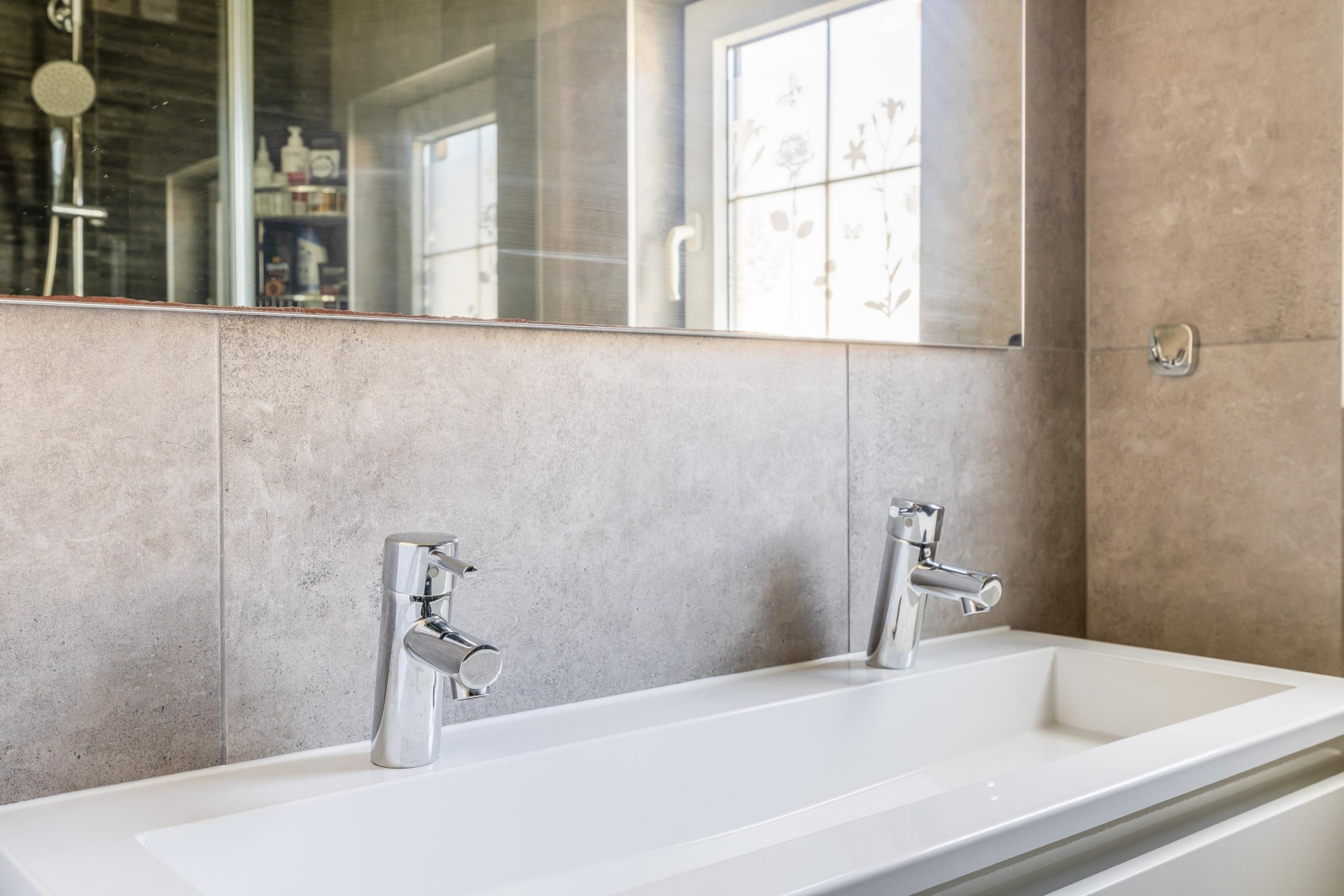 Op de eerste verdieping bevinden zich drie slaapkamers, waaronder een royale hoofdslaapkamer aan de voorzijde met grote schuifkast en nette afwerking. Aan de achterzijde vind je een gezellige kinderkamer én een extra kamer die prima dienst kan doen als thuiswerkplek of hobbyruimte. Ook is hier een dakkapel aanwezig, wat zorgt voor extra ruimte en licht. De badkamer is eveneens in 2022 vernieuwd en uitgerust met een ruime inloopdouche, modern wastafelmeubel, designradiator en tweede toilet – alles strak en tijdloos afgewerkt.