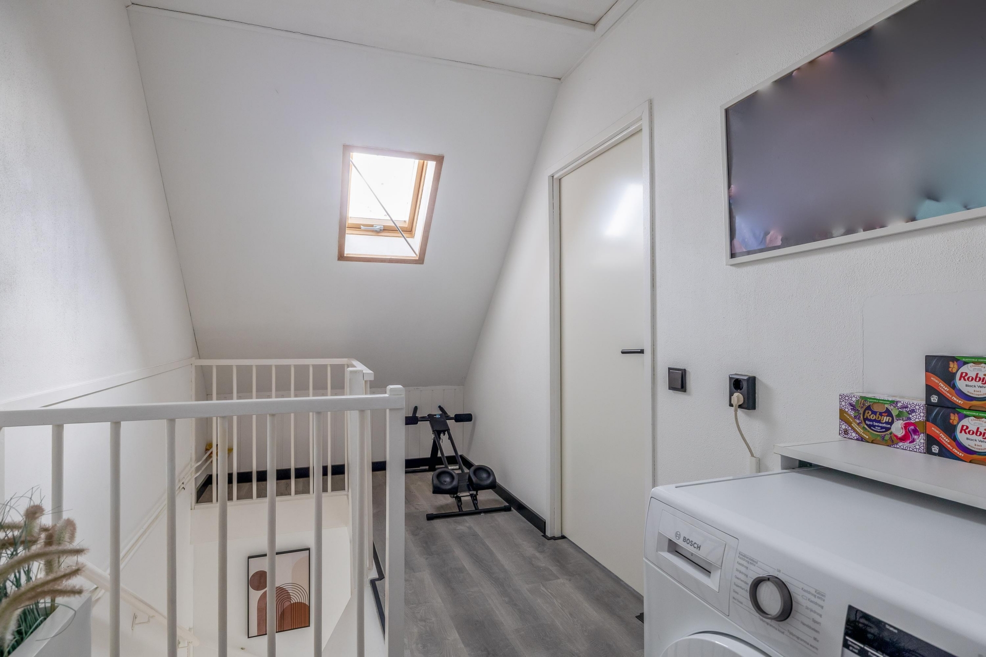De tweede verdieping biedt een vierde, ruime slaapkamer met dak- en gevelramen en strakke vloer. Op de voorzolder is er een aparte wasruimte met aansluitingen voor wasmachine en droger én toegang tot een handige bergvliering. Perfect om seizoensspullen uit het zicht op te bergen.