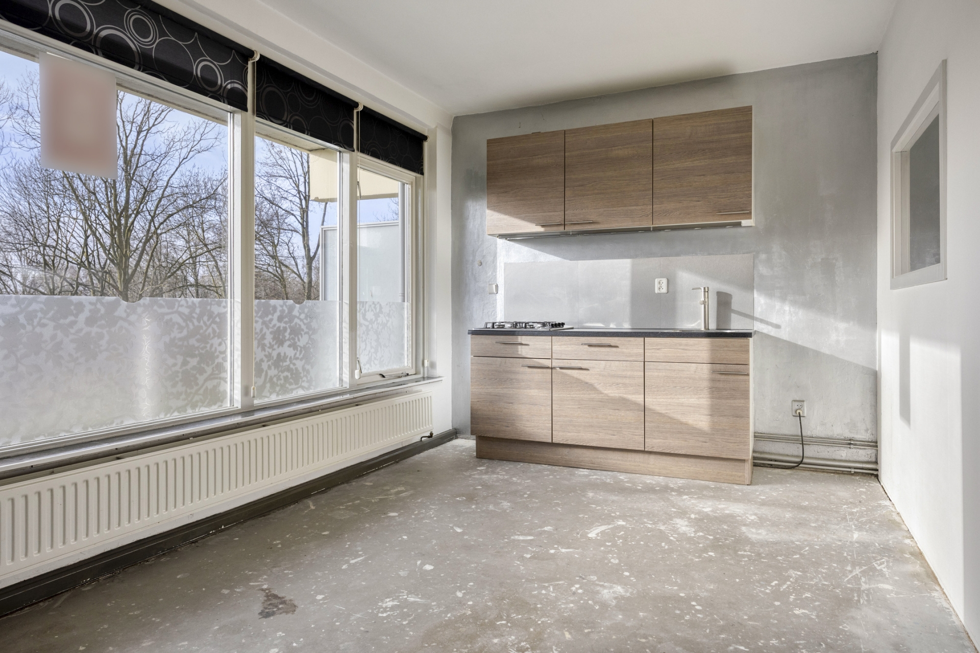 Wat dit appartement extra aantrekkelijk maakt voor starters, is de aparte slaapkamer. Geen studio waar alles in één ruimte zit, maar echt een afgescheiden slaapvertrek. Groot genoeg voor een bed en kastruimte, waardoor je woon- en slaapgedeelte netjes gescheiden houdt.