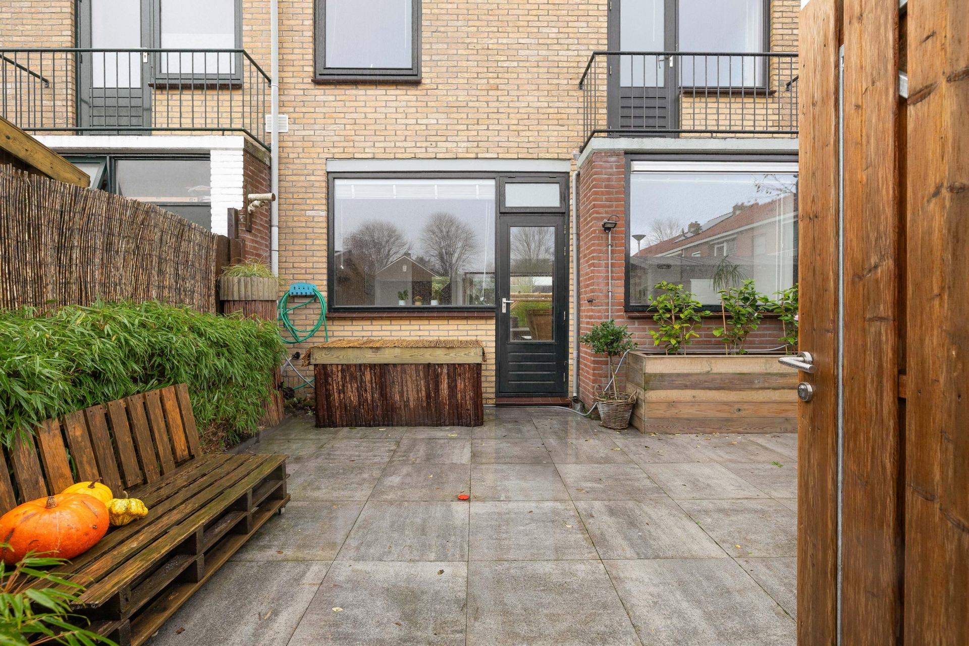 De achtertuin heeft een houten schutting (2022, geschilderd 2024). Voor -en achtertuin zijn met elkaar verbonden middels een pad langs de zijkant van het huis.
