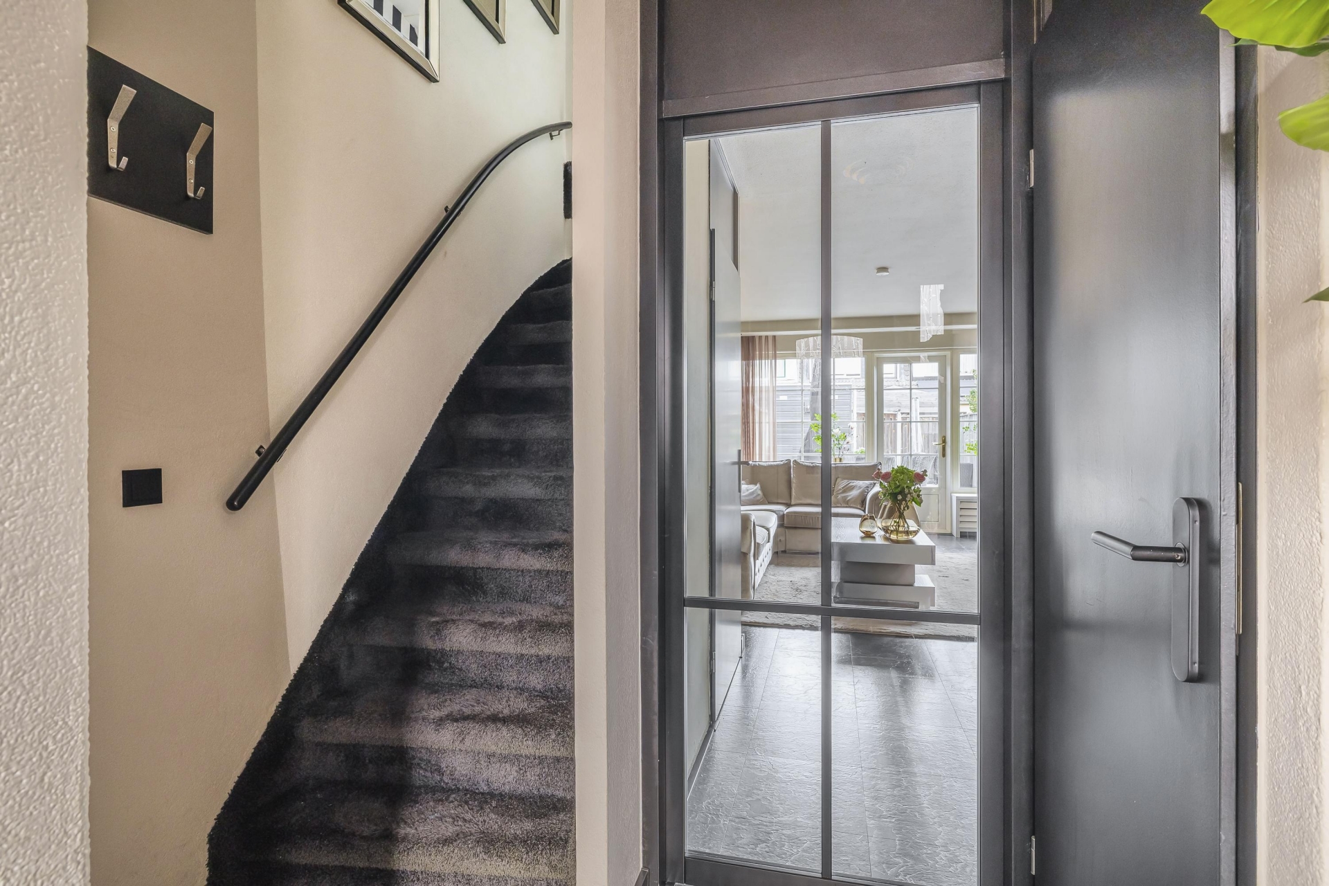 Vanuit de entree zijn alle vertrekken bereikbaar. In de entree is er een separaat toilet met fonteintje, meterkast en trapopgang naar de eerste verdieping.