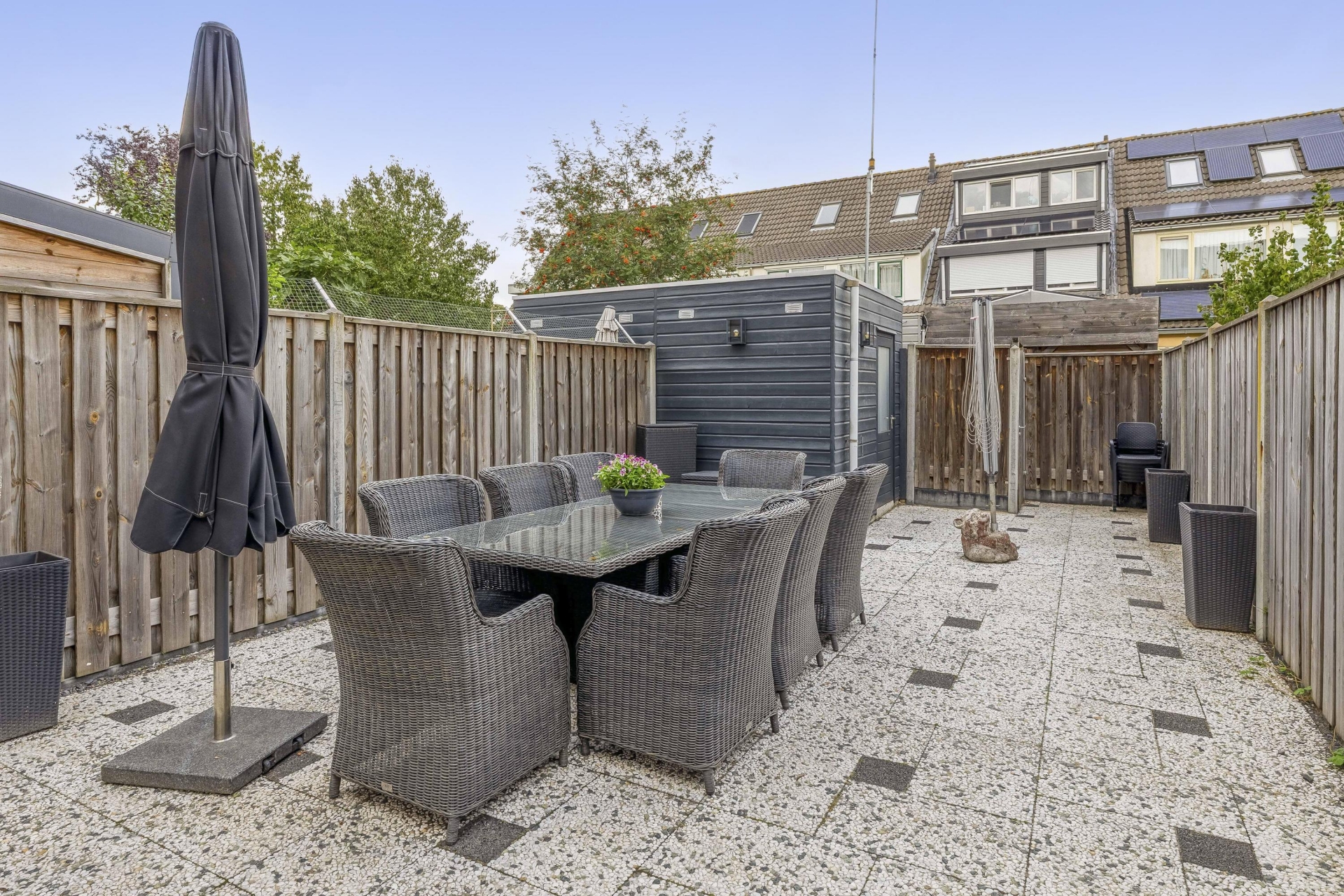 De woning beschikt naast een voortuin op het zuiden ook over een achtertuin met ligging op het noorden. Gezien de grootte van de tuin kan hier voor een lange tijd genoten worden van de buitenruimte.
