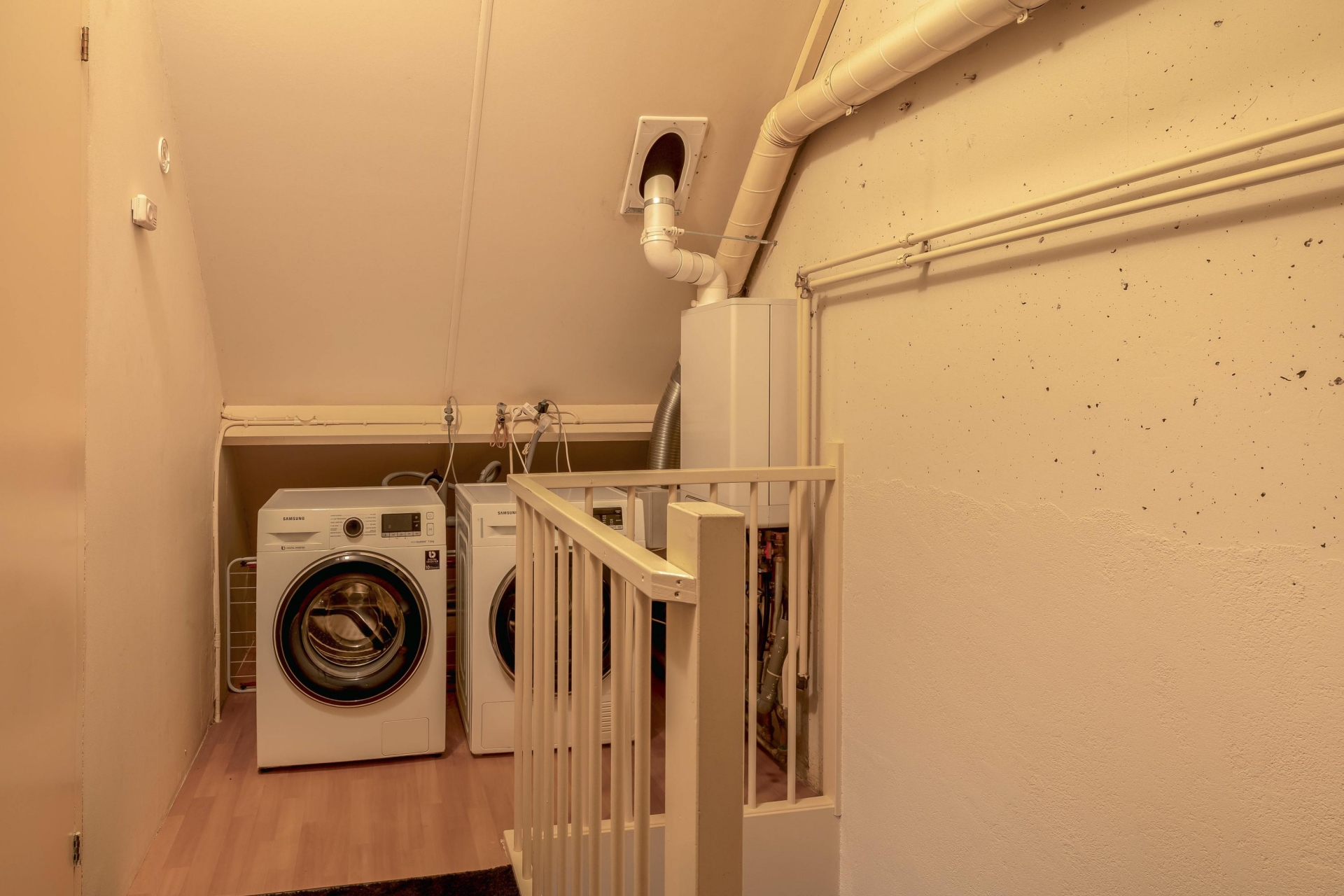 - Voorzolder met toegang tot de wasruimte voorzien van een wasmachineaansluiting en de CV ketel (Intergas bouwjaar 2023, huur circa €42,-);