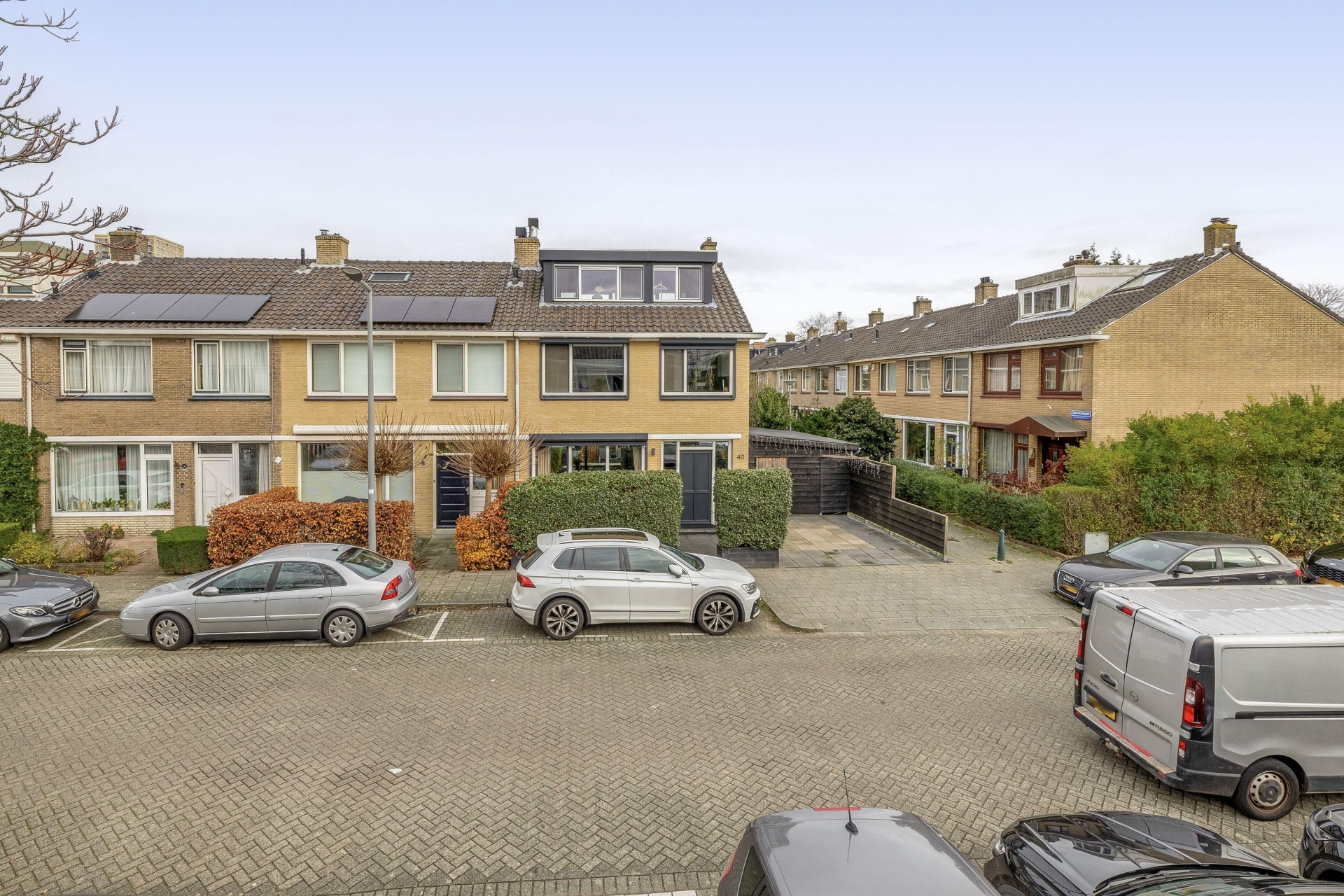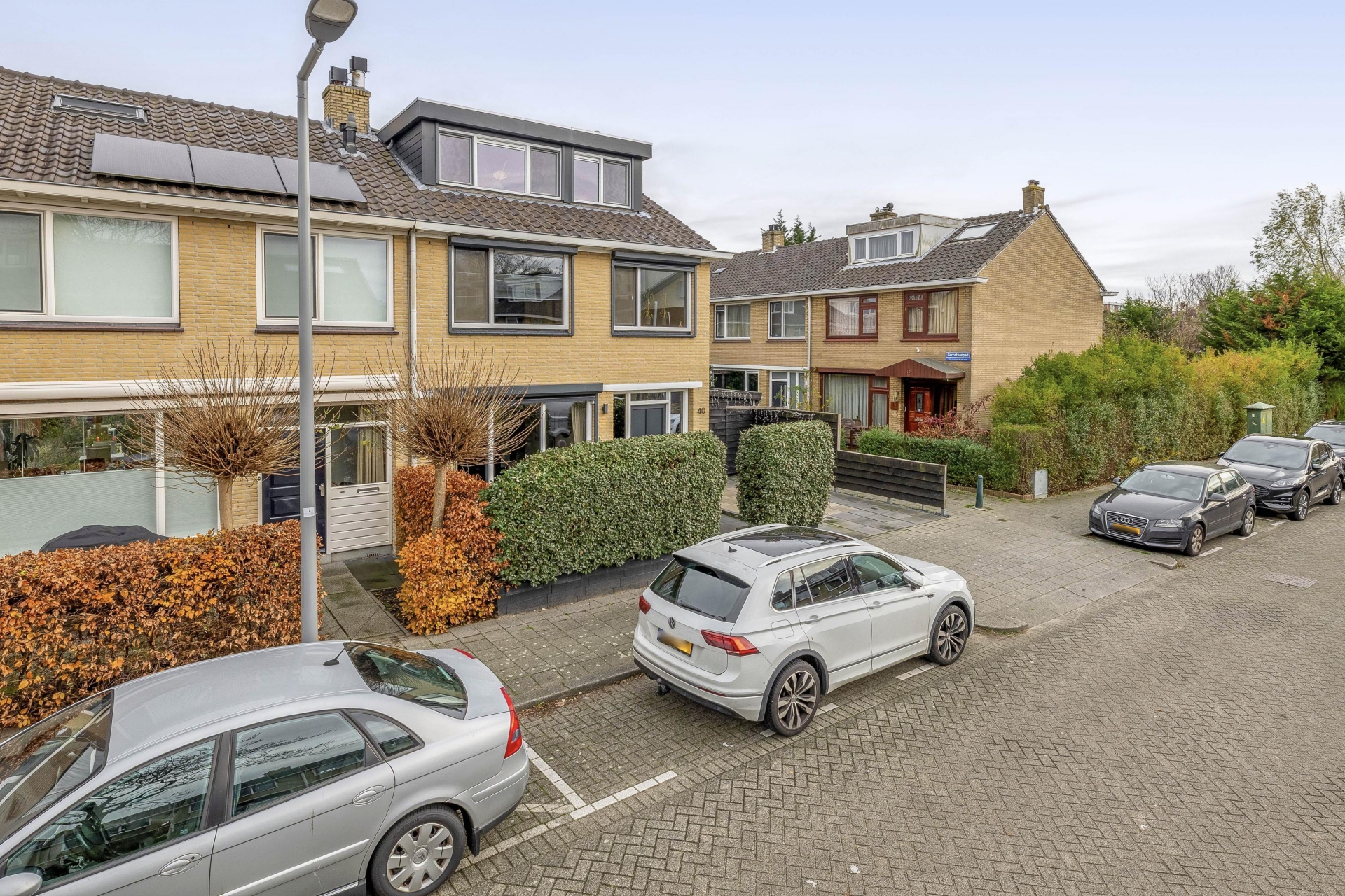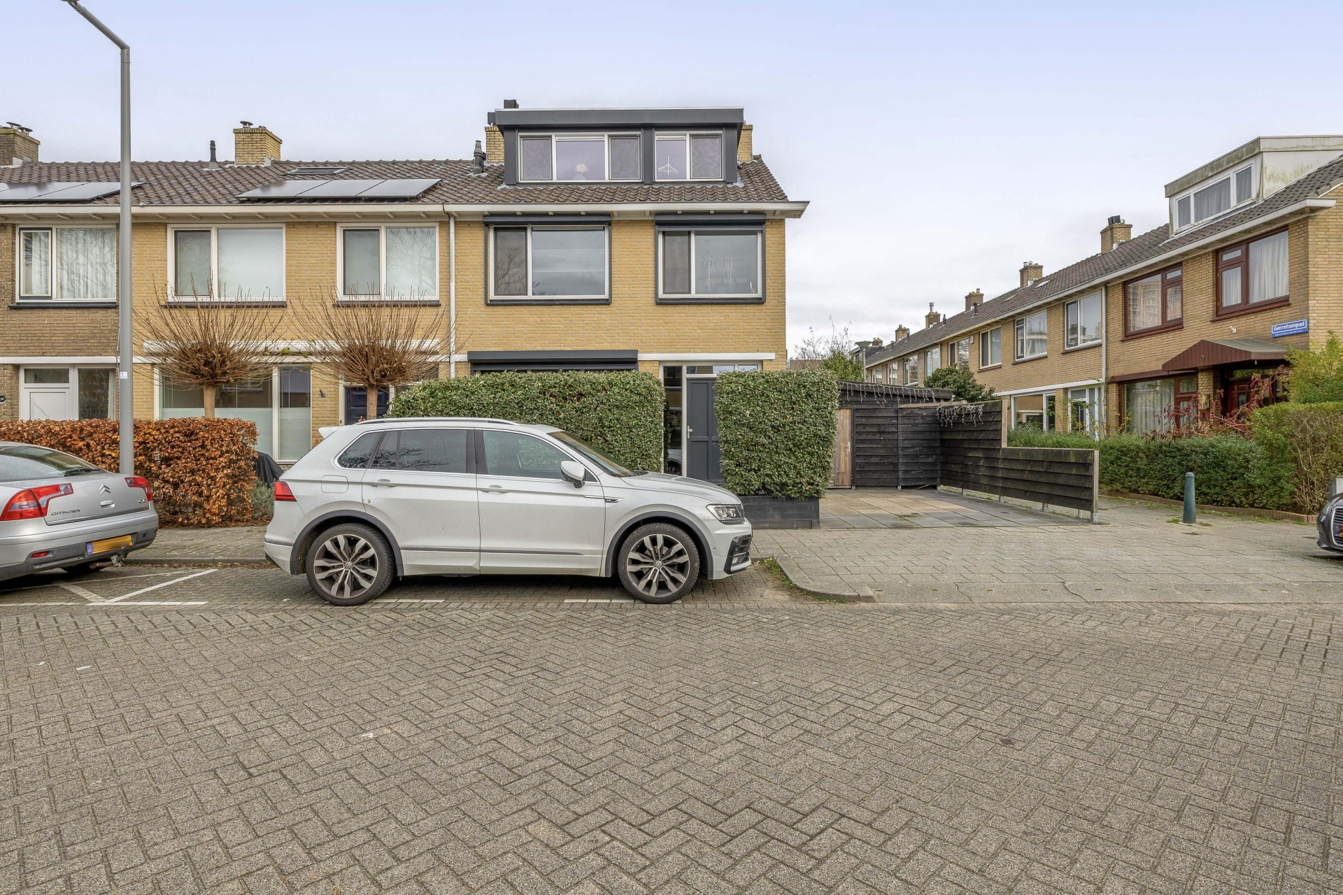 Buiten springt de nette voortuin direct in het oog, met voldoende ruimte om de auto op eigen terrein te parkeren. Dankzij de hoekligging geniet je hier van extra privacy én meer lichtinval. De ligging aan een rustige straat maakt het ook voor gezinnen met kinderen een fijne plek om te wonen – veilig, overzichtelijk en toch dichtbij alle voorzieningen.