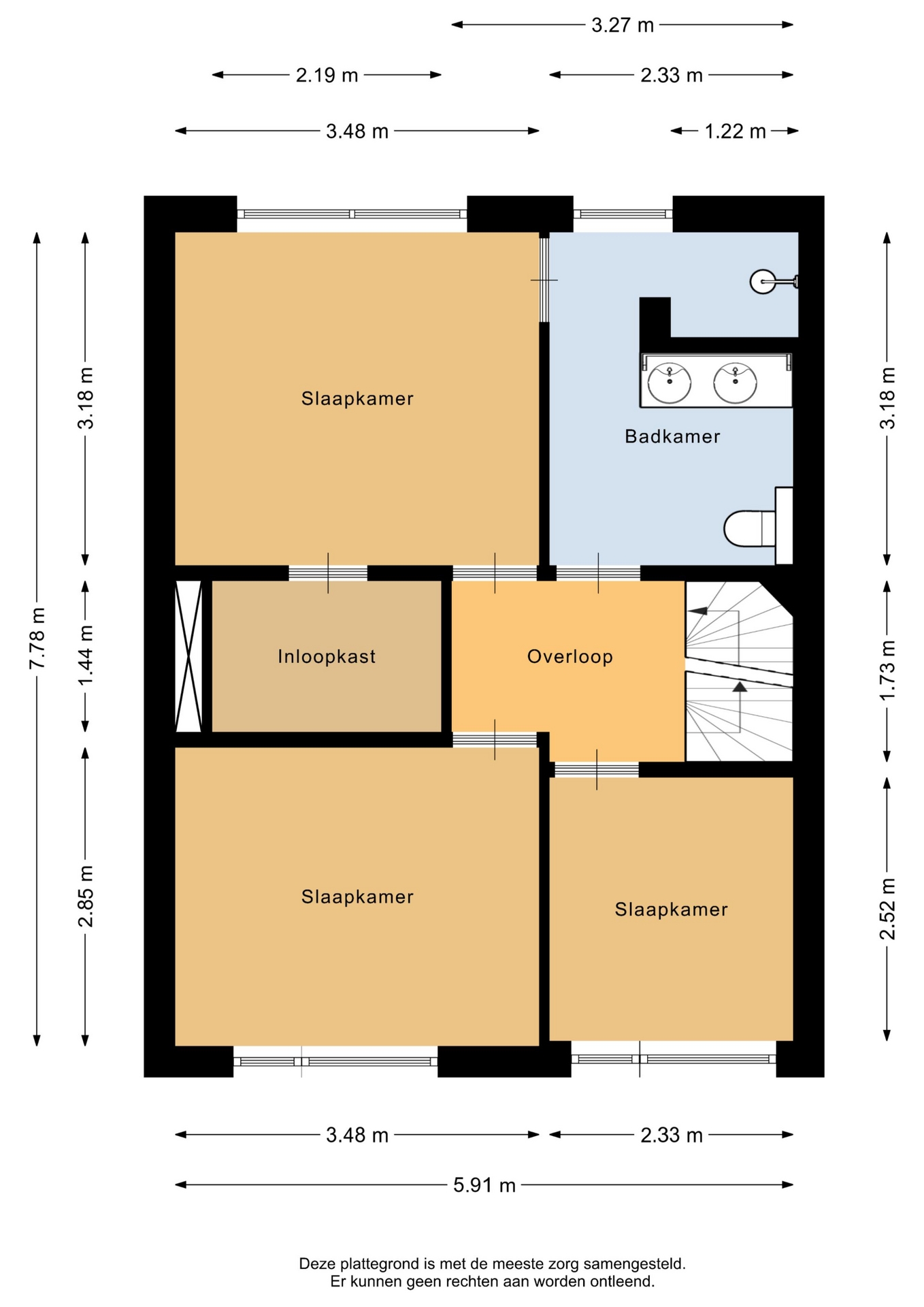 “Deze informatie is door ons met de nodige zorgvuldigheid samengesteld. Onzerzijds wordt echter geen enkele aansprakelijkheid aanvaard voor enige onvolledigheid, onjuistheid of anderszins, dan wel de gevolgen daarvan. Alle opgegeven maten en oppervlakten zijn indicatief.”