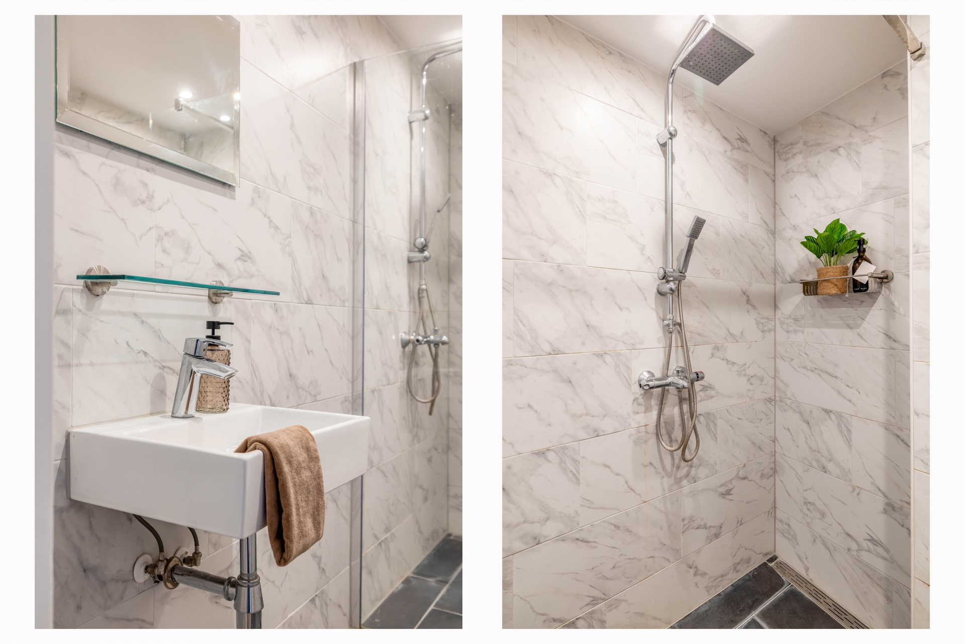 De tweede verdieping beschikt over twee ruime slaapkamers, waarvan één met schuifpui naar het tweede balkon, een aparte werkkamer, een moderne inloopdouche met mechanische ventilatie en een separaat toilet. Ook hier is alles uitgevoerd met kunststof kozijnen en dubbelglas.