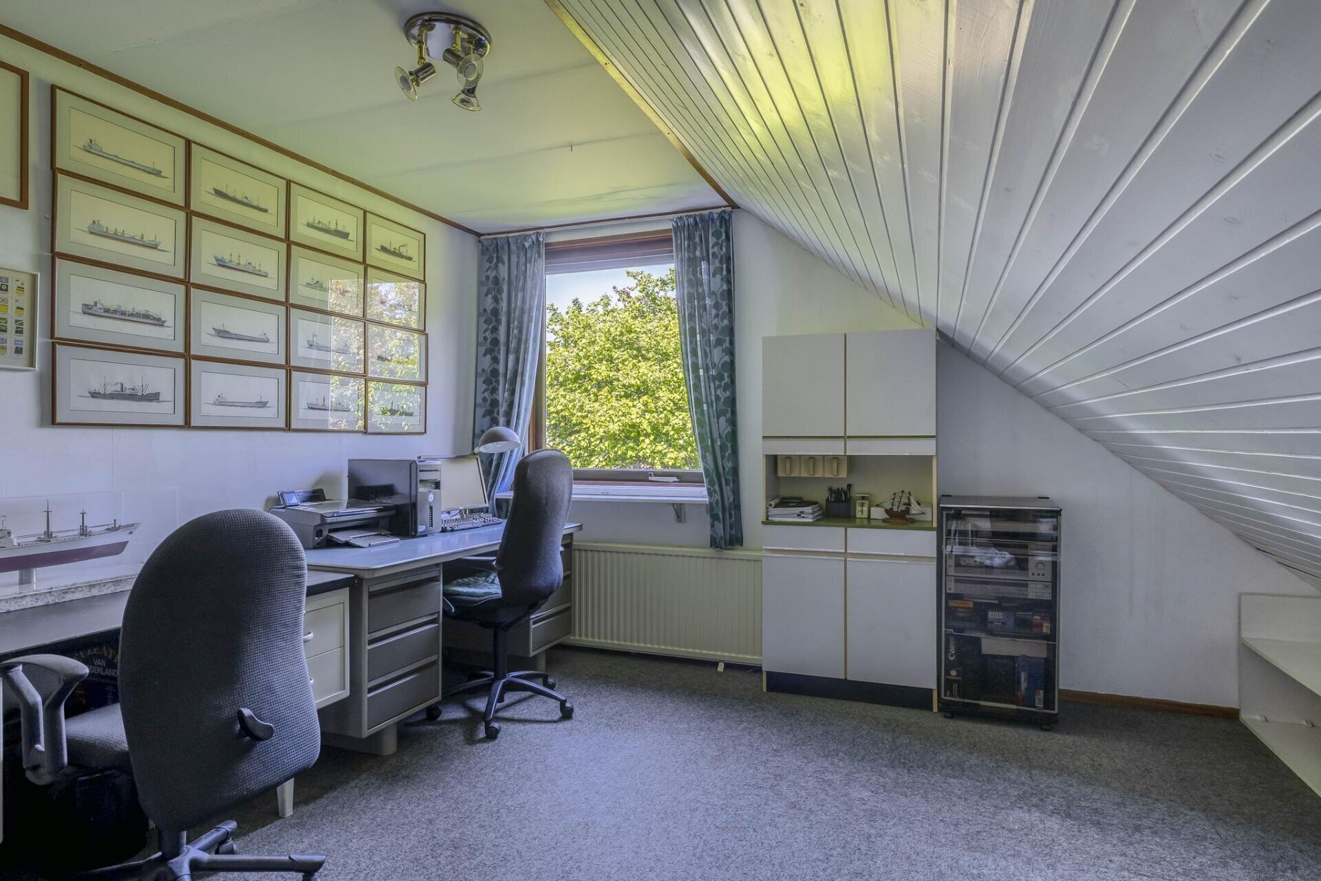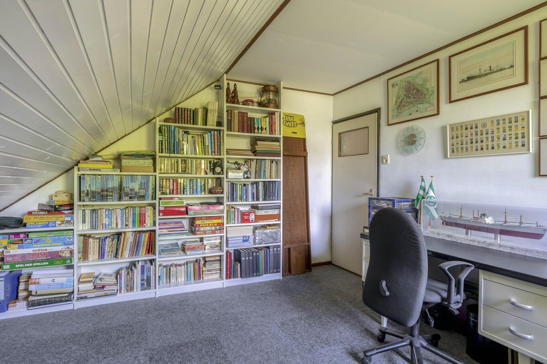 Entree, hal met toegang tot de lichte woonkamer, het toilet, de stookruimte en een tussenportaal. De woonkamer is gelegen aan de voorzijde van de woning en beschikt over een sfeervolle erker. Deze zorgt voor veel daglicht in de ruimte. Grenzend aan de woonkamer is een aparte kamer die momenteel als kantoor gebruikt wordt. Middels het tussenportaal kom je in de slaapkamer, inloopkast, bijkeuken, keuken en badkamer toegankelijk. De keuken is via een hal verbonden met de woonkamer. Op de eerste verdieping zijn 4 ruime slaapkamers en een badkamer te vinden. Tevens is er ook voldoende bergruimte aanwezig middels de vaste kasten.