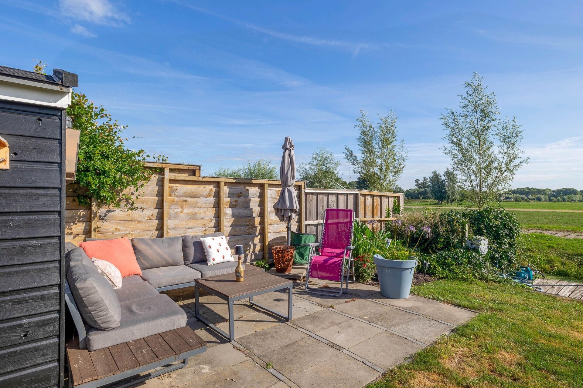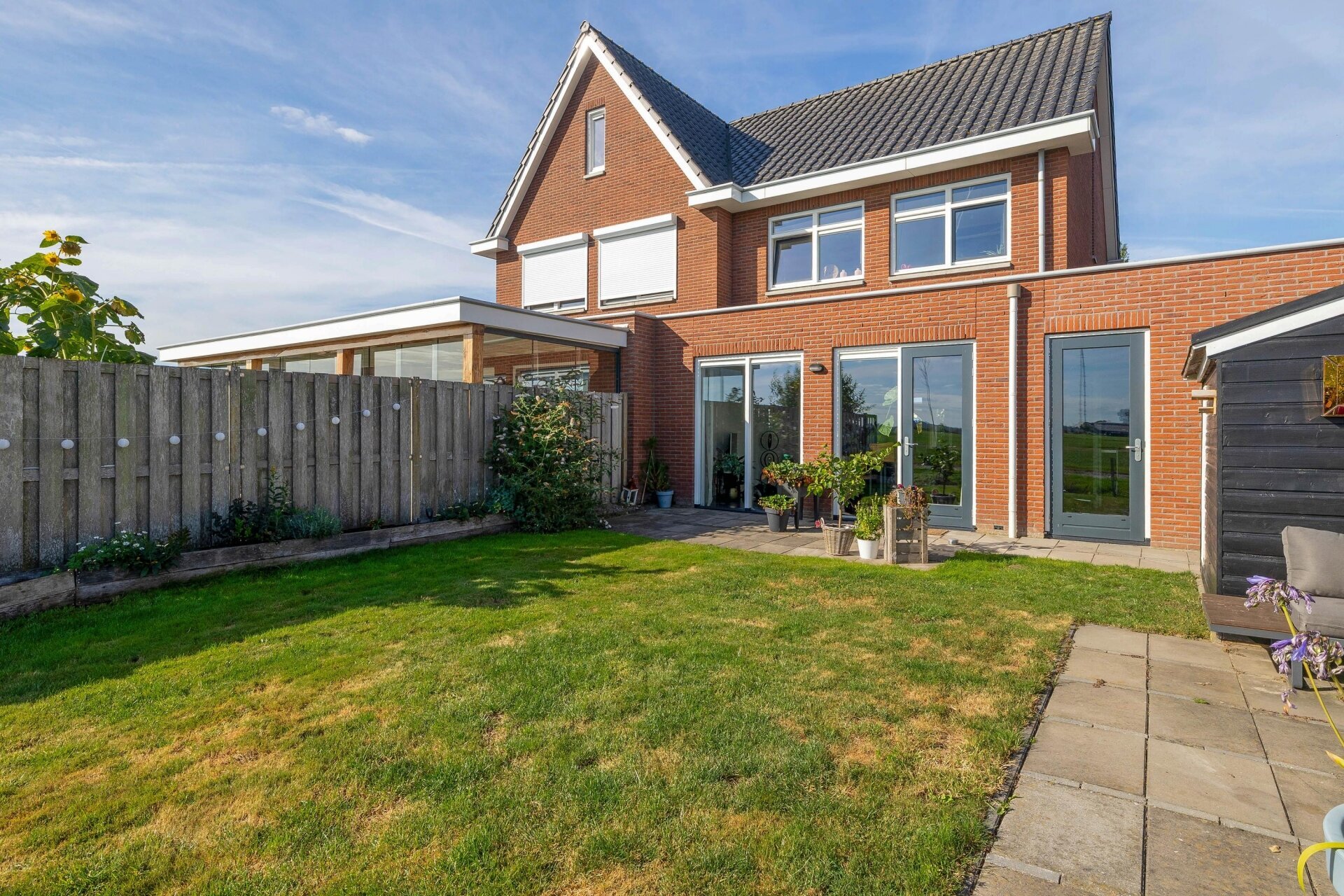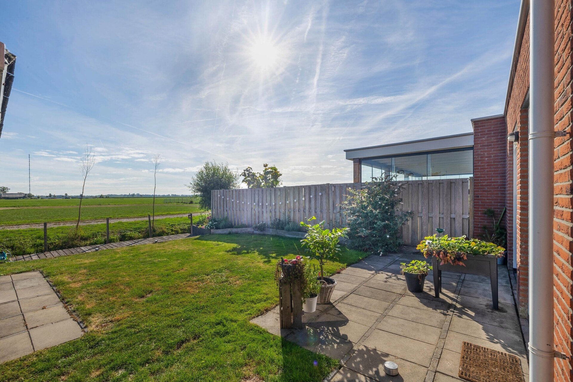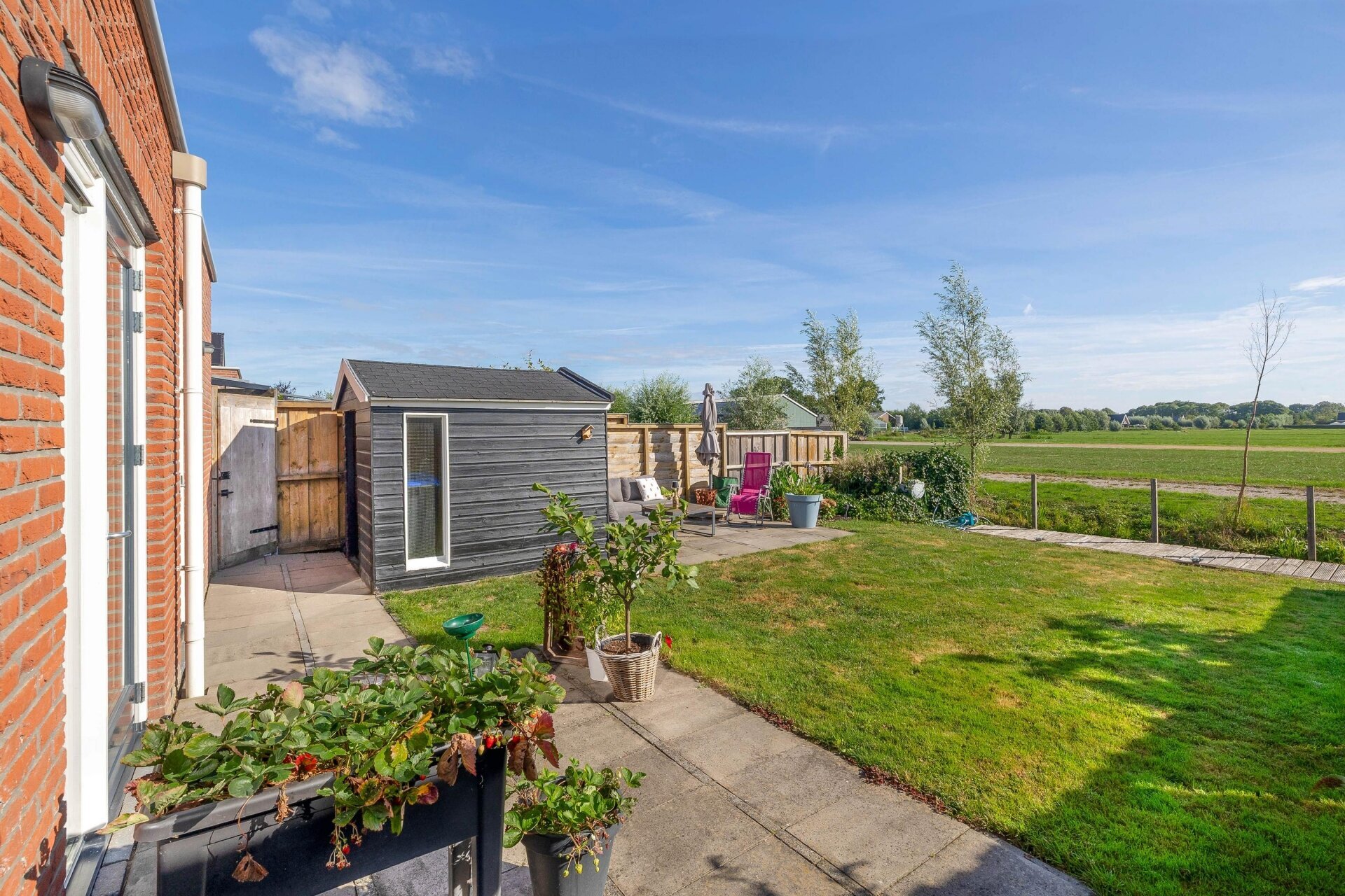 De achtertuin ligt op het oosten, waardoor je hier 's ochtends al heerlijk in de zon kunt zitten – perfect voor een rustig ontbijt buiten. De tuin is overzichtelijk aangelegd met zowel bestrating als gras en heeft genoeg plek voor een eettafel, een loungeset of speelruimte voor kinderen. De ligging aan de rand van het dorp zorgt voor veel privacy en een weids uitzicht over de weilanden. Aan de voorkant van het huis beschik je over een eigen oprit én een aangebouwde stenen garage met extra berging – ideaal voor opslag, de auto of als hobbyruimte. De extra bergruimte is volledig geïsoleerd en aangesloten op het riool, waardoor het mogelijk is om op de begane grond een slaapkamer en badkamer te realiseren.
