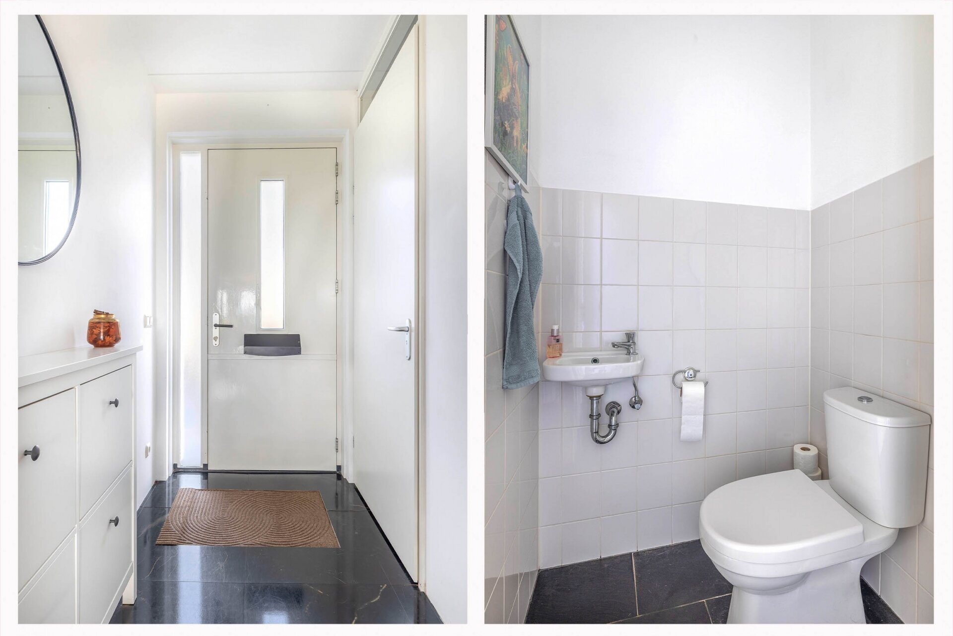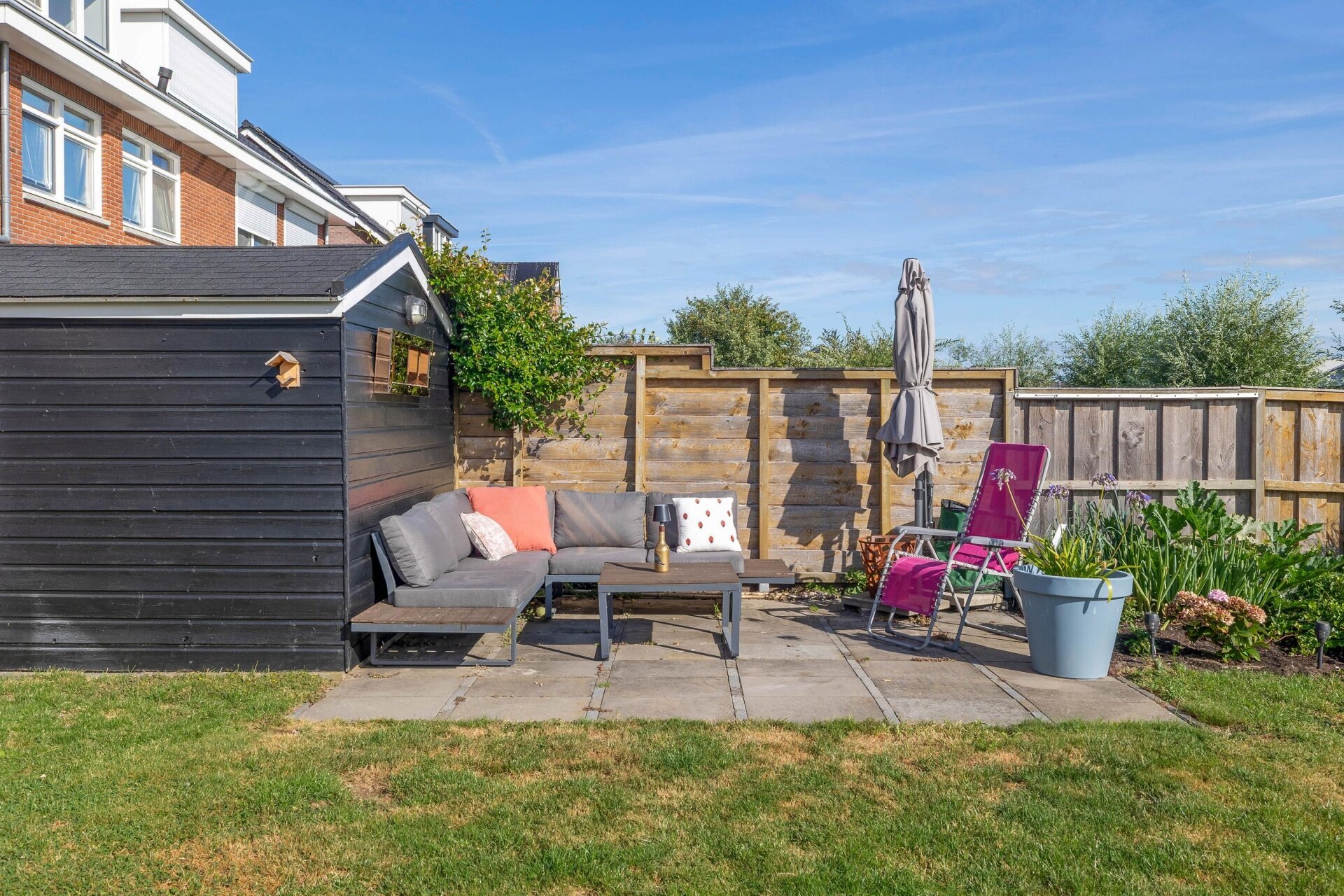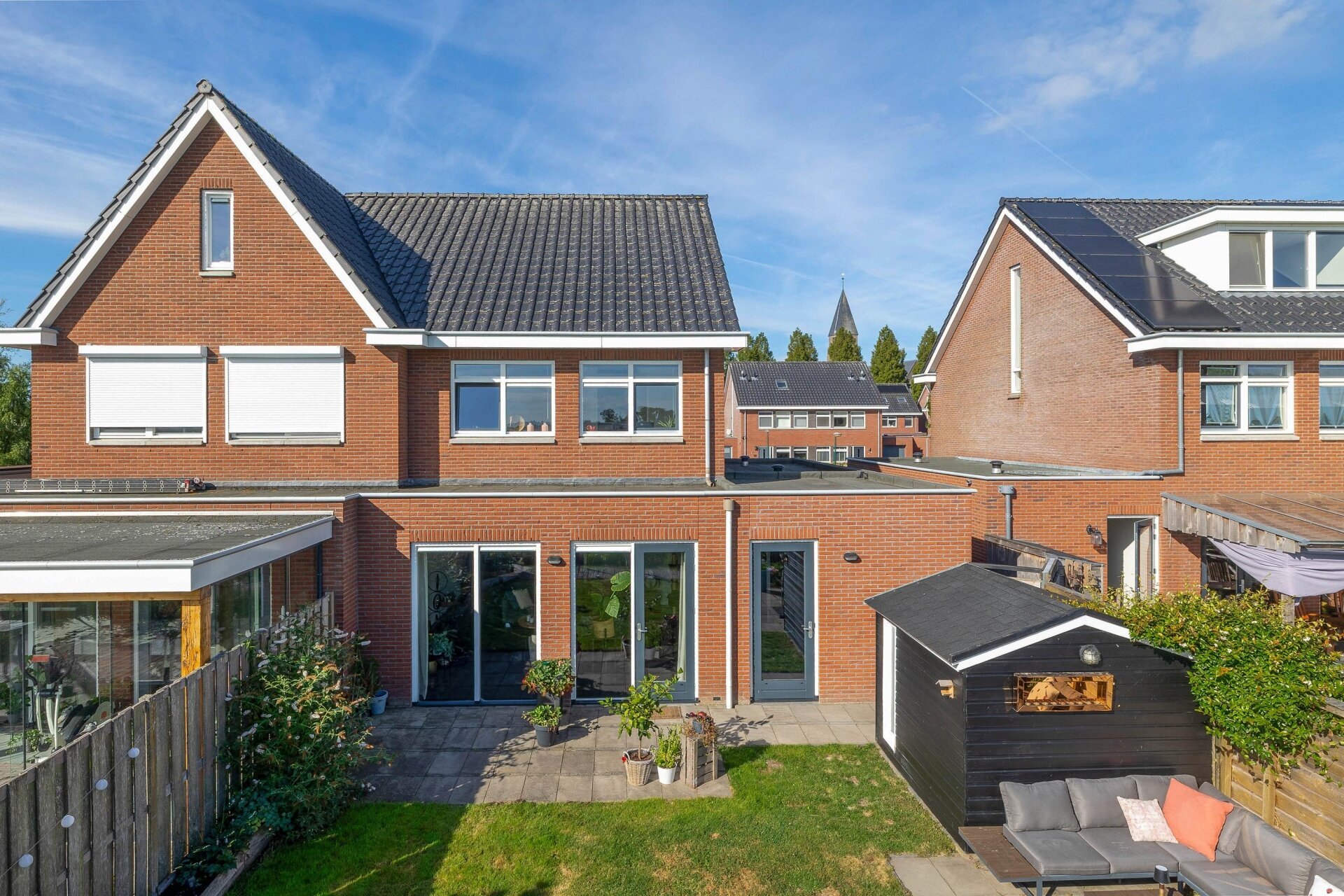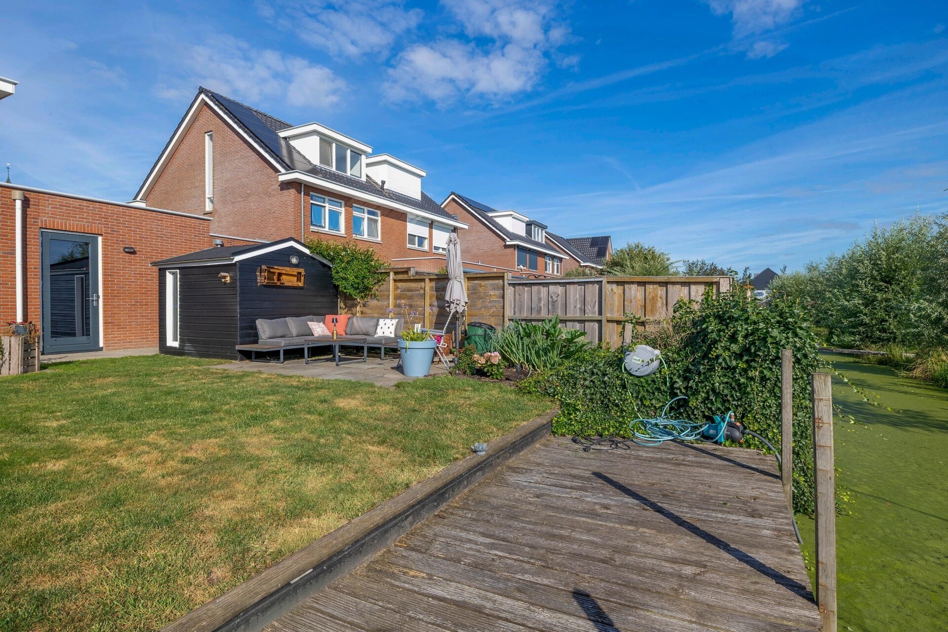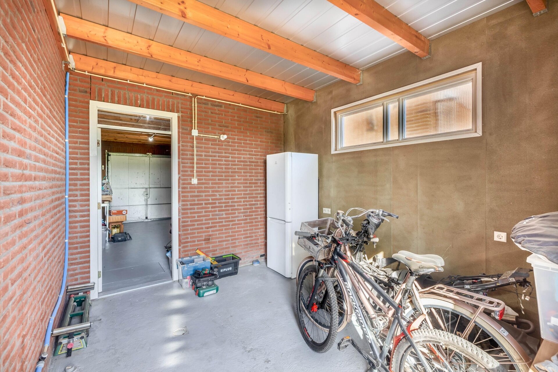 De achtertuin ligt op het oosten, waardoor je hier 's ochtends al heerlijk in de zon kunt zitten – perfect voor een rustig ontbijt buiten. De tuin is overzichtelijk aangelegd met zowel bestrating als gras en heeft genoeg plek voor een eettafel, een loungeset of speelruimte voor kinderen. De ligging aan de rand van het dorp zorgt voor veel privacy en een weids uitzicht over de weilanden. Aan de voorkant van het huis beschik je over een eigen oprit én een aangebouwde stenen garage met extra berging – ideaal voor opslag, de auto of als hobbyruimte. De extra bergruimte is volledig geïsoleerd en aangesloten op het riool, waardoor het mogelijk is om op de begane grond een slaapkamer en badkamer te realiseren.