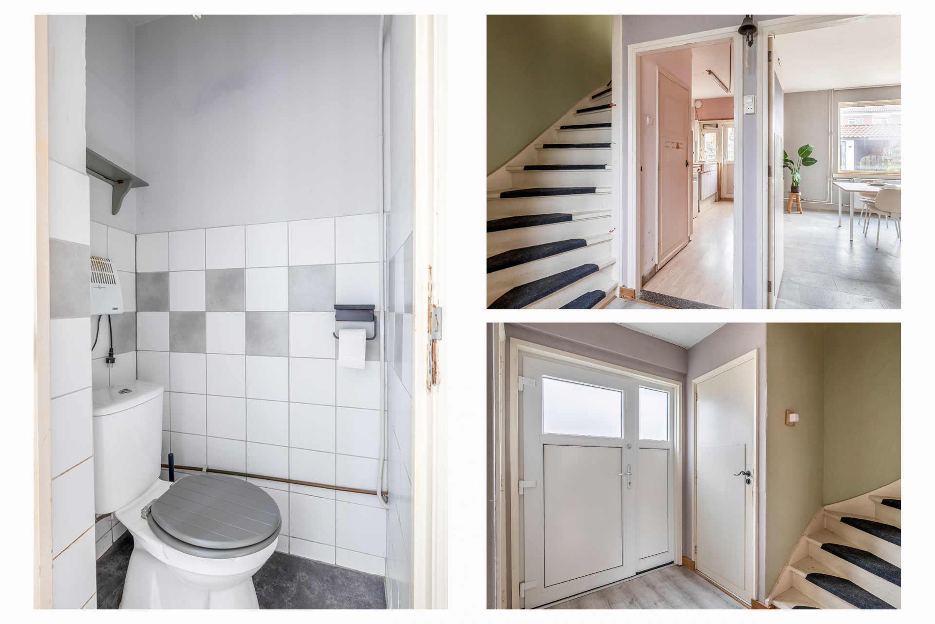 Vanaf de voortuin betreedt u de woning. De entree biedt toegang tot alle vertrekken, waaronder het toilet, de meterkast, de trapopgang naar de eerste verdieping, de gesloten keuken en de woonkamer.