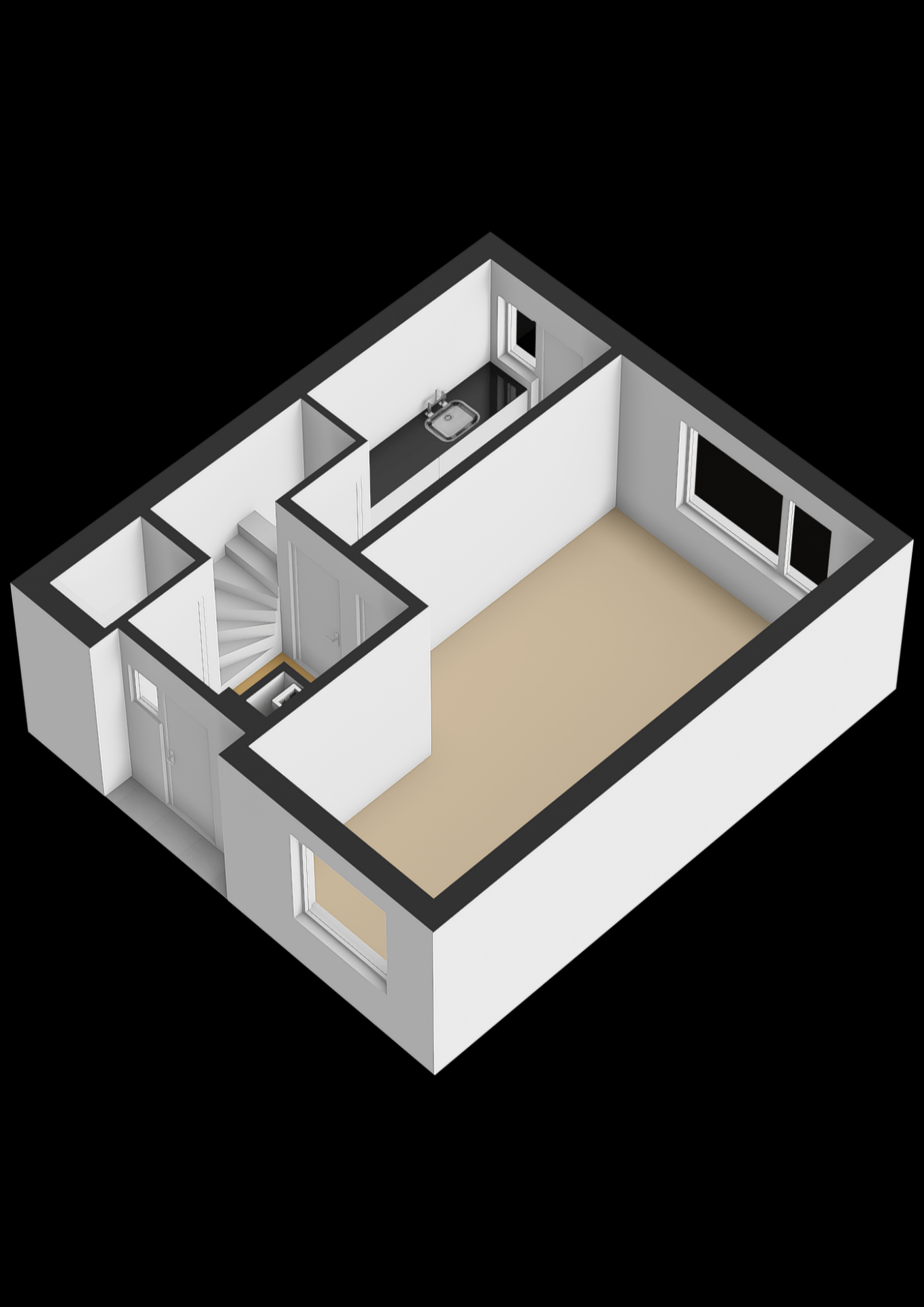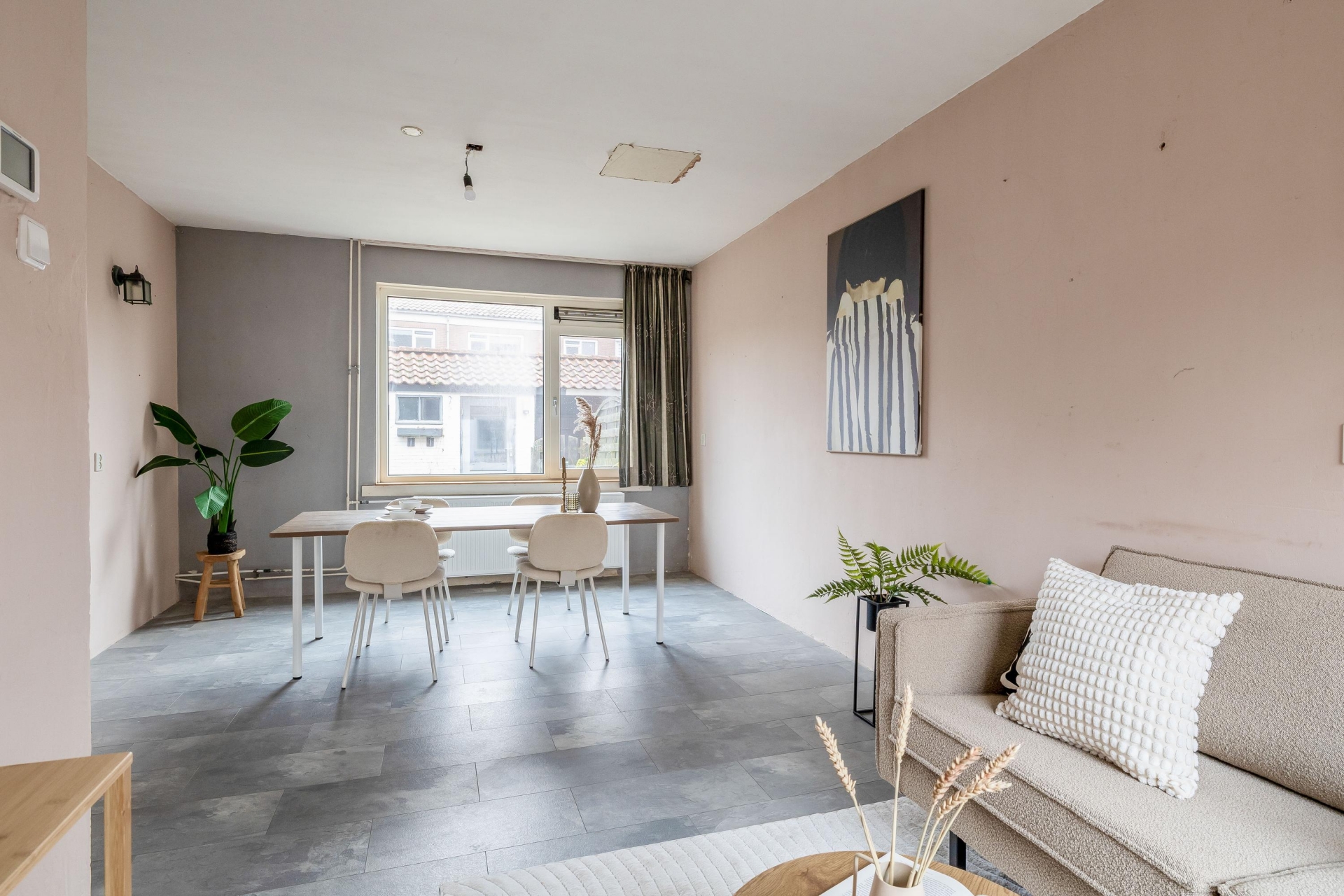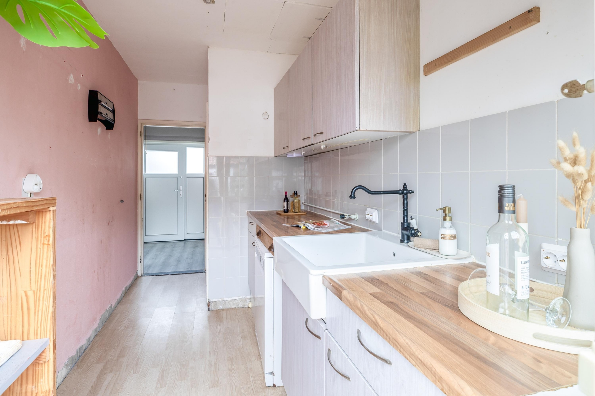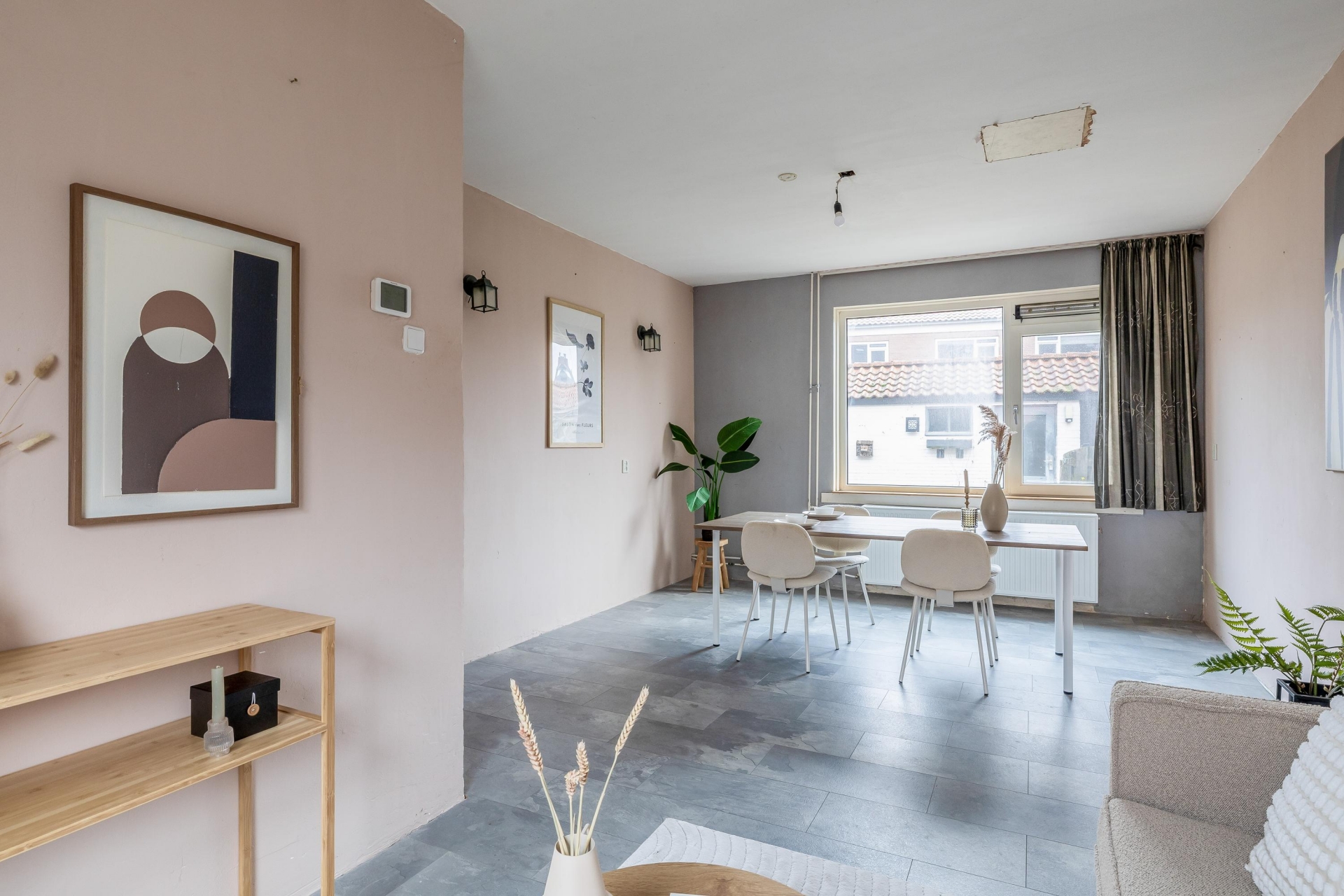 Op dit moment zijn de keuken en woonkamer van elkaar gescheiden. Met het plaatsen van een draagbalk is het echter mogelijk deze ruimtes open te breken. Hierdoor ontstaat er volop ruimte voor een royale keuken, een gezellige eethoek én een aparte woonkamer.