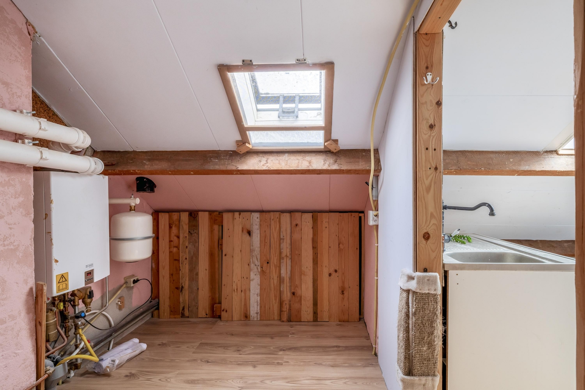 De zolderverdieping is bereikbaar via een vaste trap. Op de overloop bevindt zich de cv-ketel (Remeha Avanta, 2021) en is er voldoende bergruimte aanwezig. Daarnaast is er een multifunctionele kamer die bijvoorbeeld kan dienen als werkruimte of voor een andere gewenste invulling.