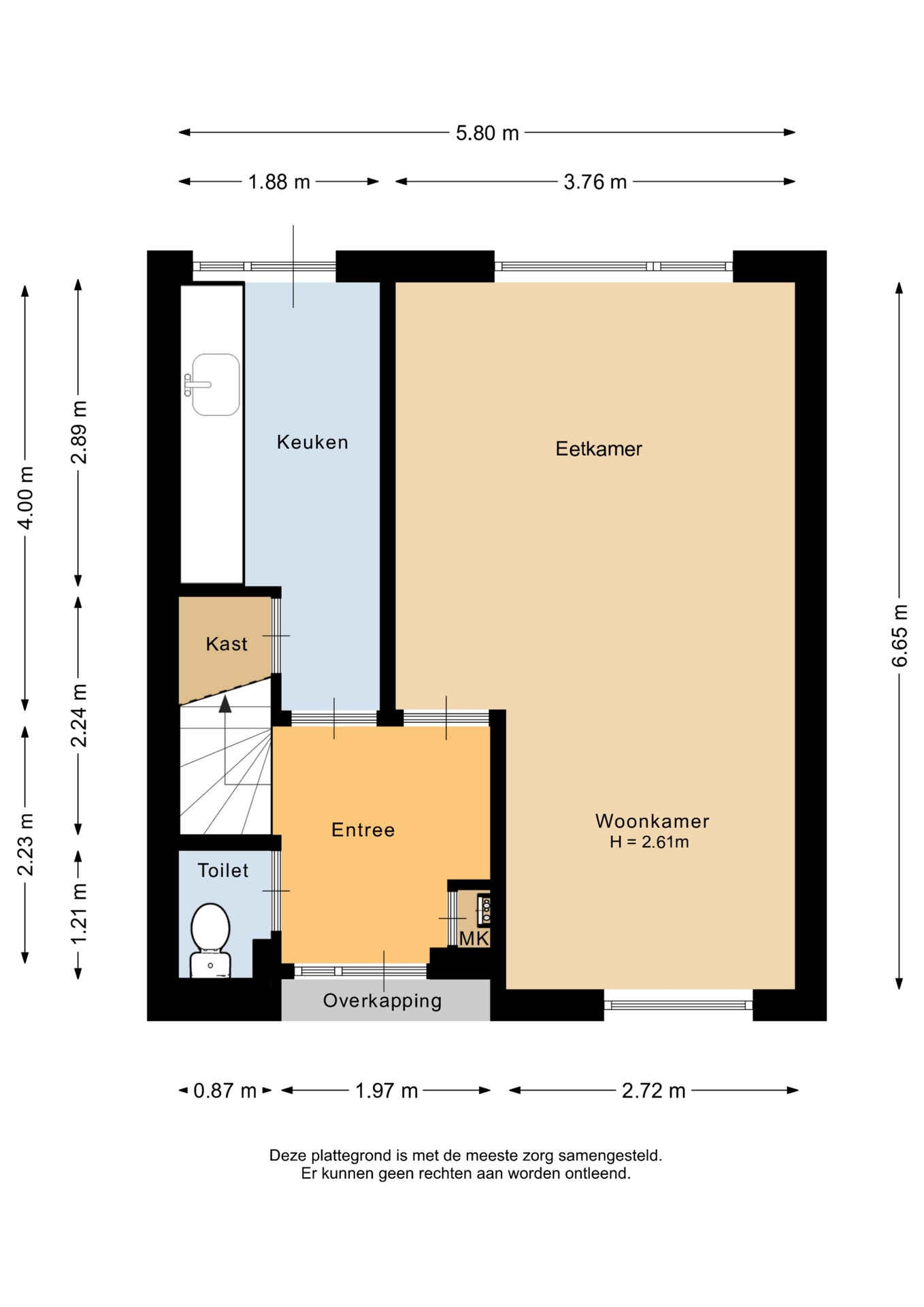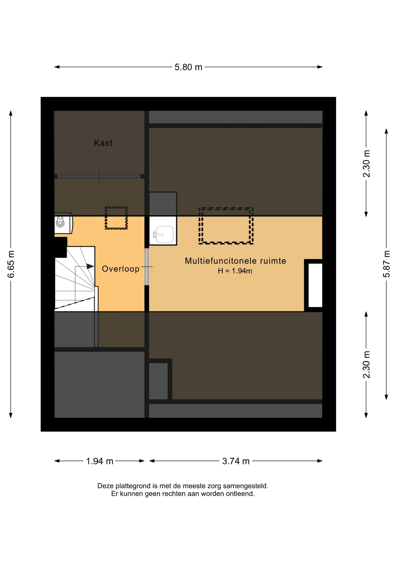 “Deze informatie is door ons met de nodige zorgvuldigheid samengesteld. Onzerzijds wordt echter geen enkele aansprakelijkheid aanvaard voor enige onvolledigheid, onjuistheid of anderszins, dan wel de gevolgen daarvan. Alle opgegeven maten en oppervlakten zijn indicatief.”