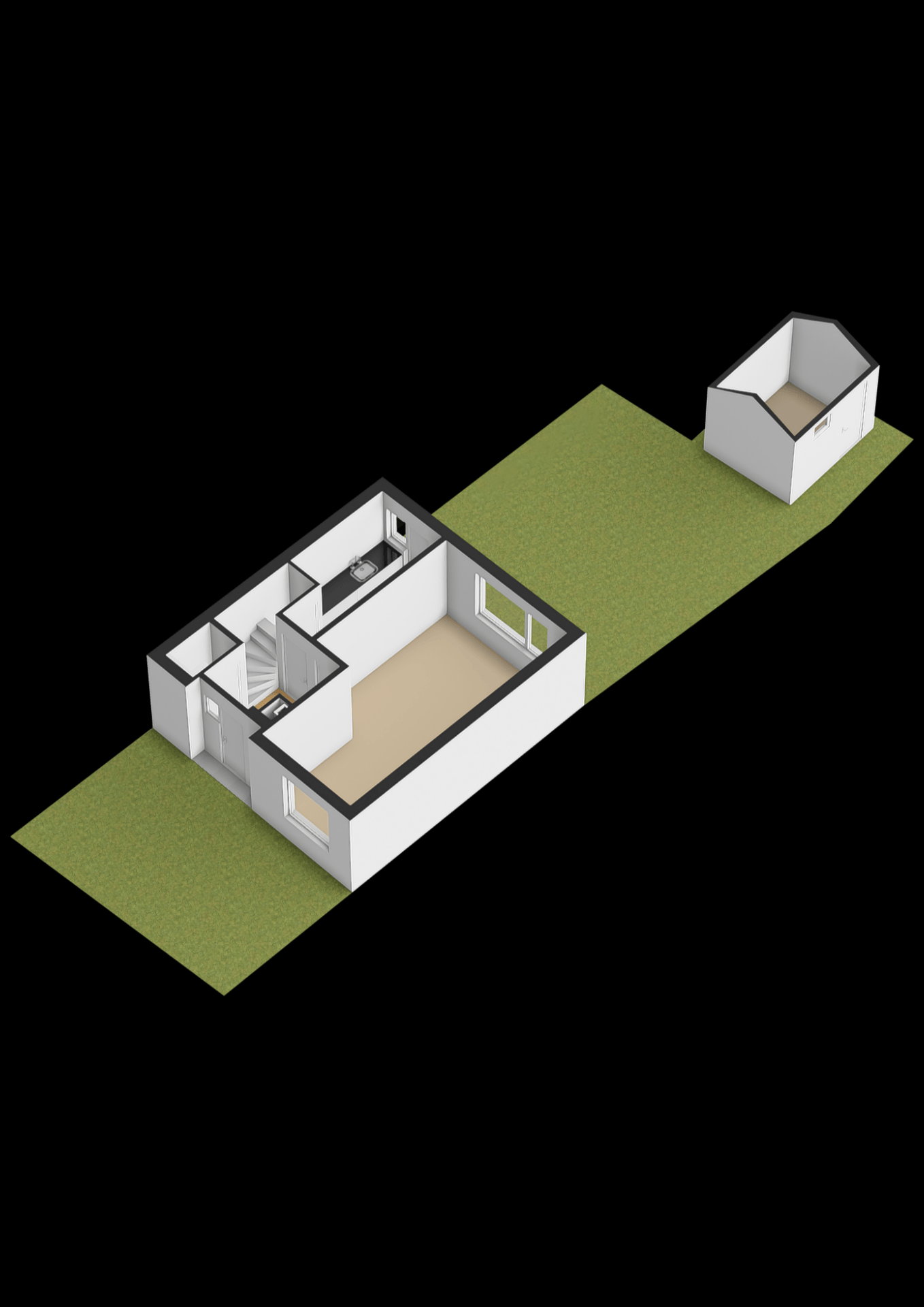 - Achtertuin met achterom, stenen berging;