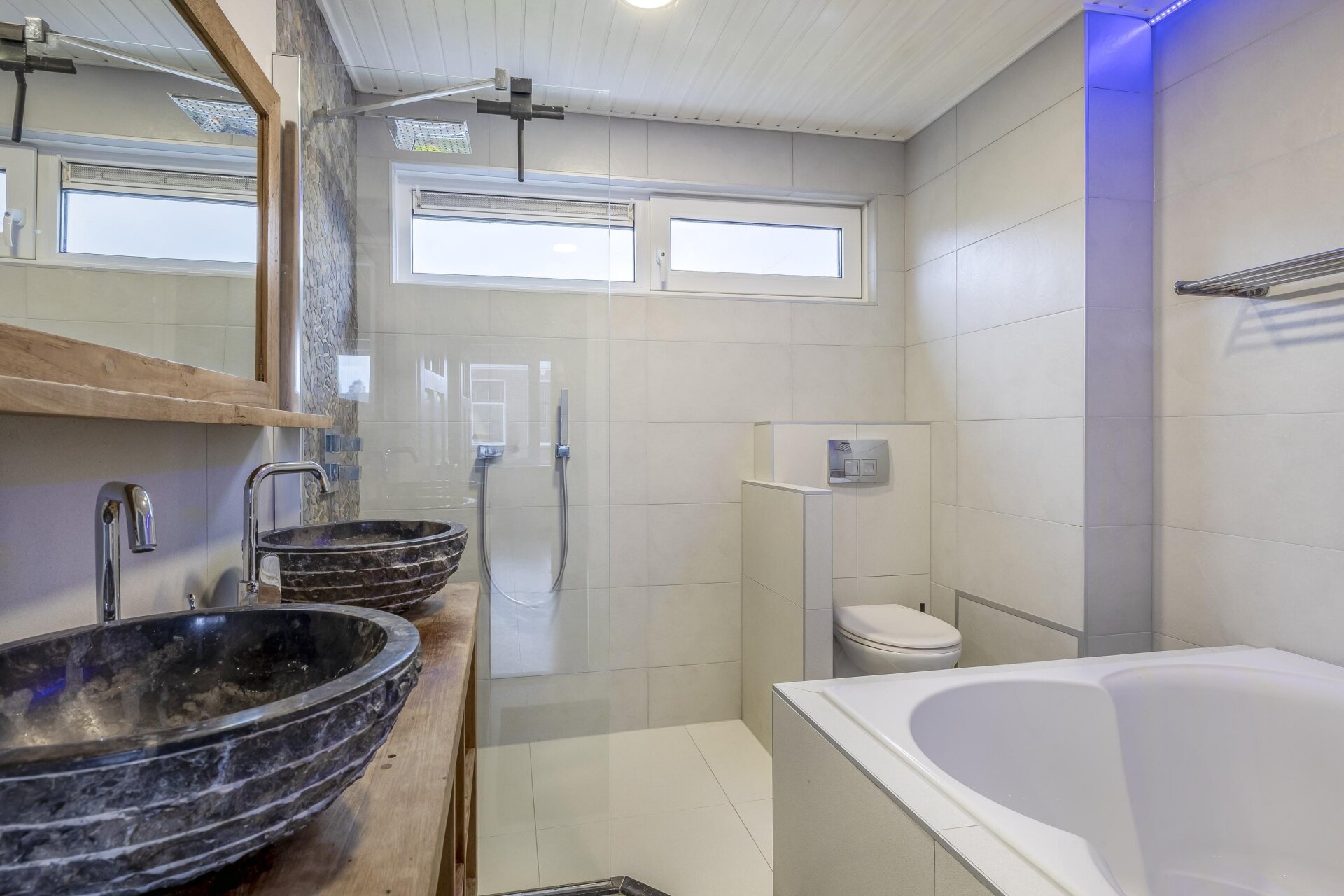 Met in totaal vijf slaapkamers en twee badkamers is dit huis perfect geschikt voor een groter gezin of mensen die thuiswerken combineren met gezinsleven. Op de eerste verdieping bevinden zich drie slaapkamers en een moderne badkamer. De tweede verdieping, gerealiseerd in de dakopbouw, biedt ruimte aan twee extra kamers, waaronder een royale master bedroom met een badkamer en suite. Deze tweede badkamer is al voorbereid, maar moet nog worden gerealiseerd. Dankzij de slimme indeling en royale raampartijen voelt elke ruimte licht en uitnodigend aan.