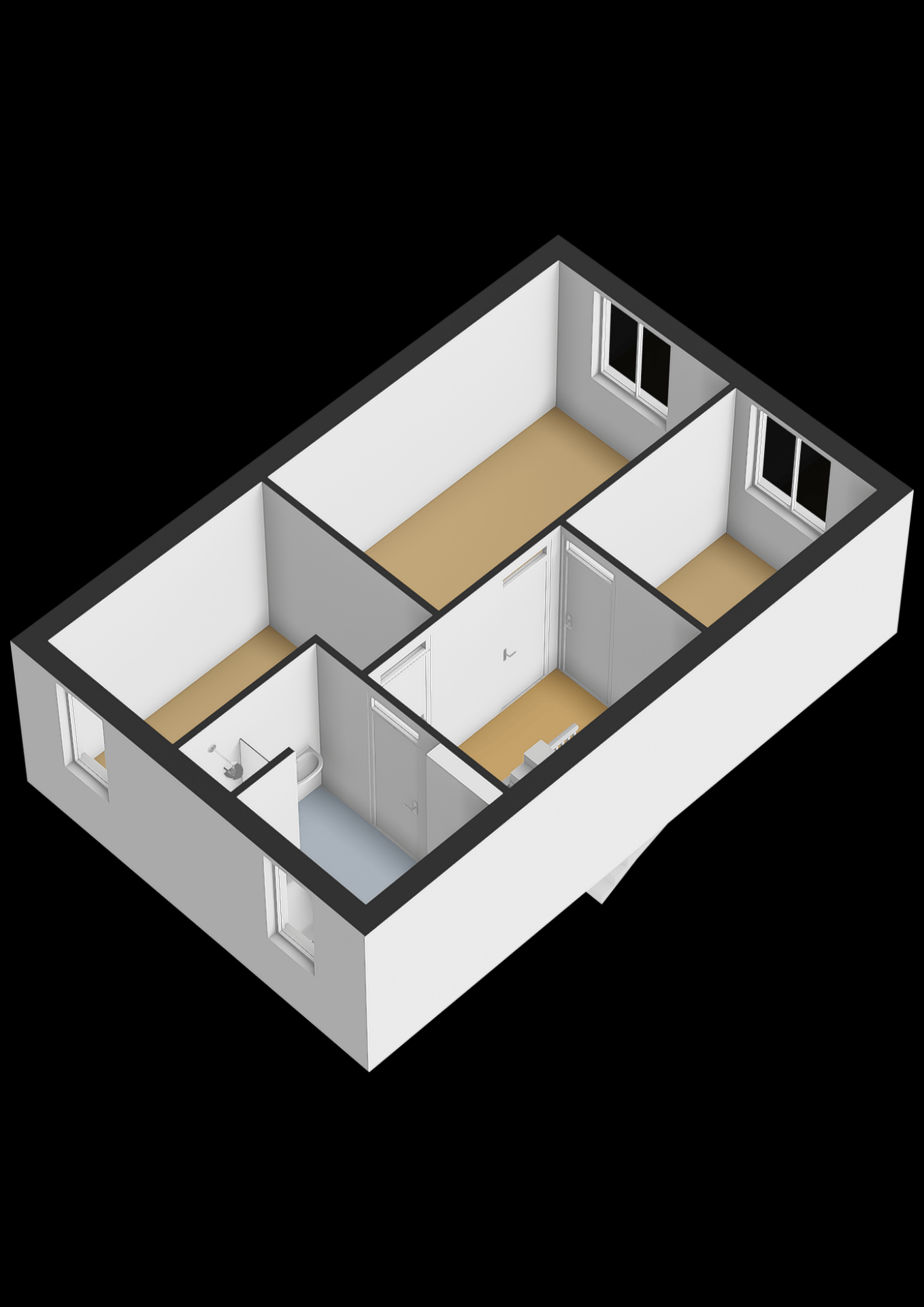 Op de eerste verdieping bevinden zich 3 slaapkamers en een nette badkamer met ligbad, douche, 2e toilet en wastafel. De kamers zijn licht, functioneel ingedeeld en geschikt als slaap- of werkkamer.