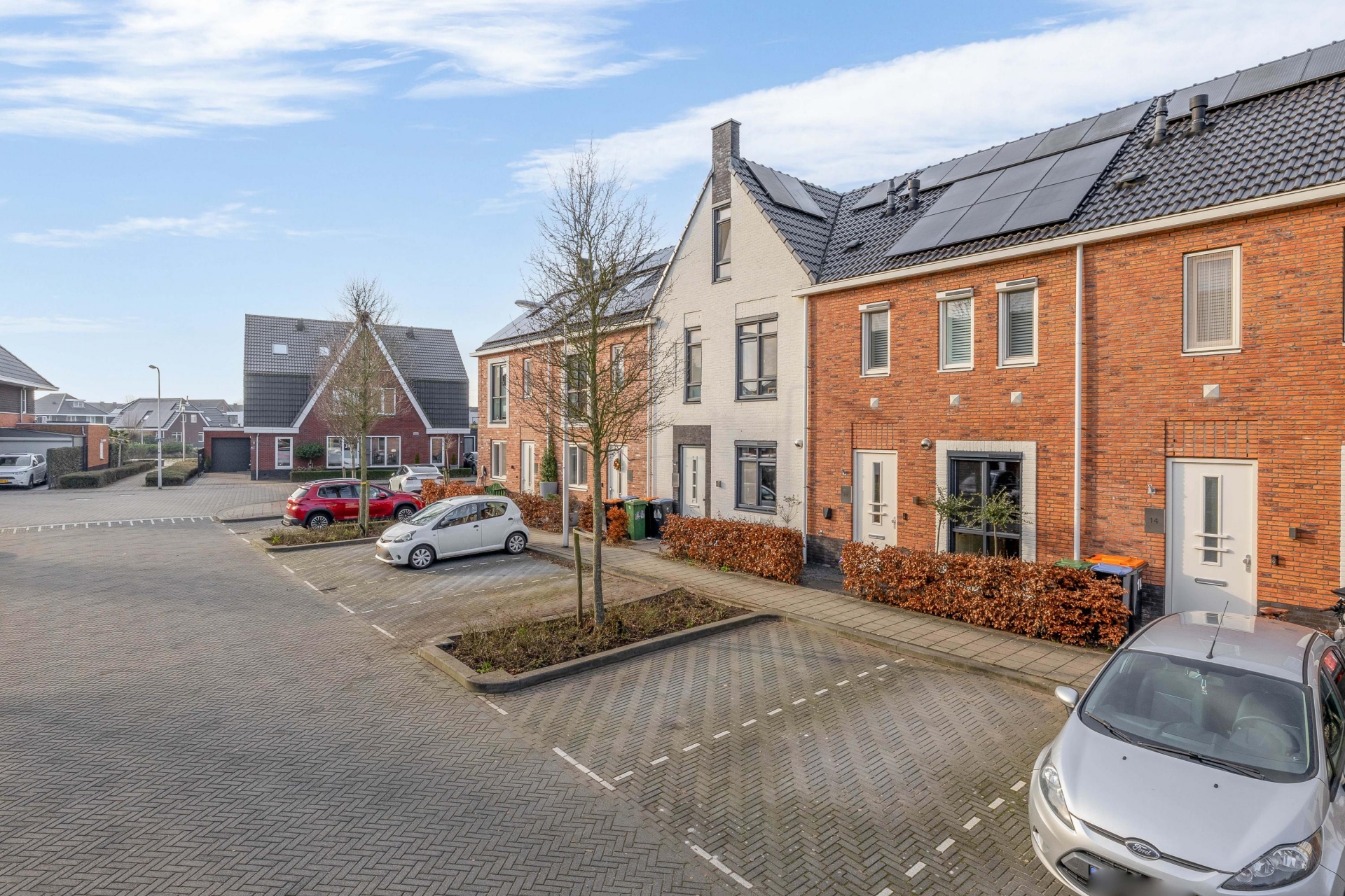 - Er zijn 14 zonnepanelen (5 sinds de bouw en 9 toegevoegd in 2025);
