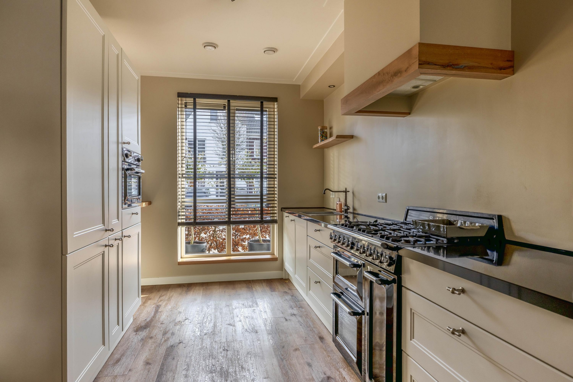 Stap binnen in de verrassend ruime woonkamer met uitbouw. Dankzij de grote raampartijen geniet je hier van veel natuurlijk licht en een prettige verbinding tussen binnen en buiten. De royale indeling biedt veel ruimte voor een comfortabele zithoek en een grote eettafel. De stijlvolle open keuken is volledig voorzien van luxe inbouwapparatuur. Dankzij de vloerverwarming geniet je van een aangename warmte en een strak afgewerkt interieur zonder radiatoren in het zicht. Kortom; deze mooie woning biedt alles wat je zoekt. Instapklaar, een zonnige achtertuin, veel ruimte én een rustige ligging.