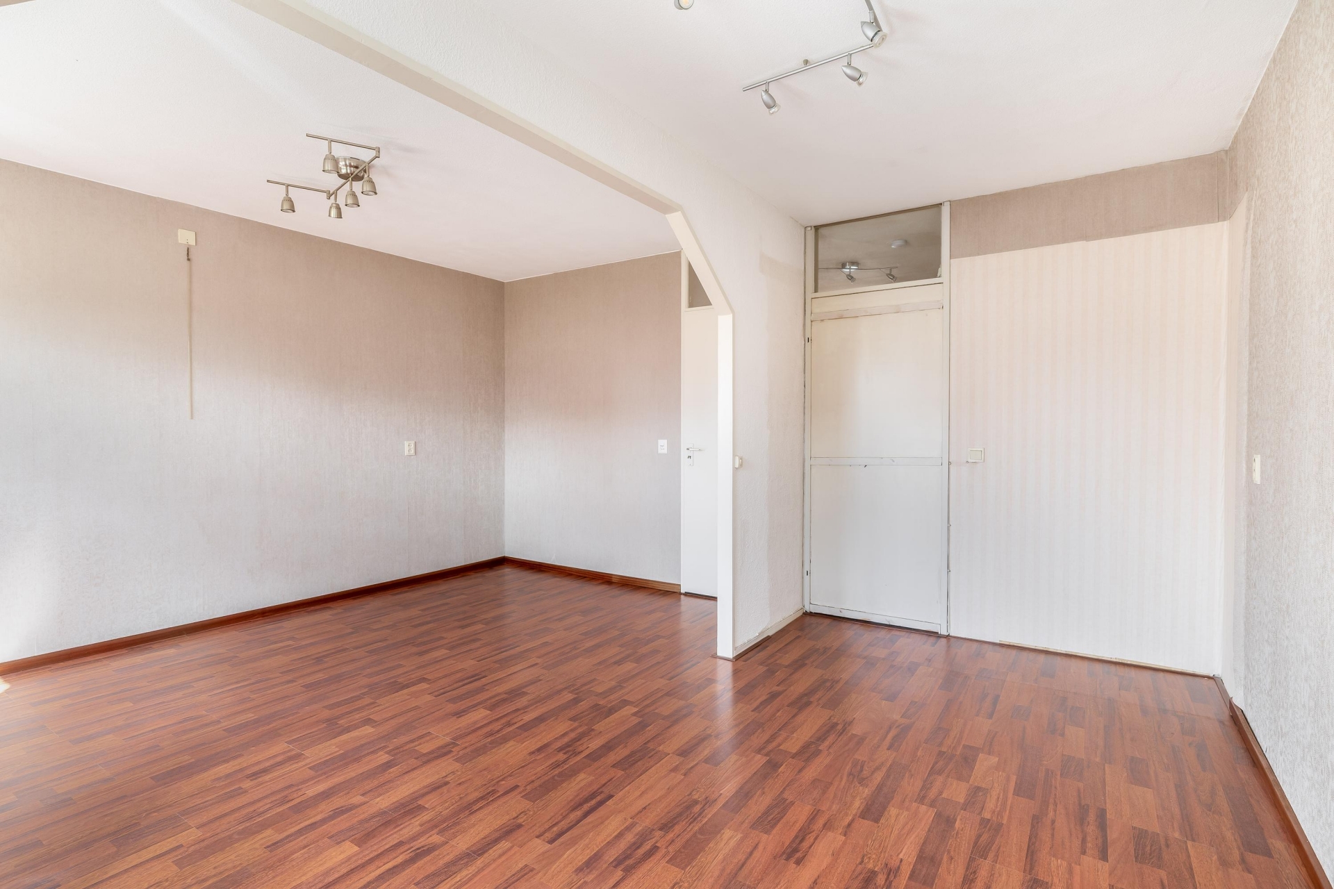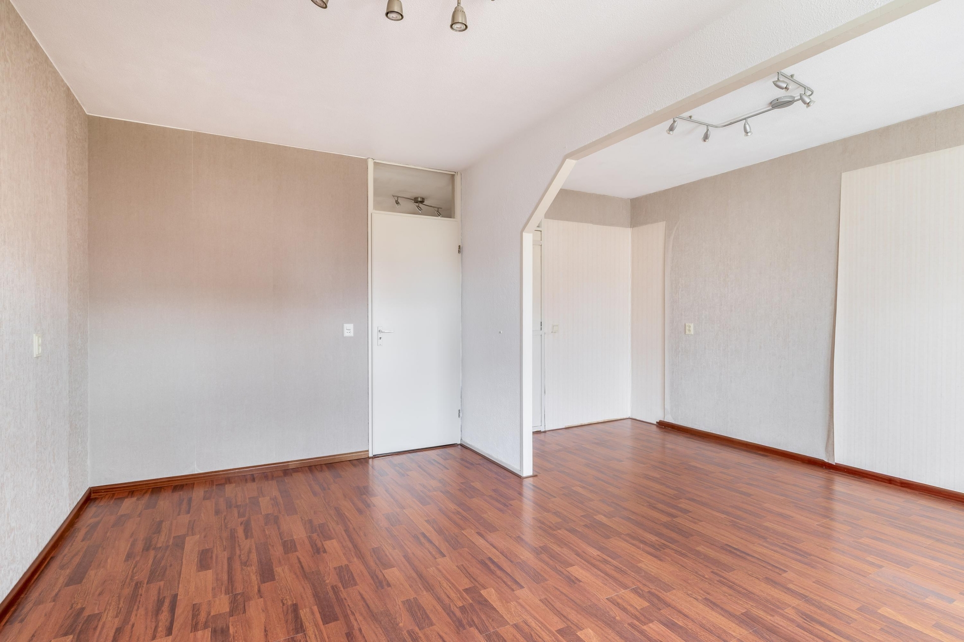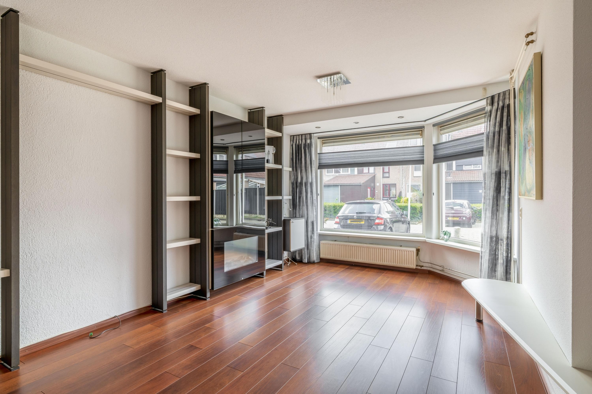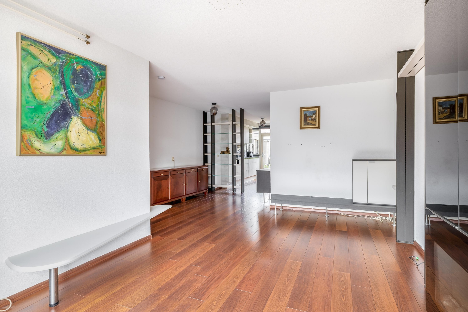 Bij binnenkomst valt direct de fijne indeling op. De woonkamer is heerlijk licht door de grote raampartij aan de voorzijde en biedt meer dan genoeg ruimte voor een gezellige zithoek én een ruime eettafel. De warme vloerafwerking zorgt direct voor sfeer en maakt het geheel compleet.