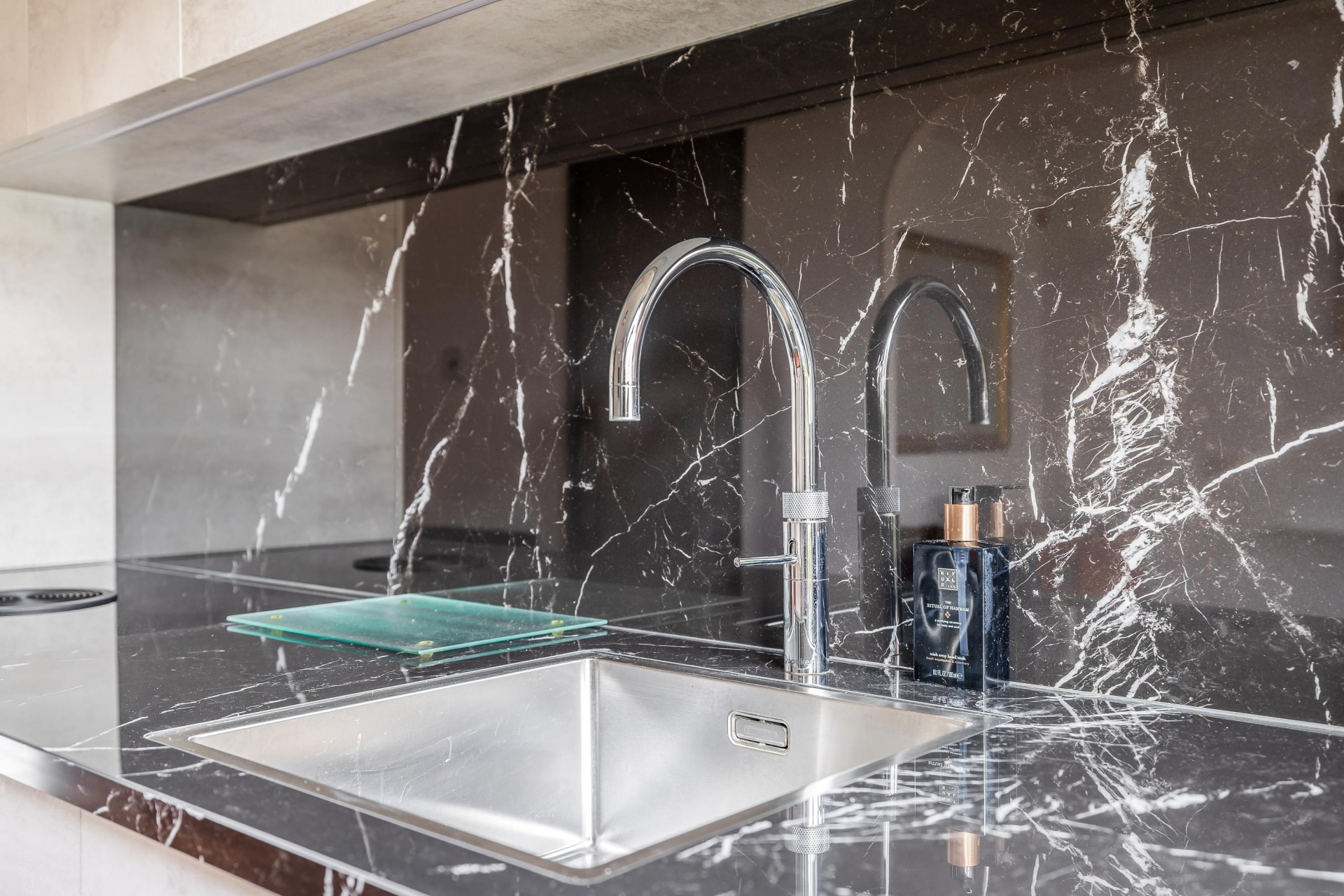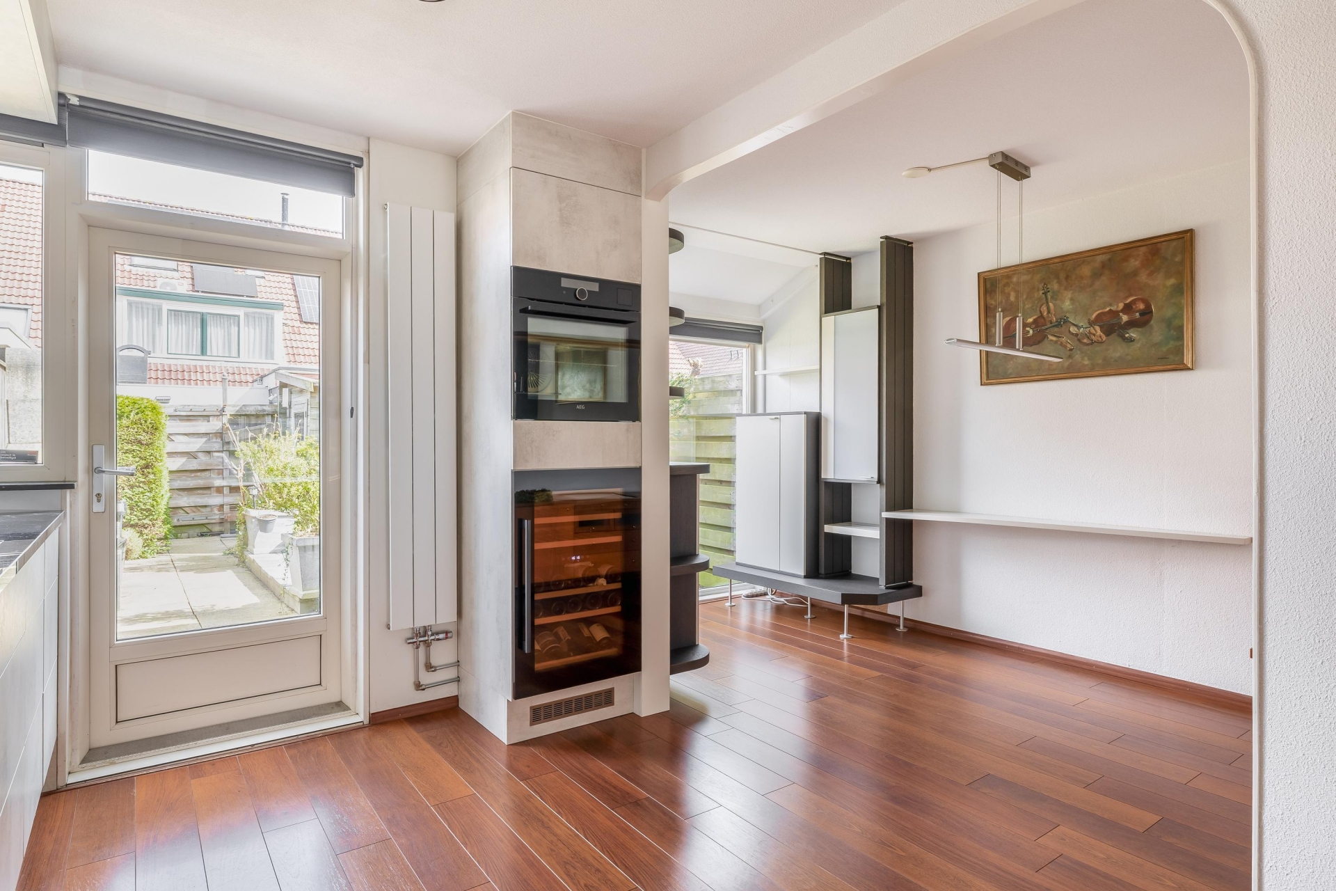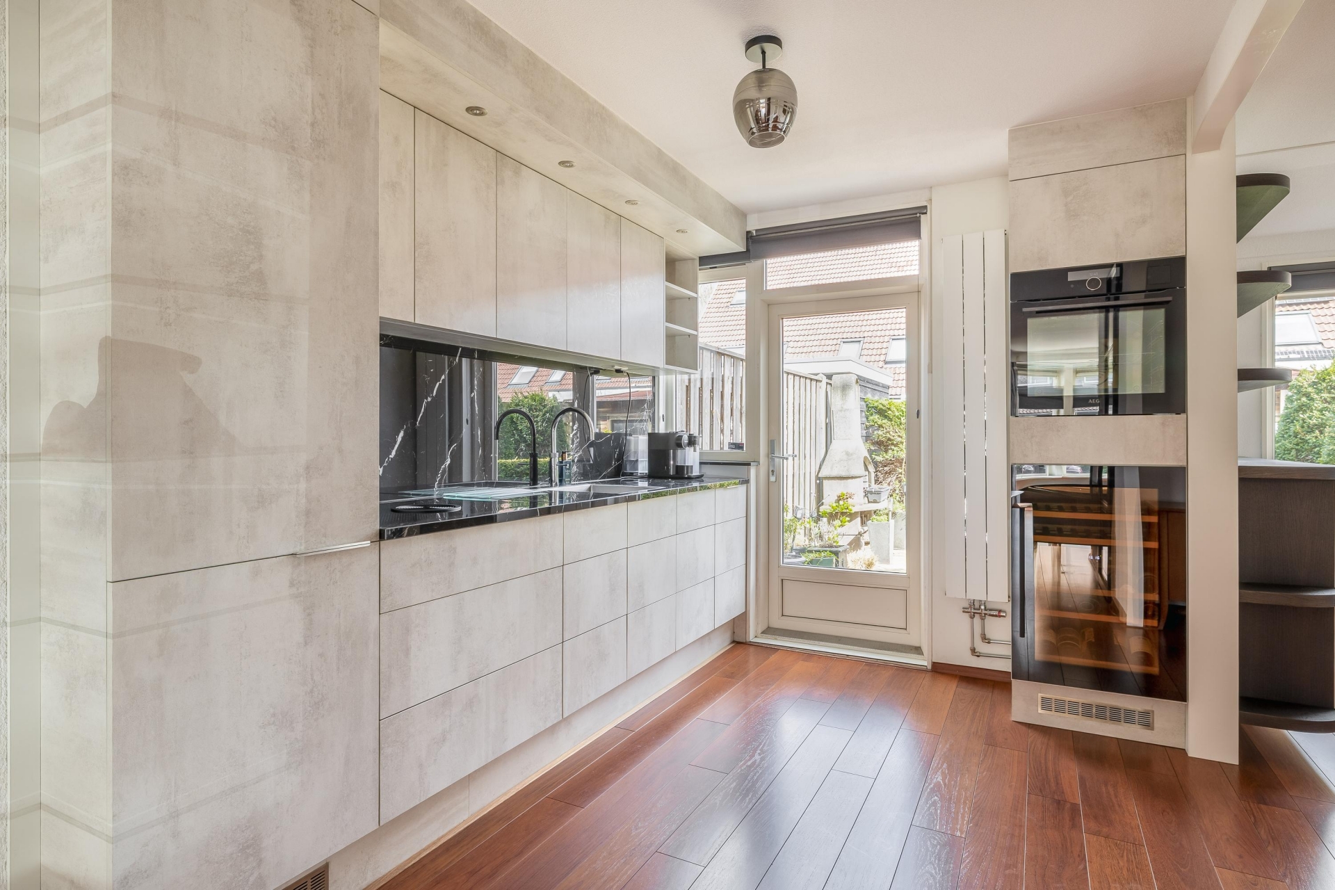 De keuken is in 2022 vernieuwd en dat zie je direct. De strakke afwerking, moderne kleurstelling en praktische indeling maken dit een plek waar je graag kookt. Uiteraard is de keuken voorzien van de benodigde inbouwapparatuur waaronder wijnklimaatkast en Quooker en voldoende werk- en opbergruimte.