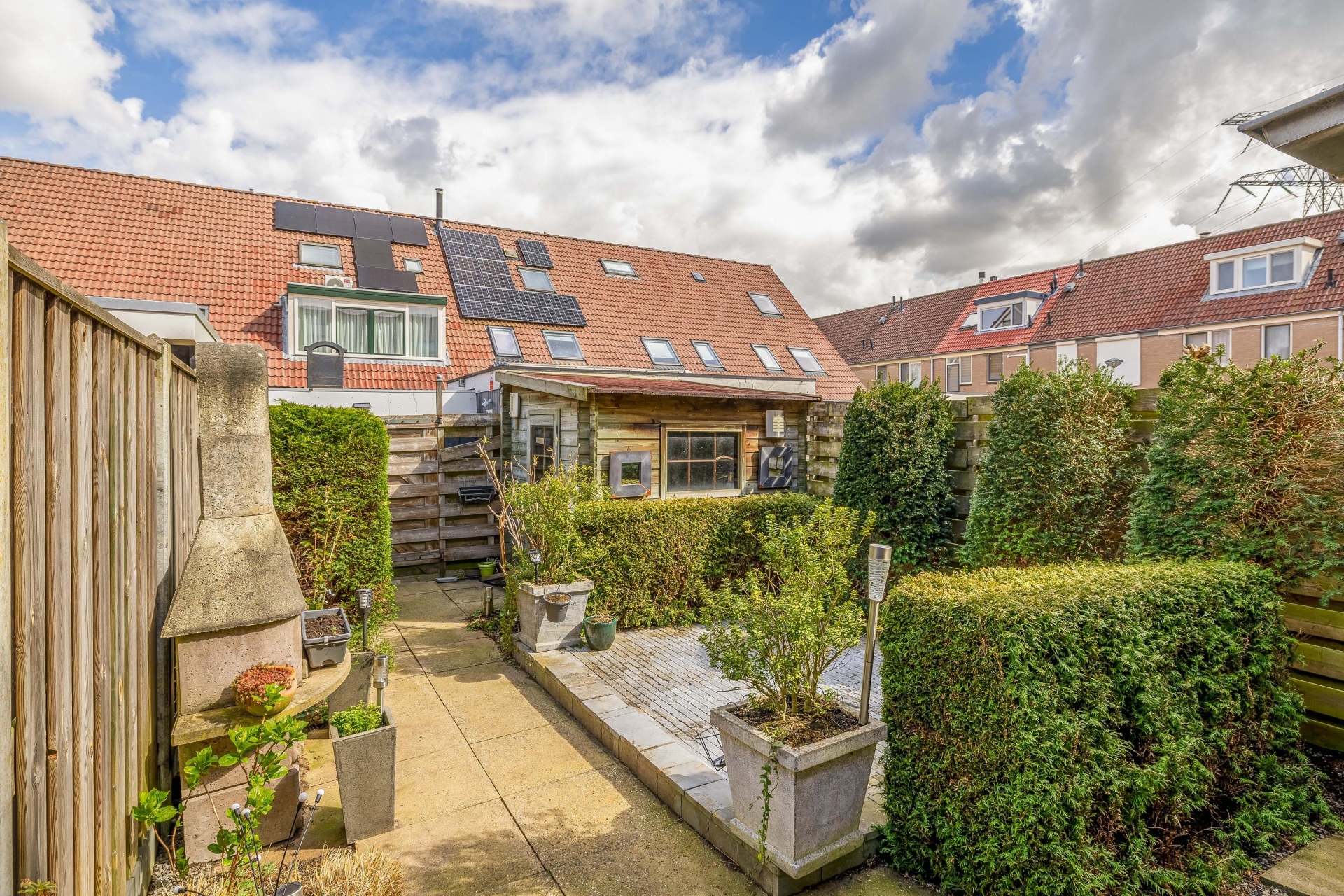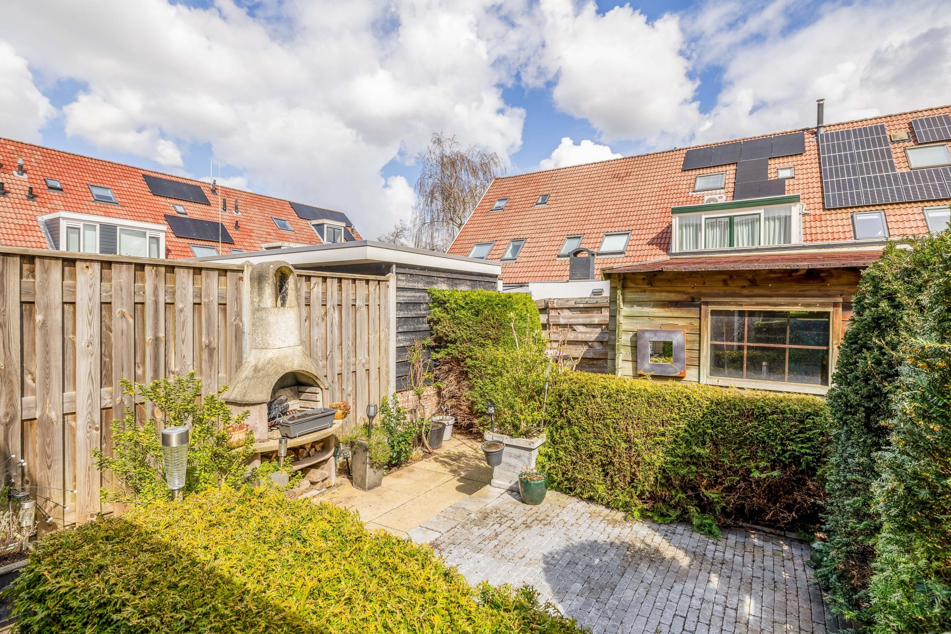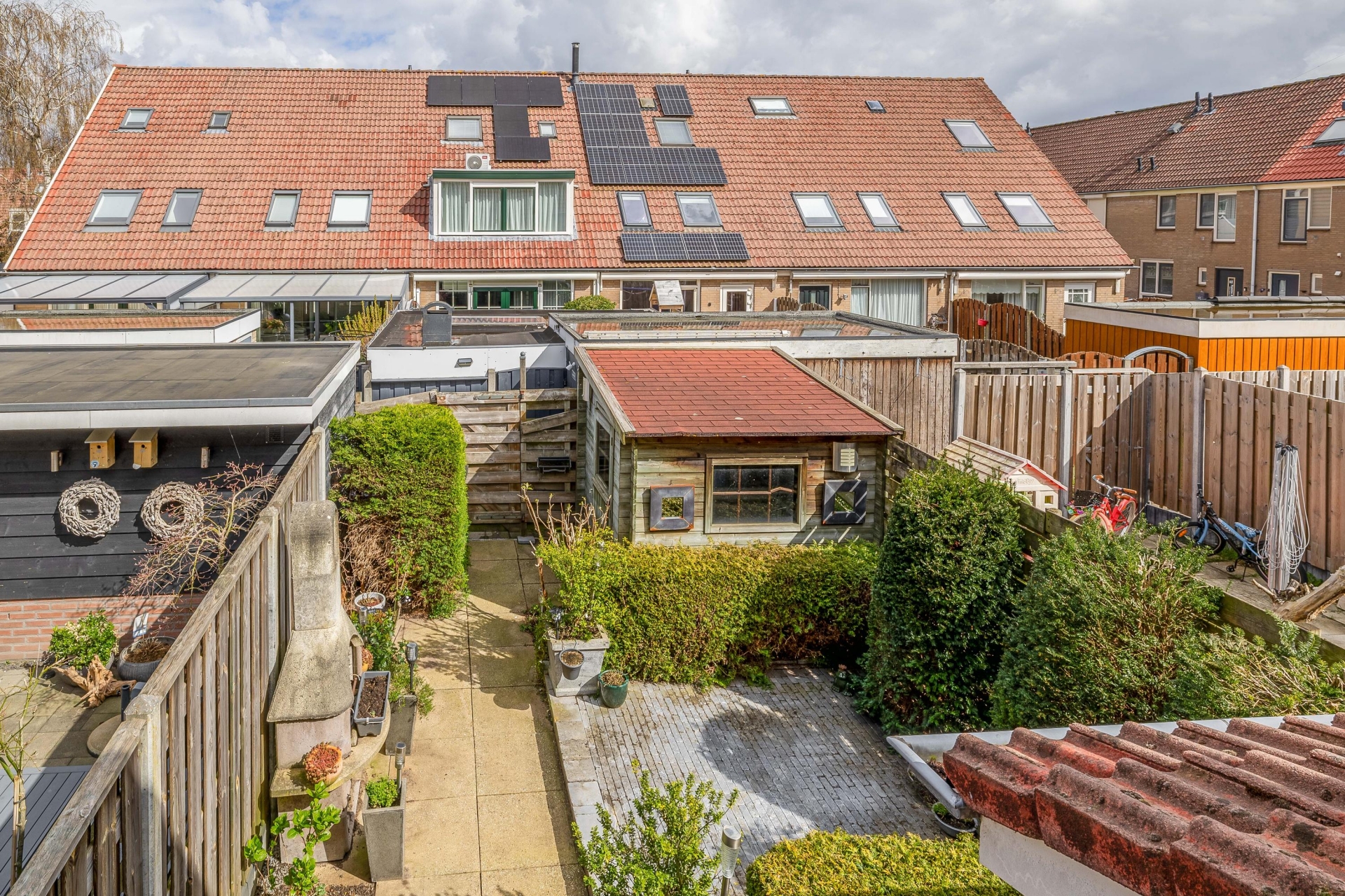 De achtertuin is verzorgd aangelegd en biedt voldoende ruimte om lekker buiten te zitten. Door de ligging op het noordoosten kun je hier zowel van de ochtend- als middagzon genieten. Achterin de tuin staat een praktische berging en er is een achterom aanwezig.